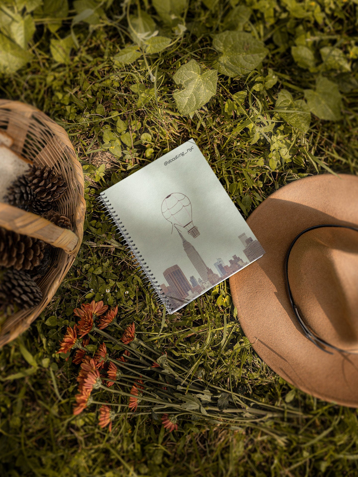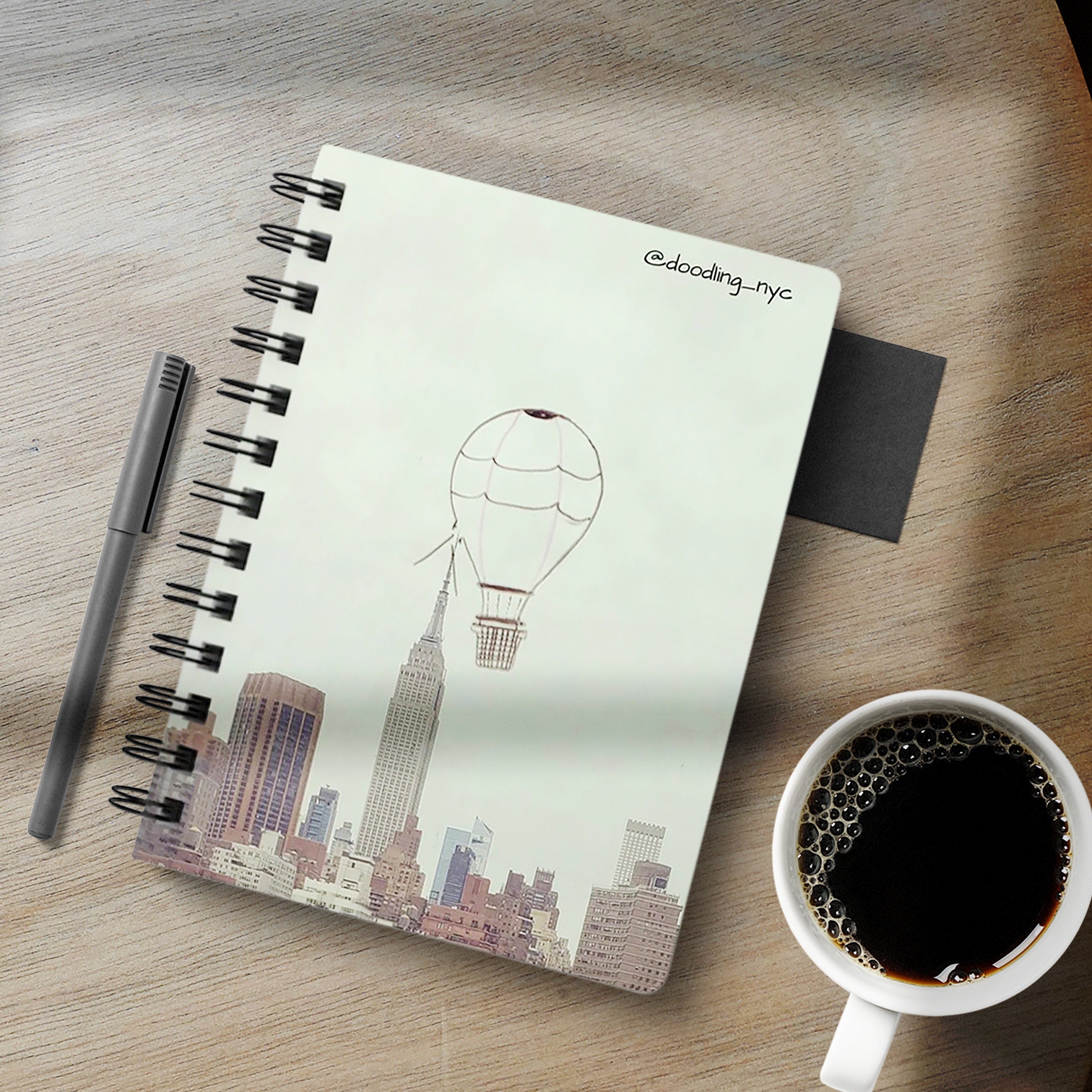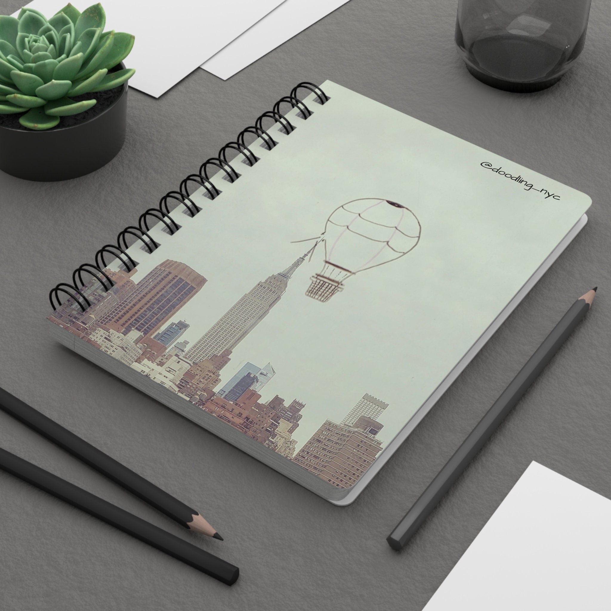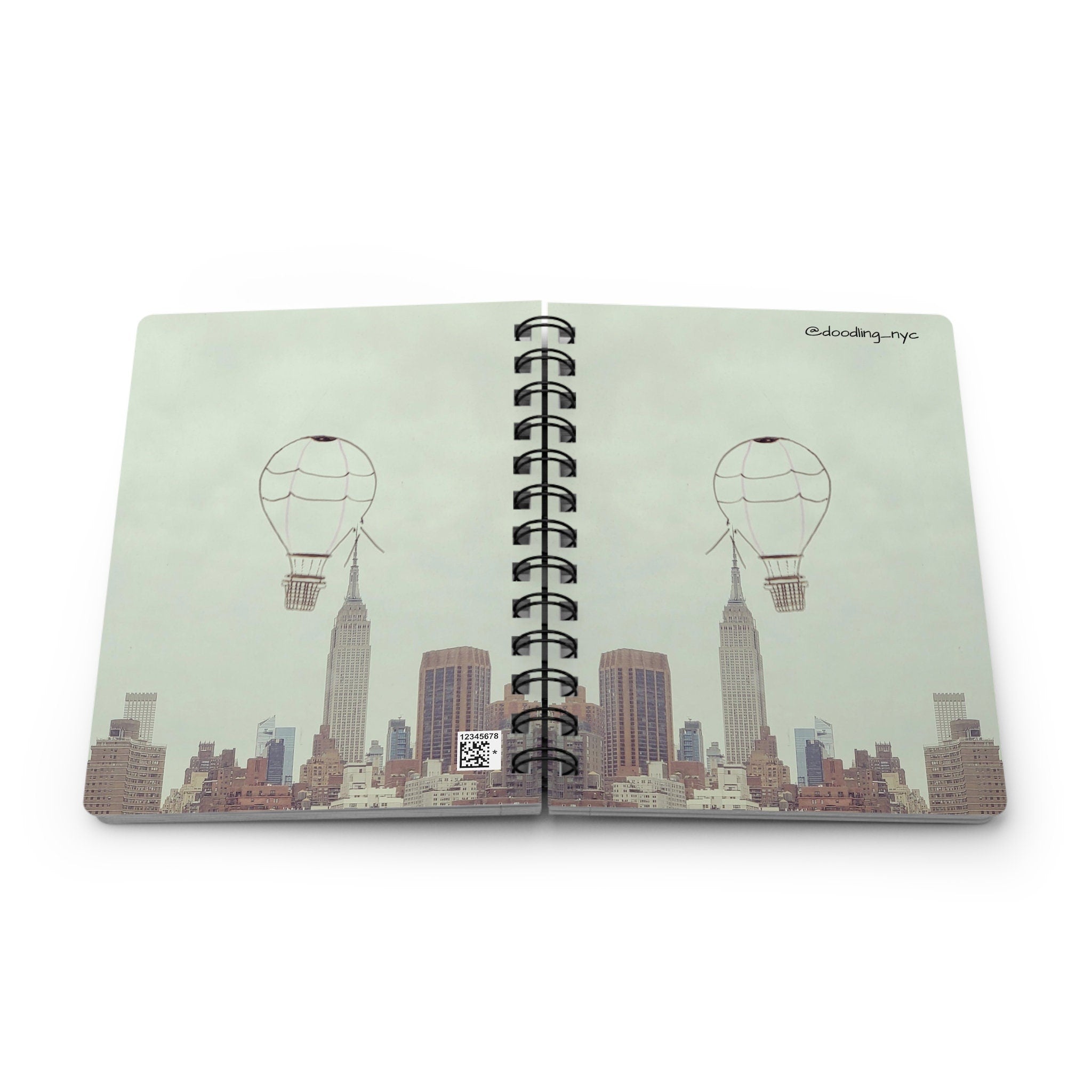 Hot Air Balloon Doodle Journal Notebook, NYC Skyline Spiral Notebook, Writing Lined Journal, Gratitude Manifest Journal, Traveler Gifts
