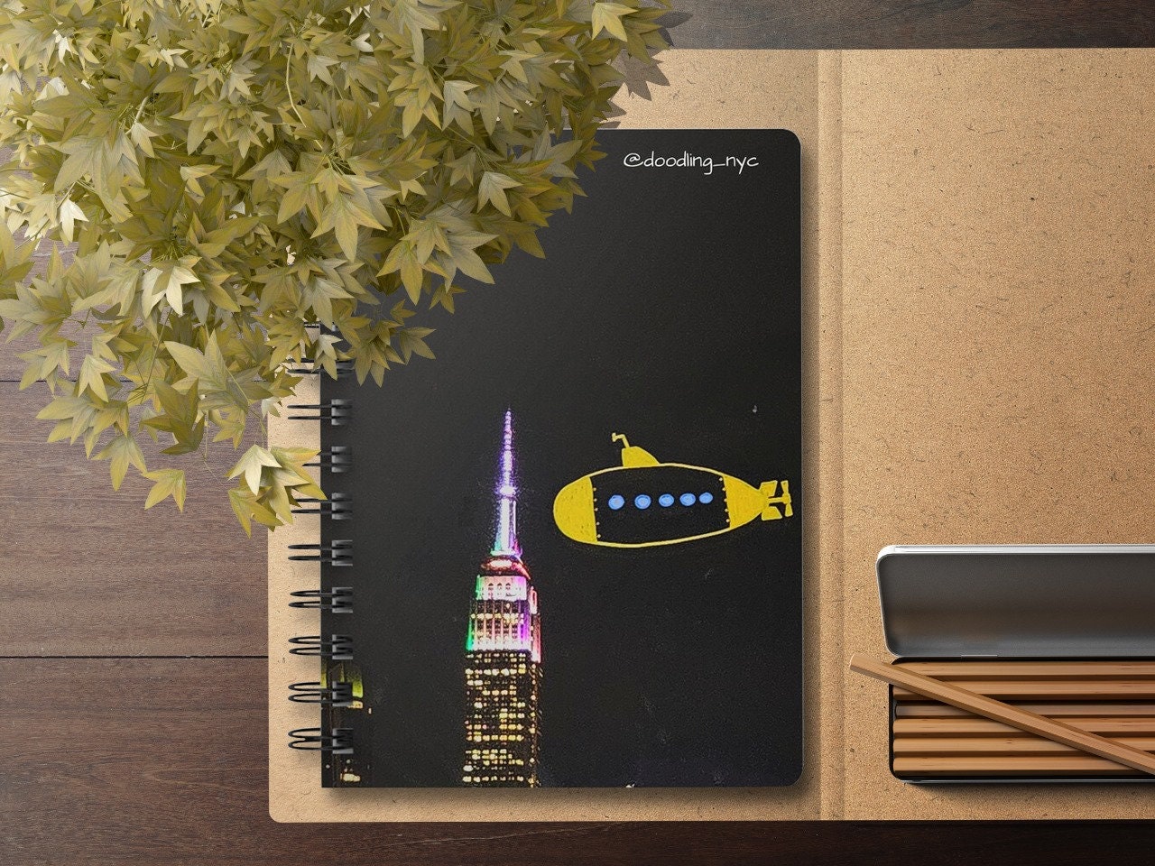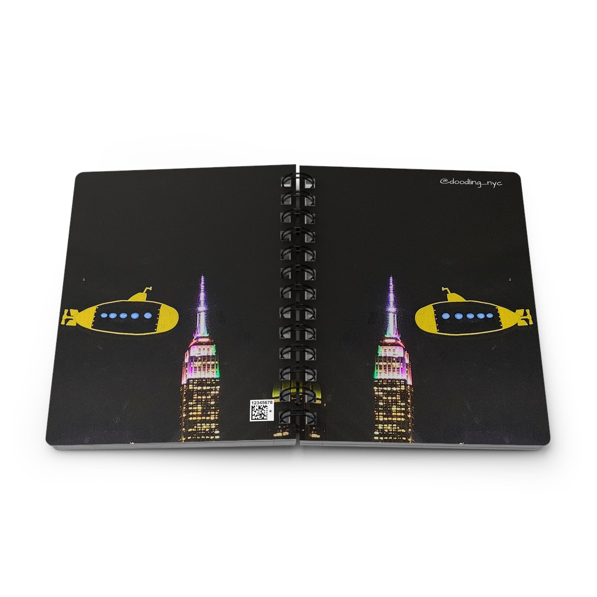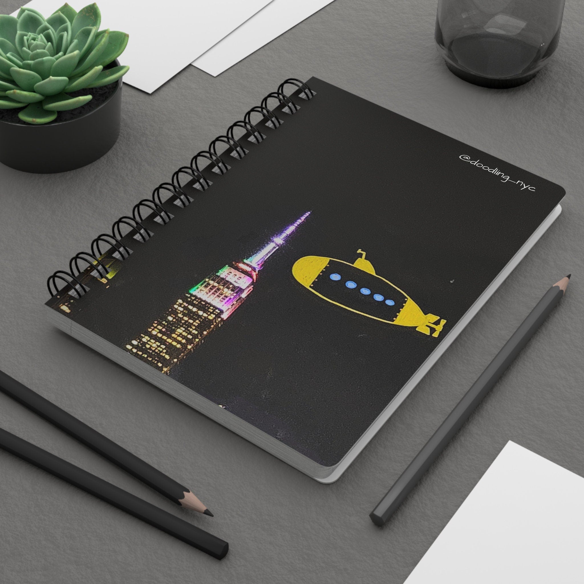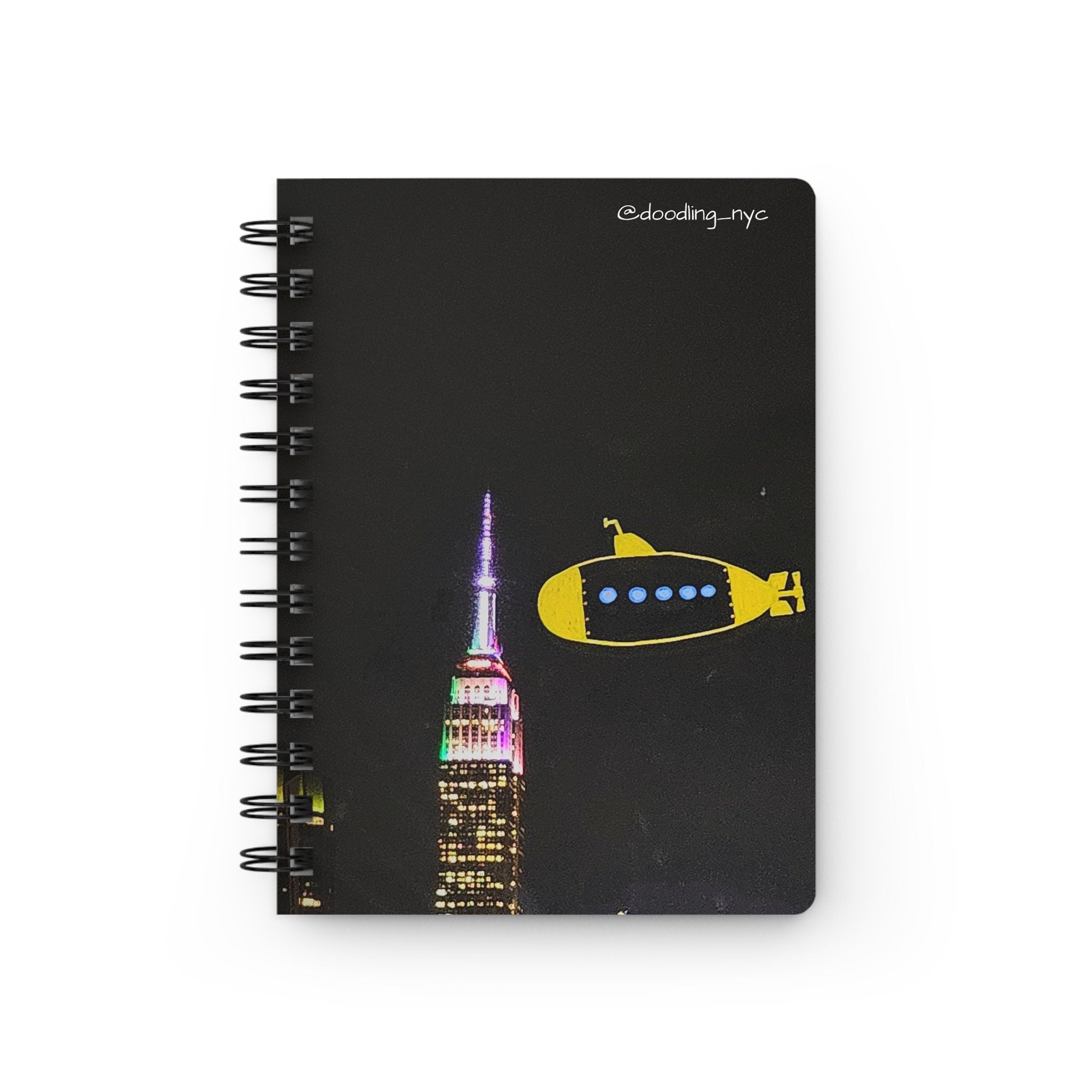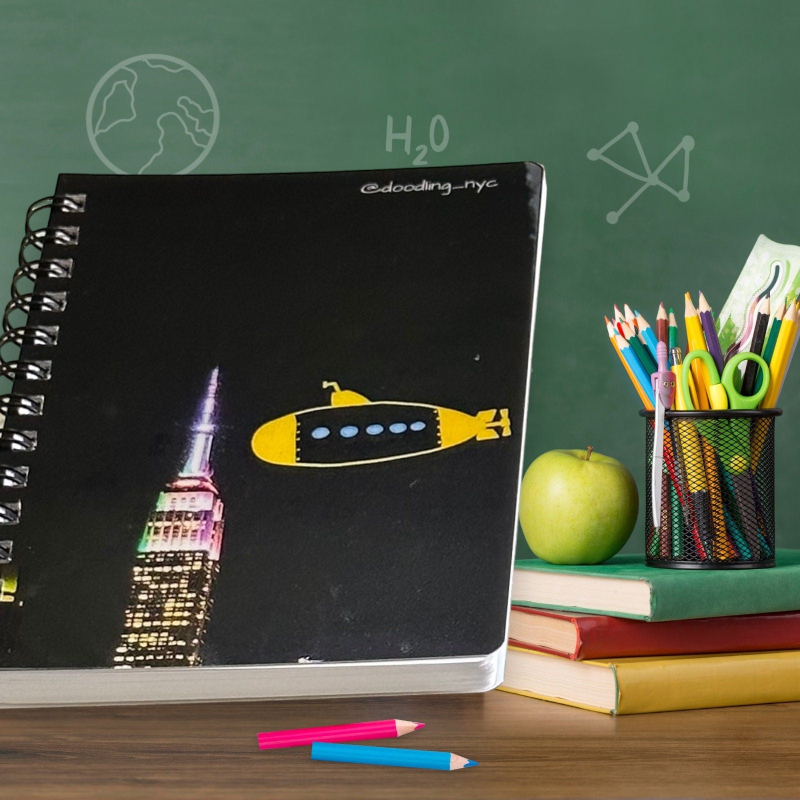 NYC Skyline Yellow Submarine Doodle Spiral Journal Notebook, Lined Journal, NYC Travel Journal, New York City Kids Journal, Back to School