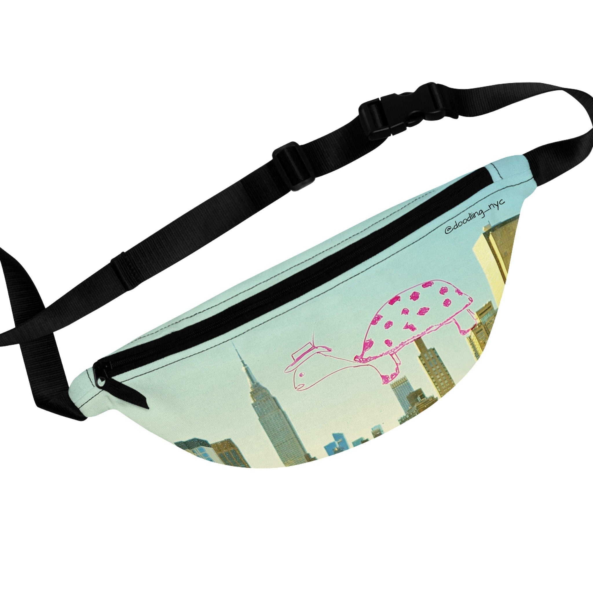 One of a kind Tortoise doodle fanny pack, belt bag for women, carry-on for men, kids snack bag, waist pack bag children, fun snack carry on