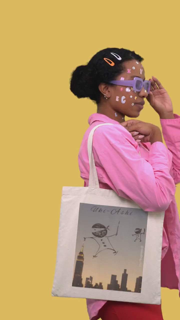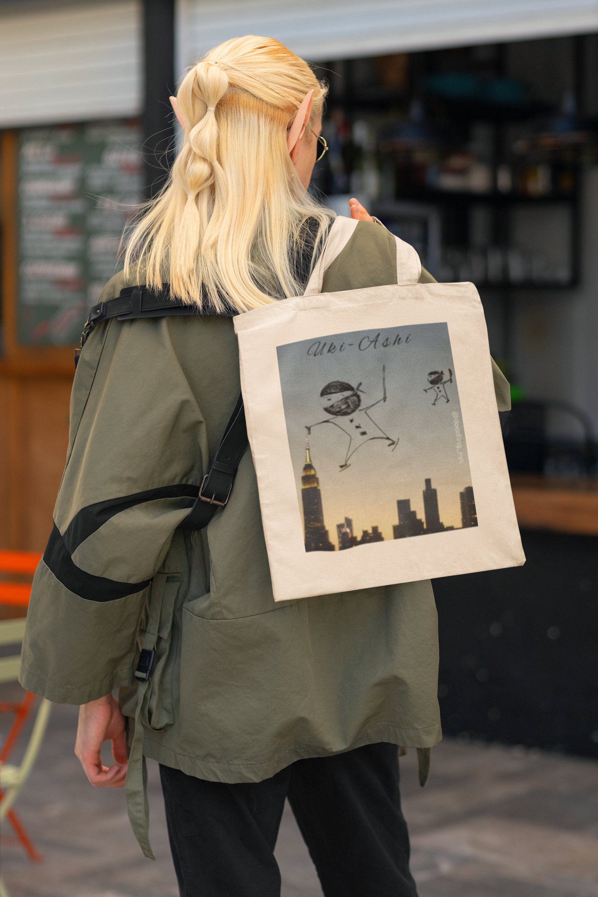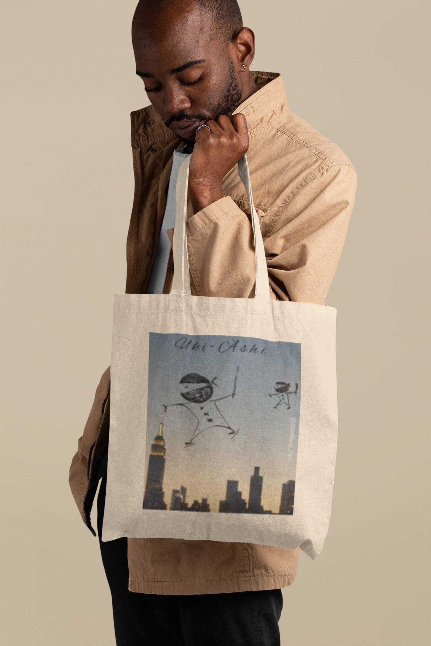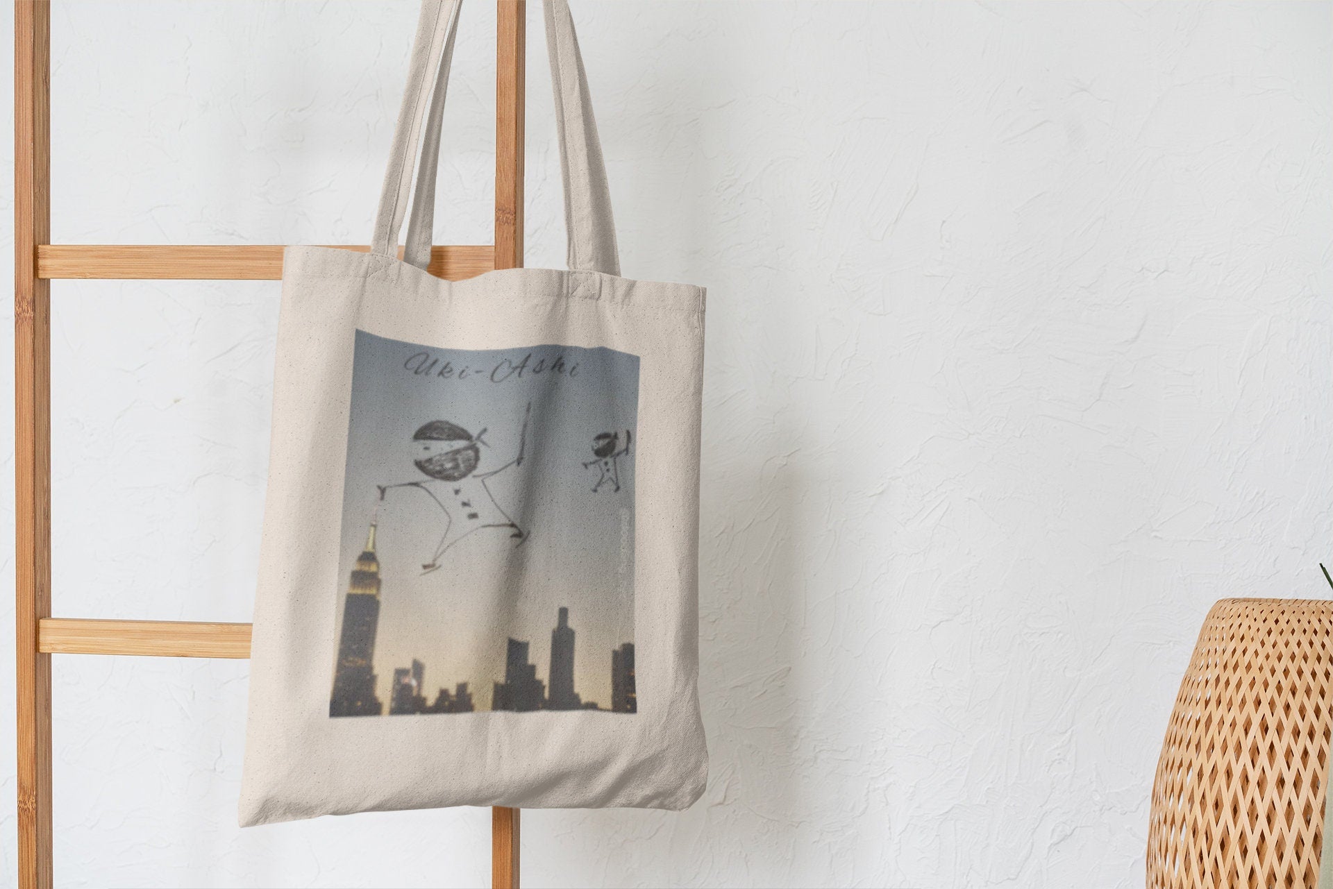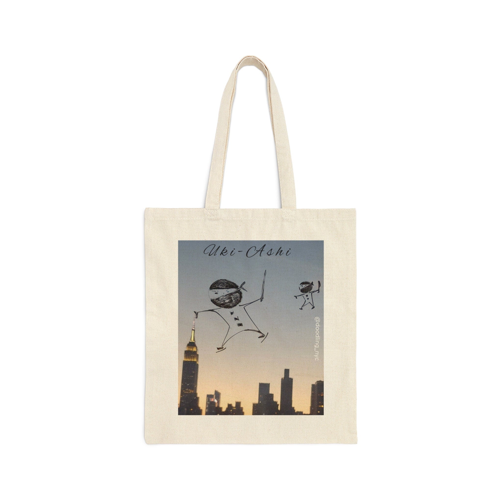 Quirky Ninja Doodle Tote Bag, Trendy Unique NYC Skyline Tote Bag, Japanese Martial Art, Reusable Market Tote, NYC Beach Travel Tote