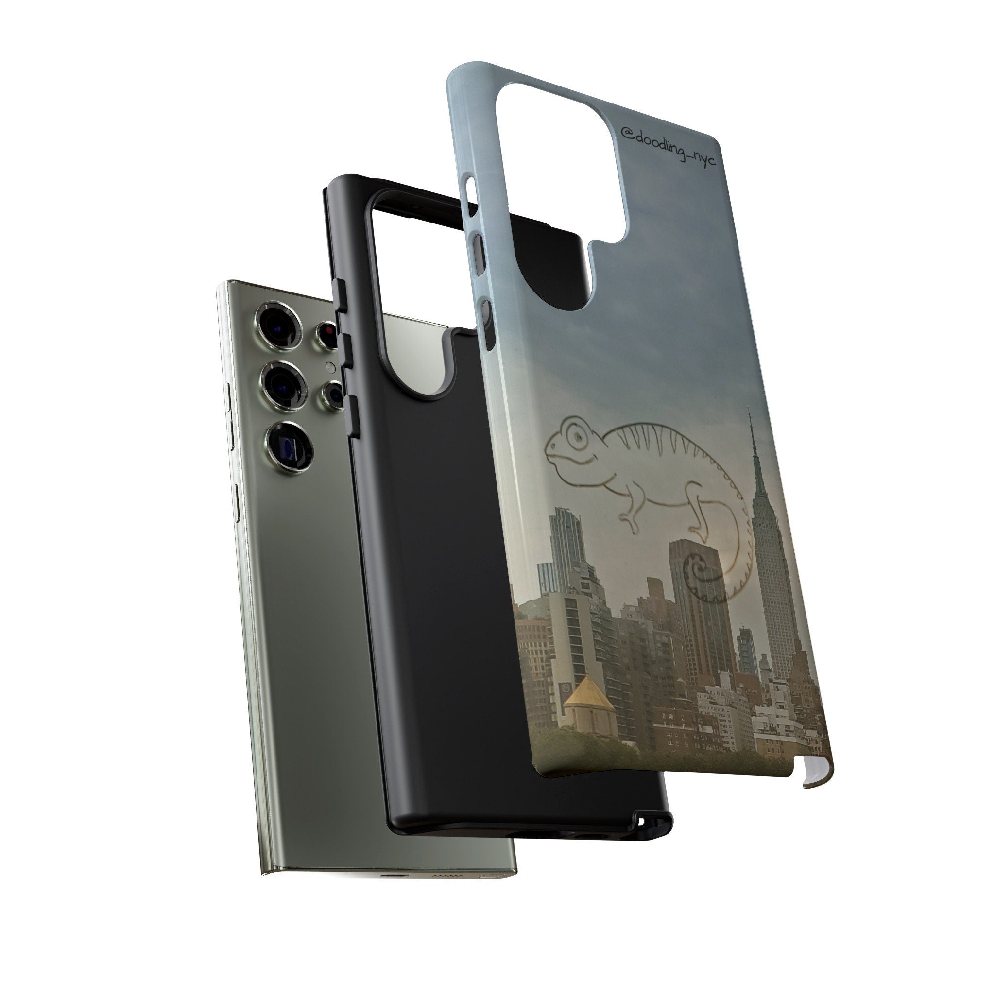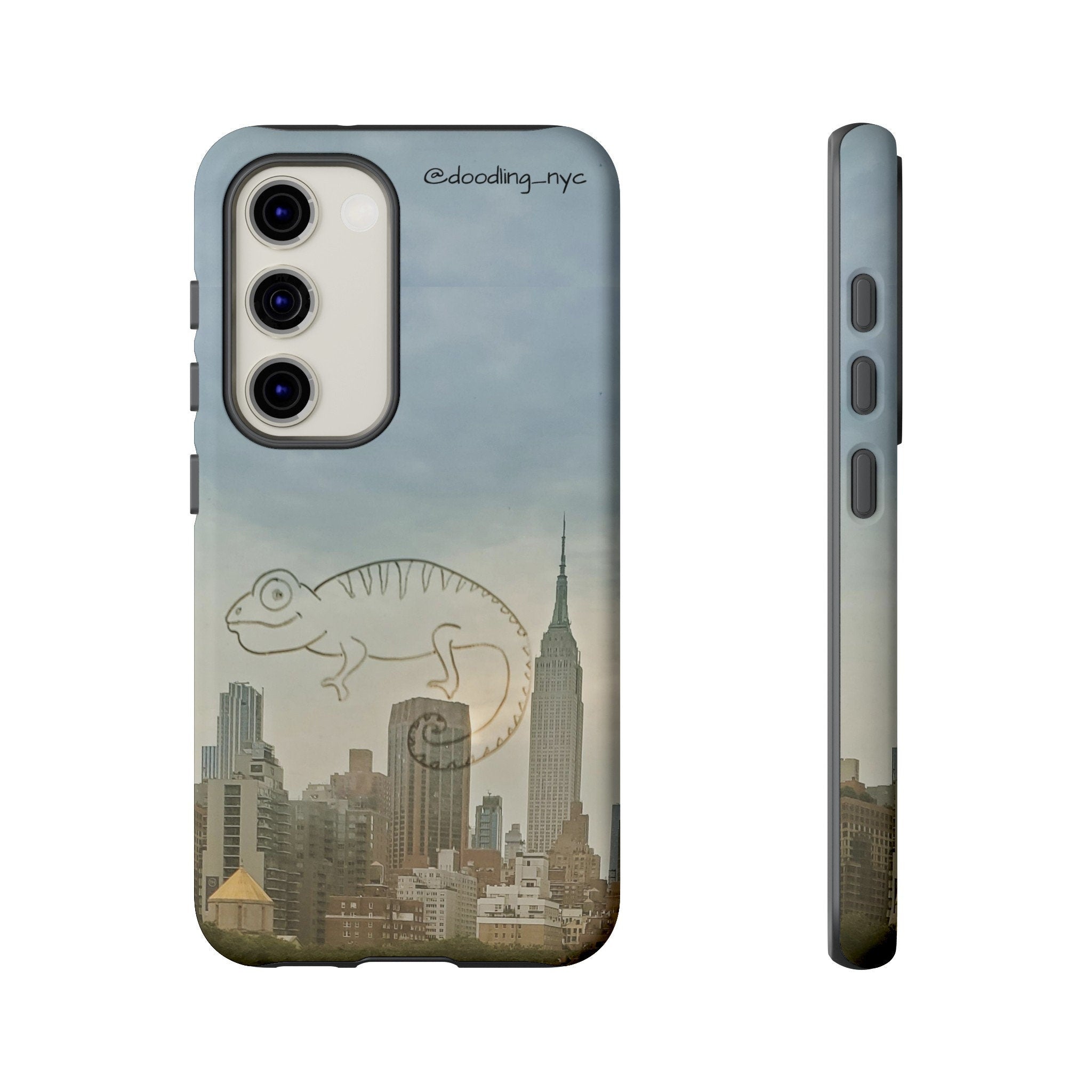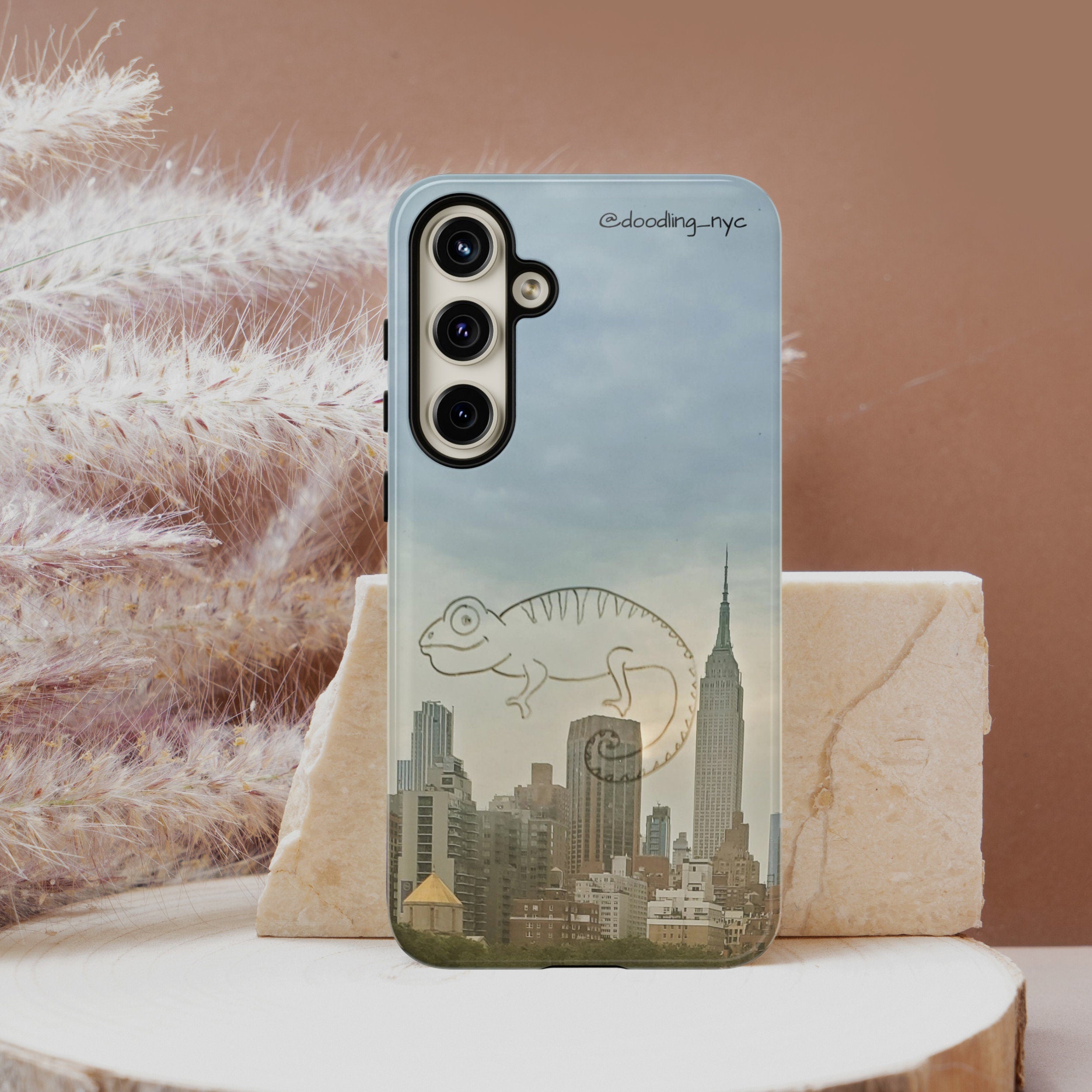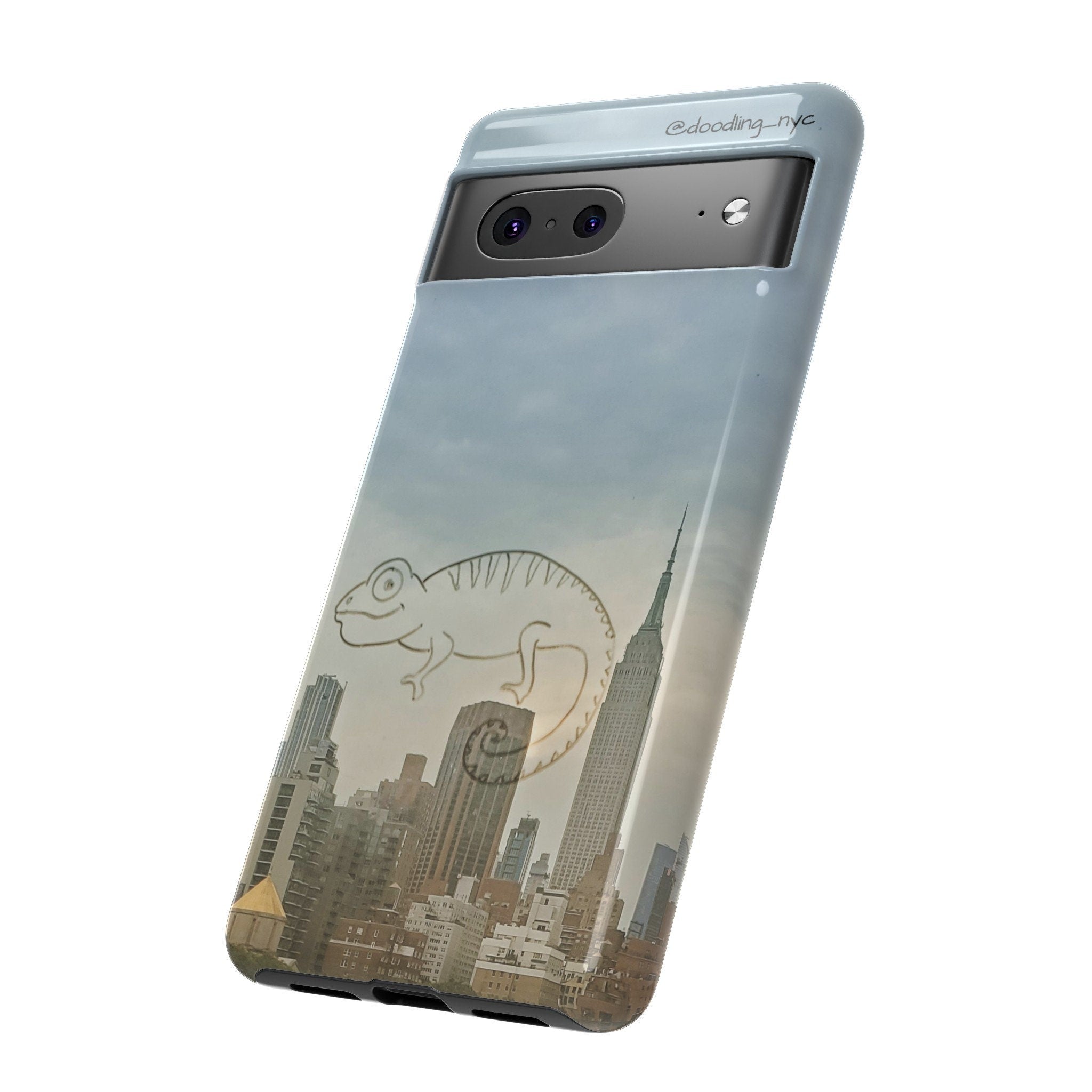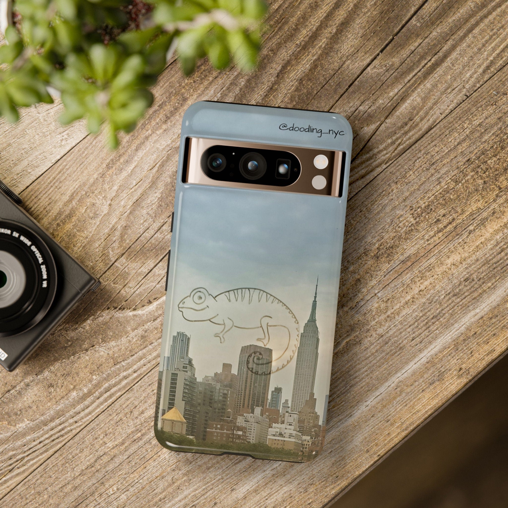 Hand Drawn Gecko Doodle tough Samsung Case, Stylish Trendy NYC Skyline pixel cover, Aesthetic Phone Case for Google Pixel 8 pro, 8, 8 plus,7