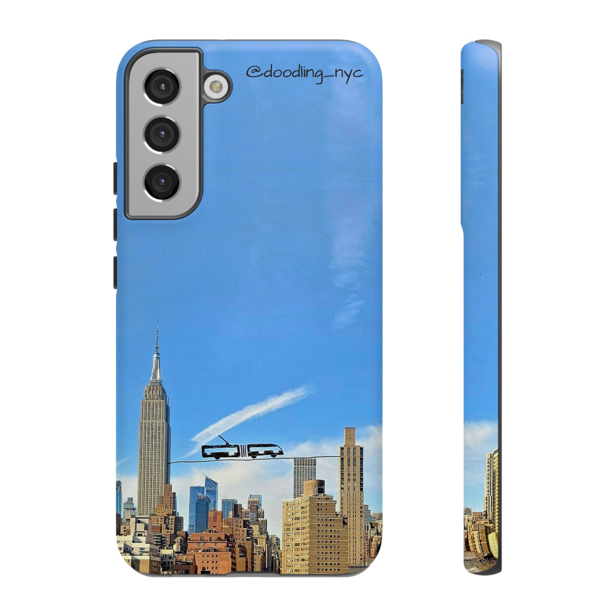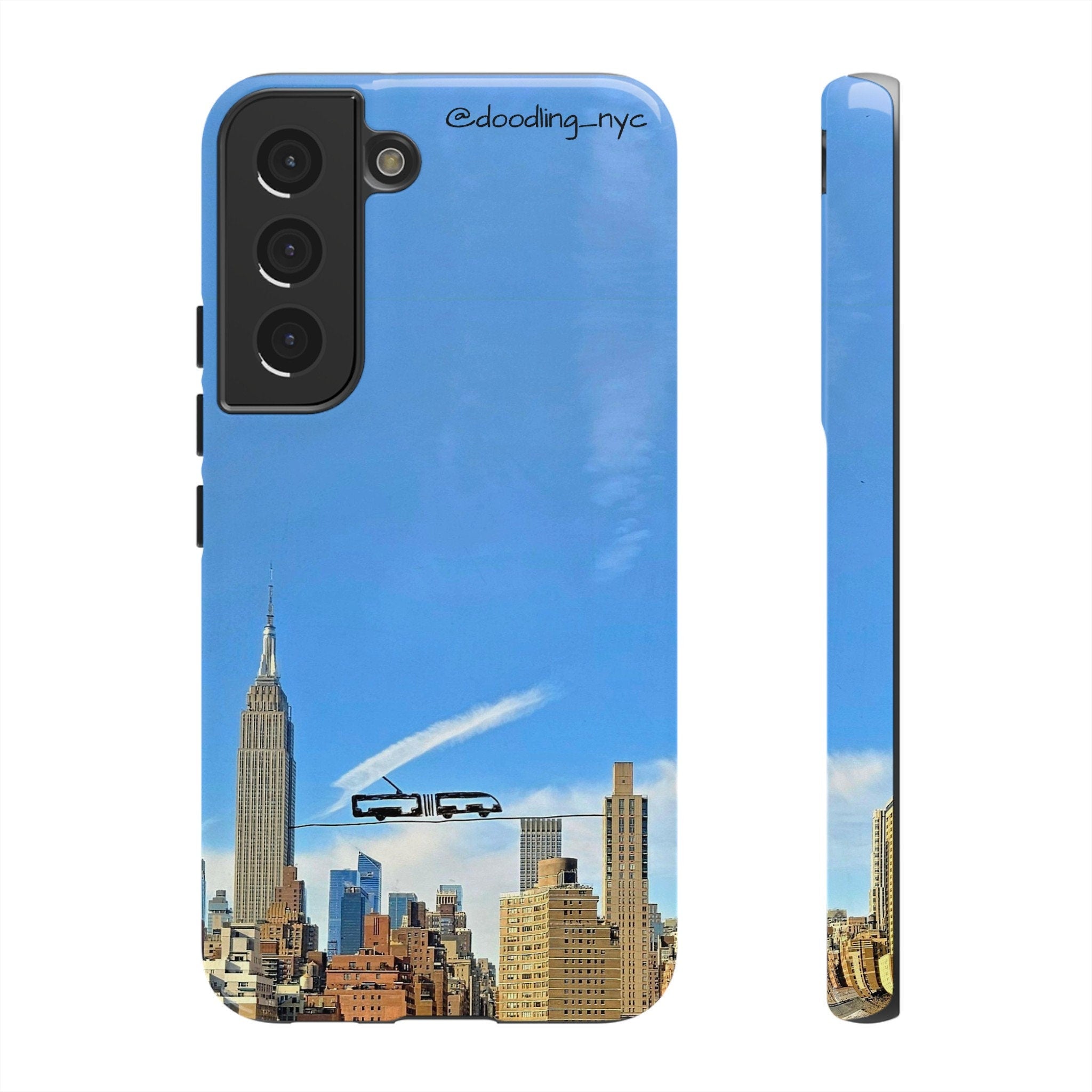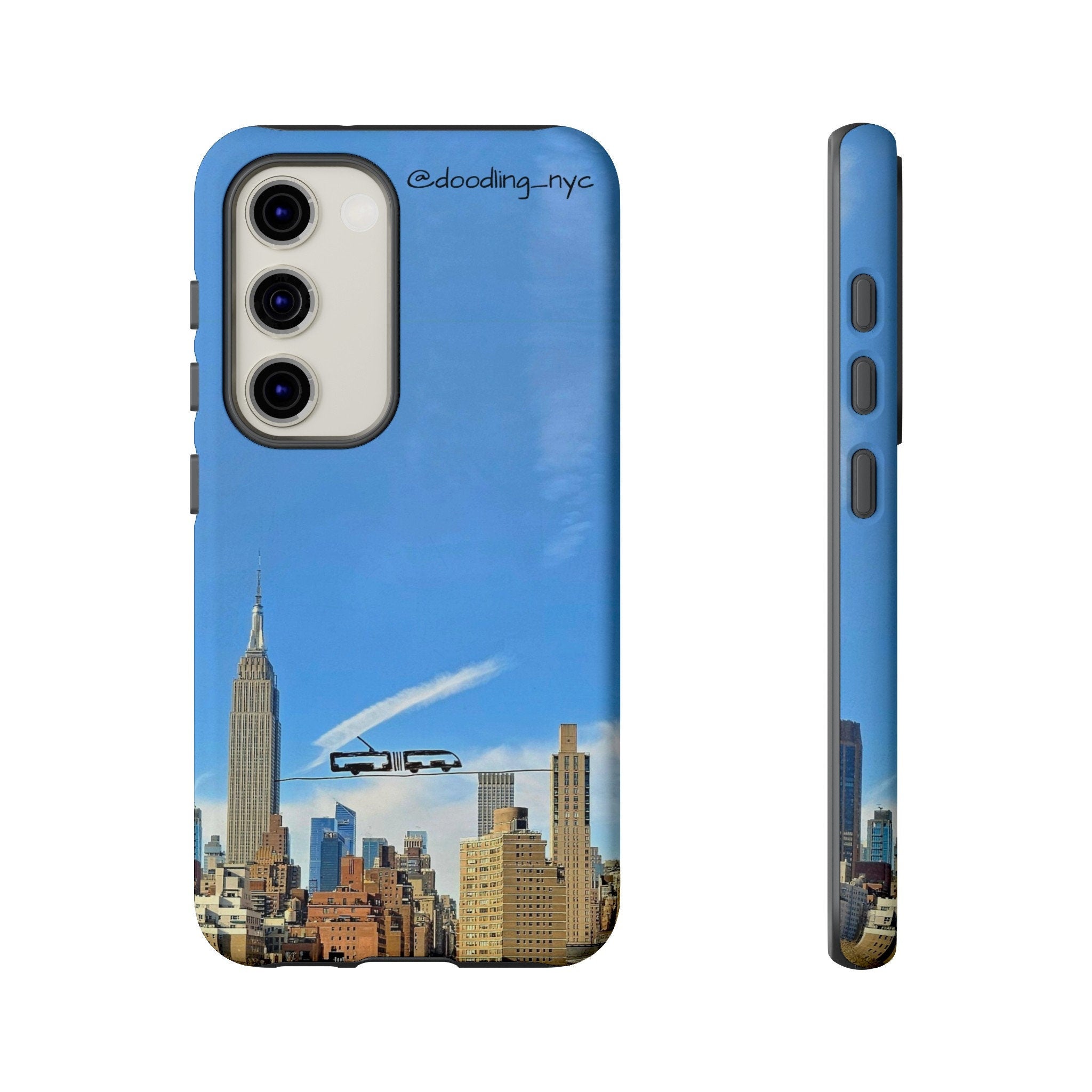 Train doodle Samsung Phone Case, Unique NYC Skyline bespoke Cover for Samsung 22, 22 plus, 22 ultra, NYC travel gift, Aesthetic Samsung Case