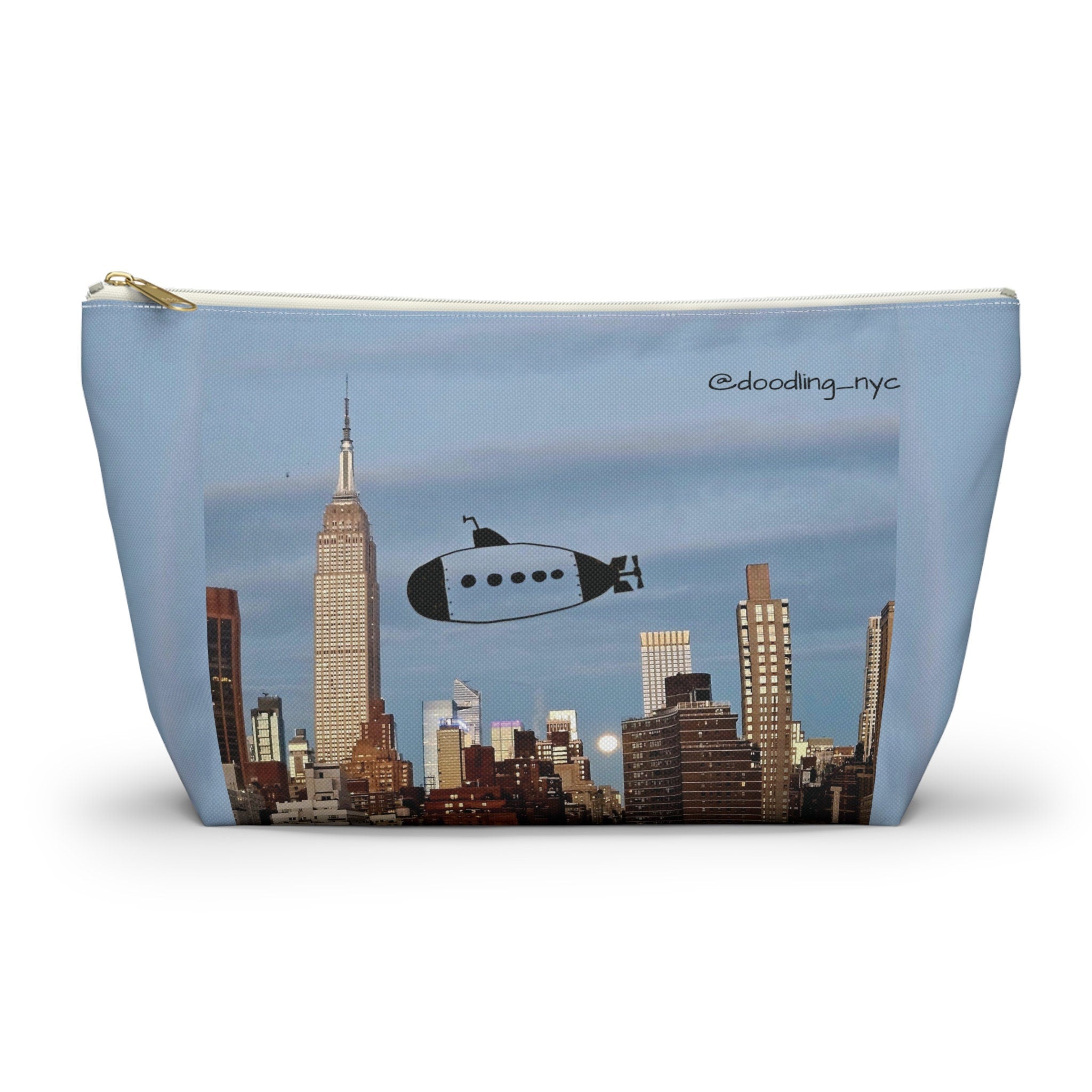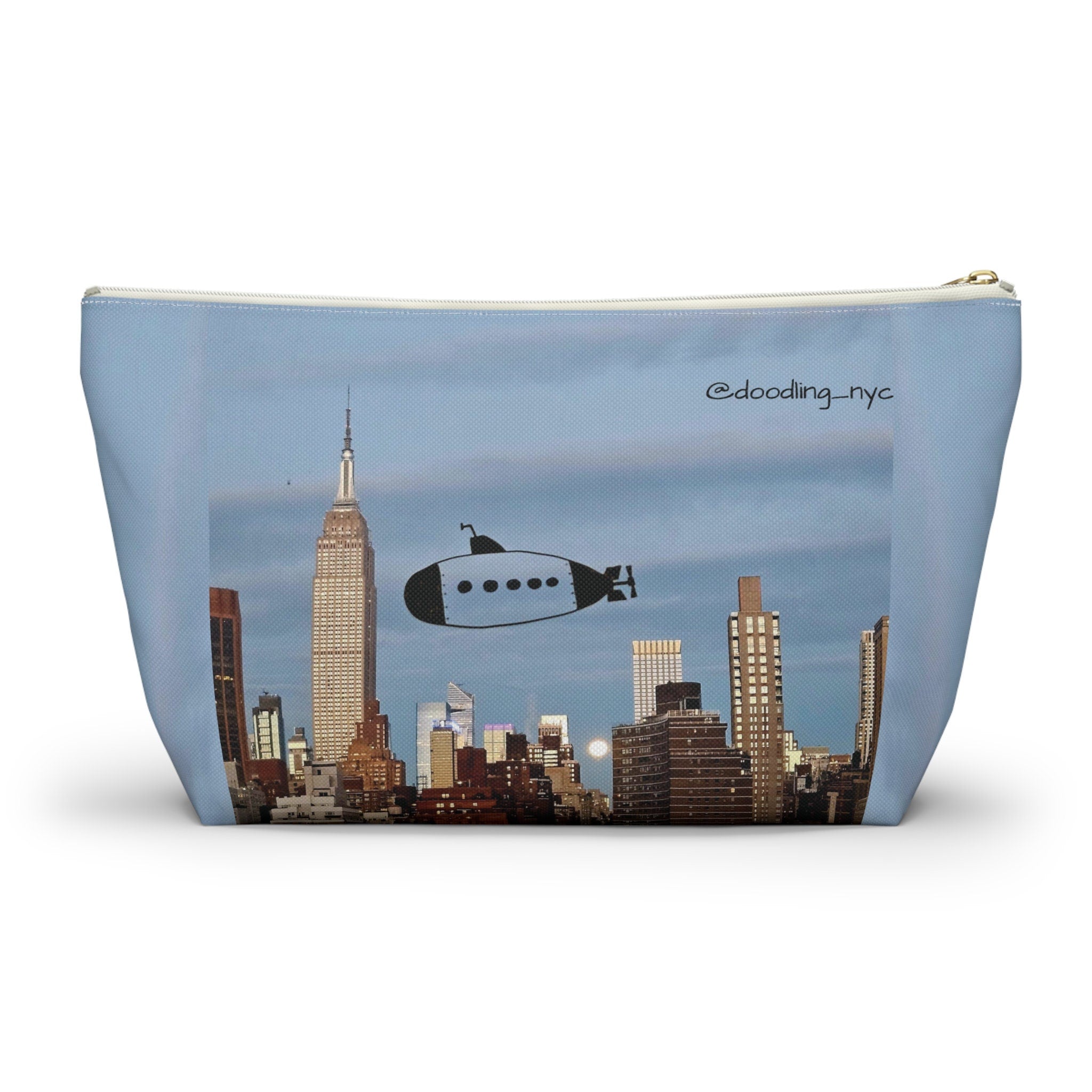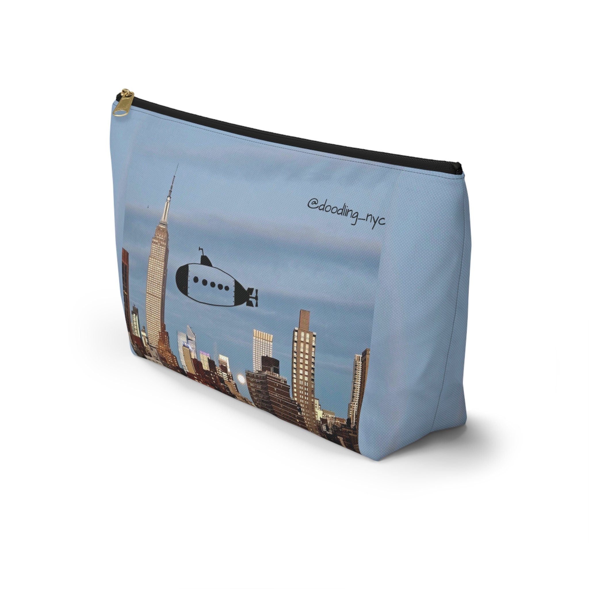 Hand Drawn Submarine Doodle Small Makeup Pouch Bag, USA NYC Skyline Cosmetic Makeup Organizer Bag, Pencil Case, Zipper Travel Pouch Women