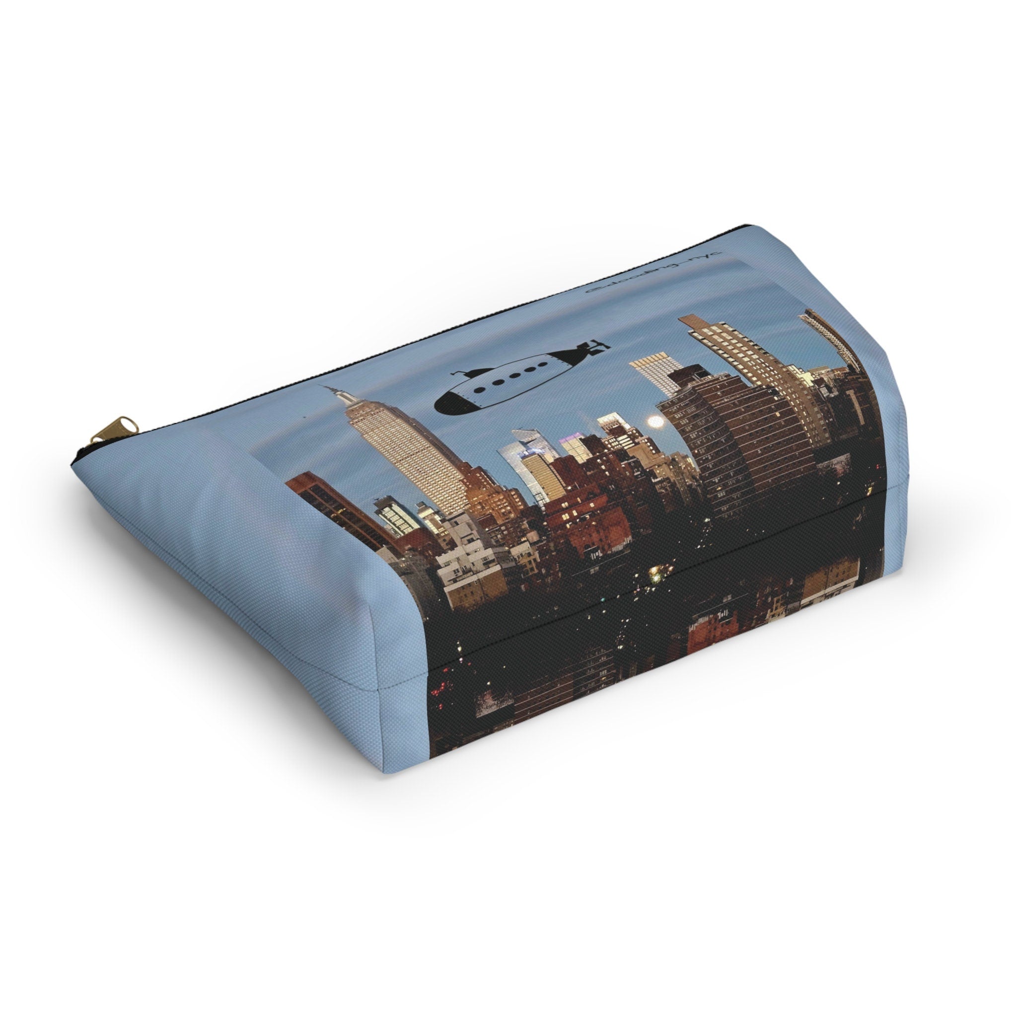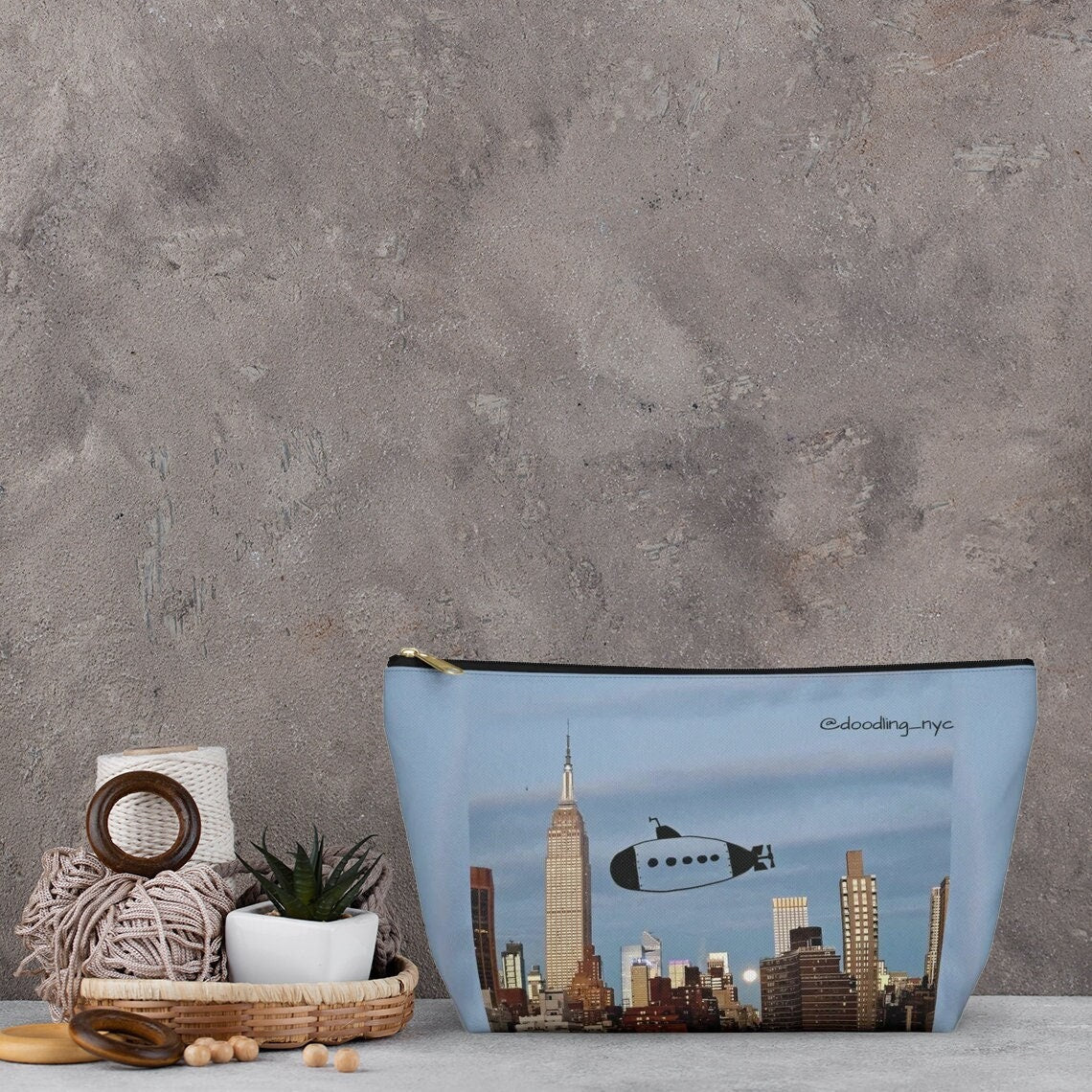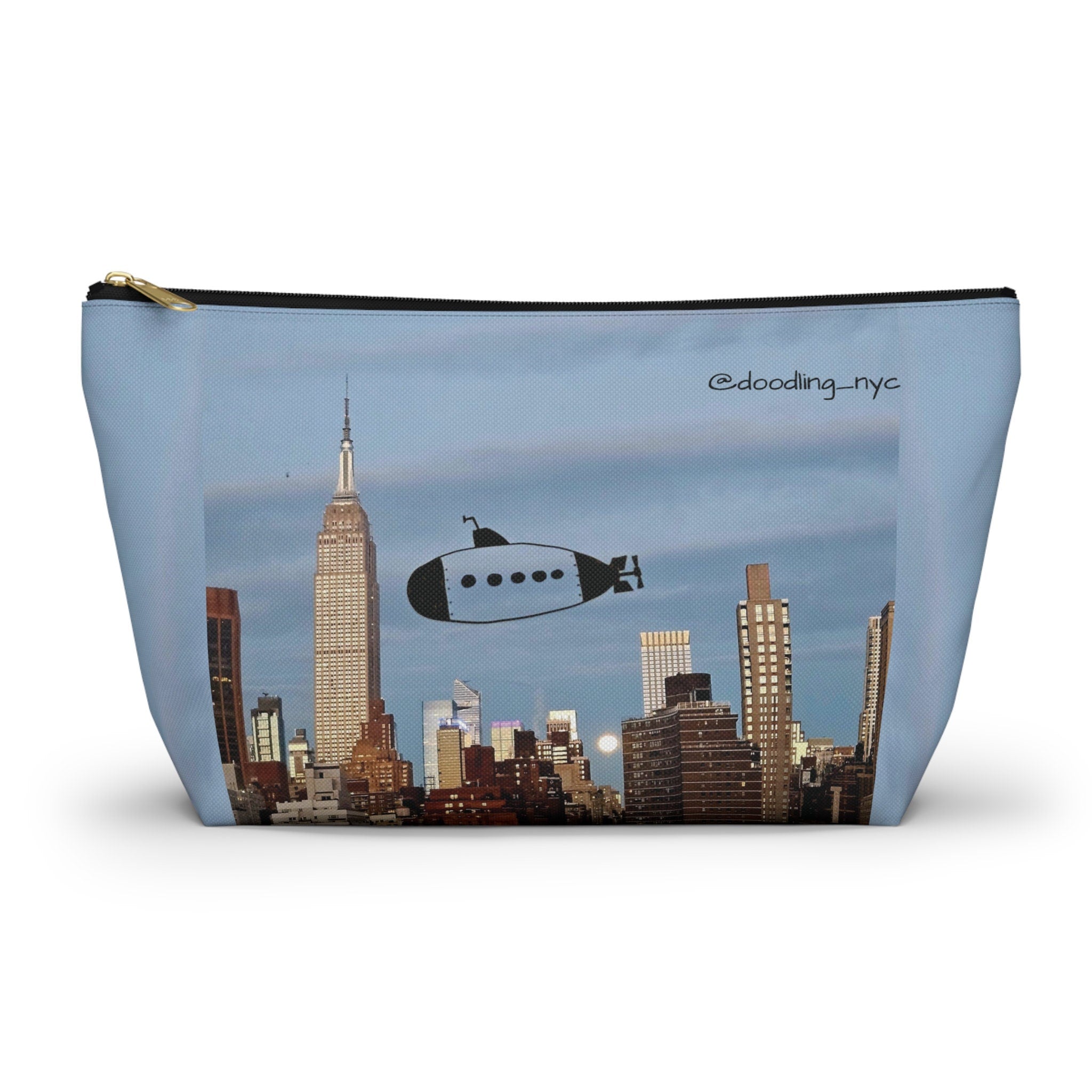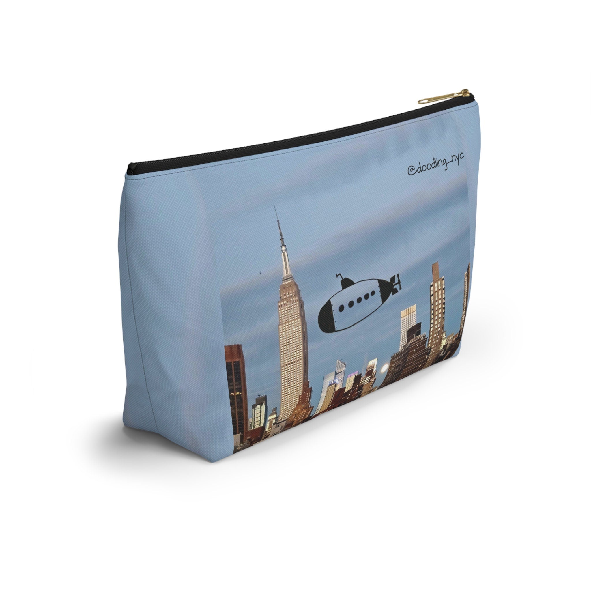 Hand Drawn Submarine Doodle Small Makeup Pouch Bag, USA NYC Skyline Cosmetic Makeup Organizer Bag, Pencil Case, Zipper Travel Pouch Women