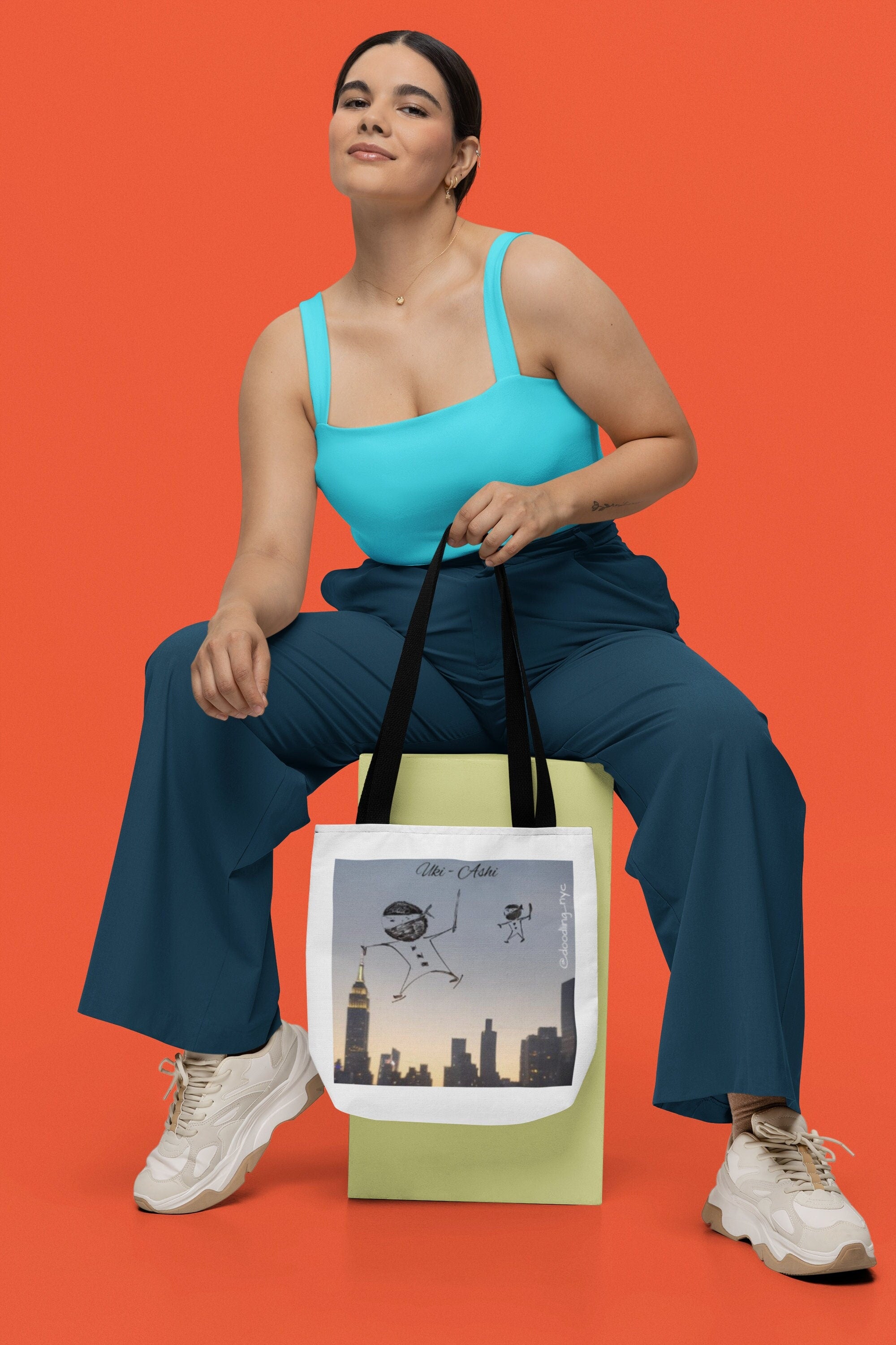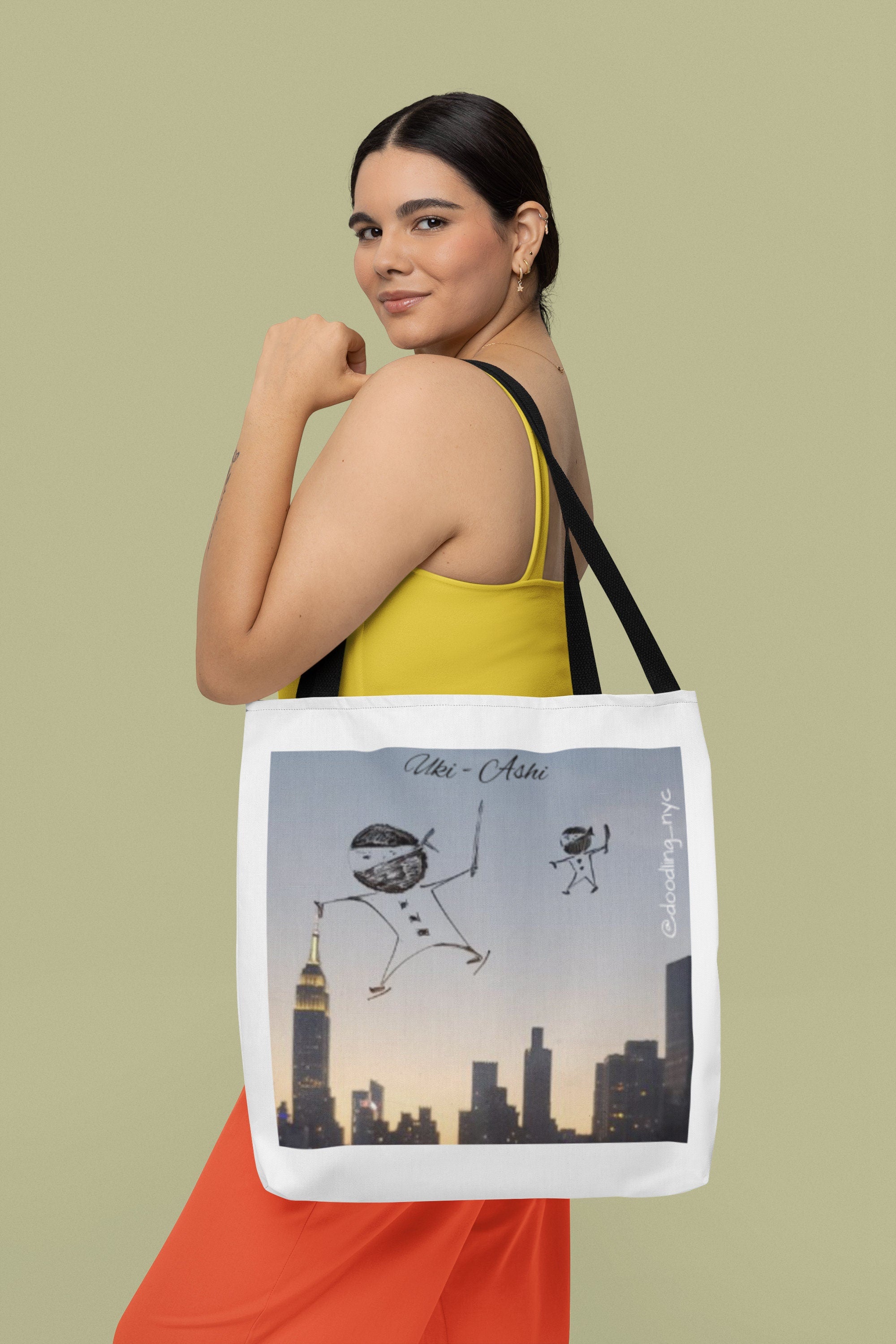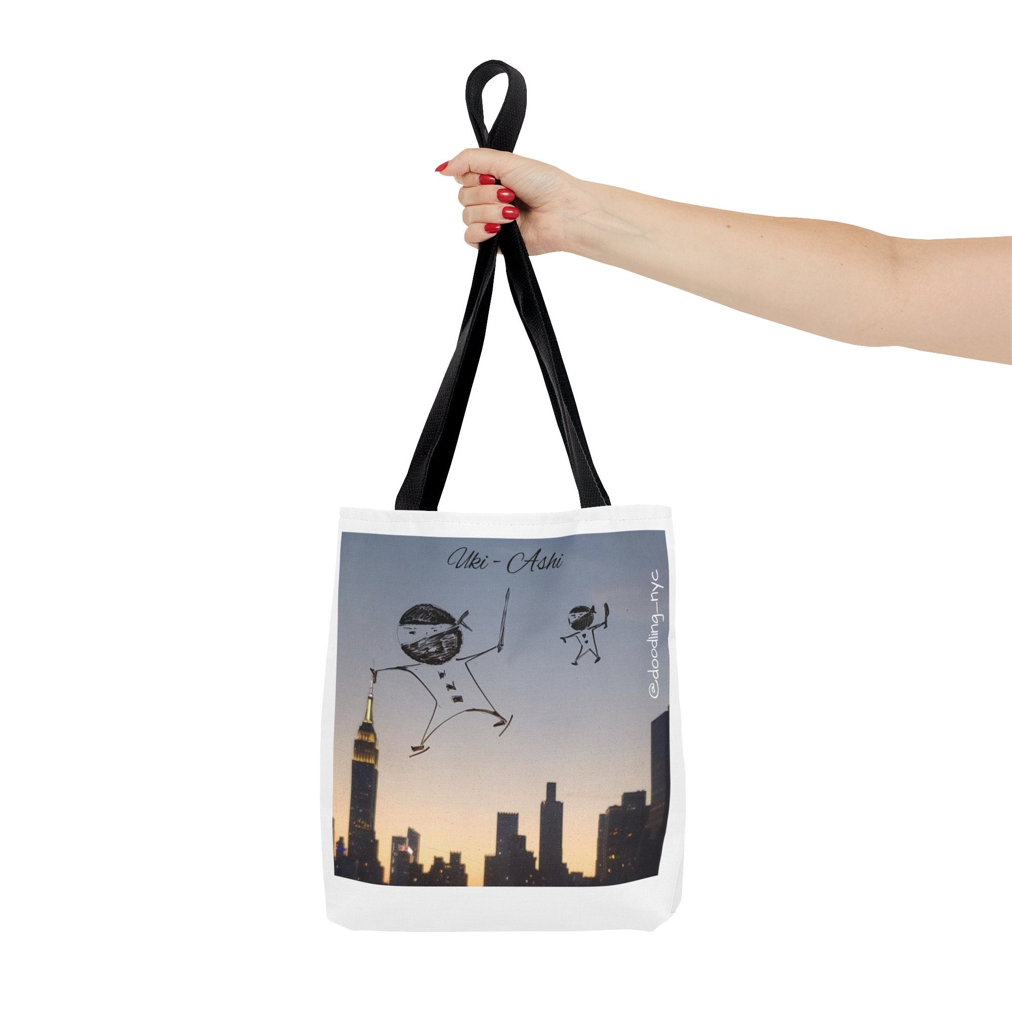Ninja Doodle Tote Bag, Artsy New York City Skyline Tote Bag, NYC Travel Bag Tote, Shoulder Market Tote Bag Women, Grocery Tote Bag Aesthetic