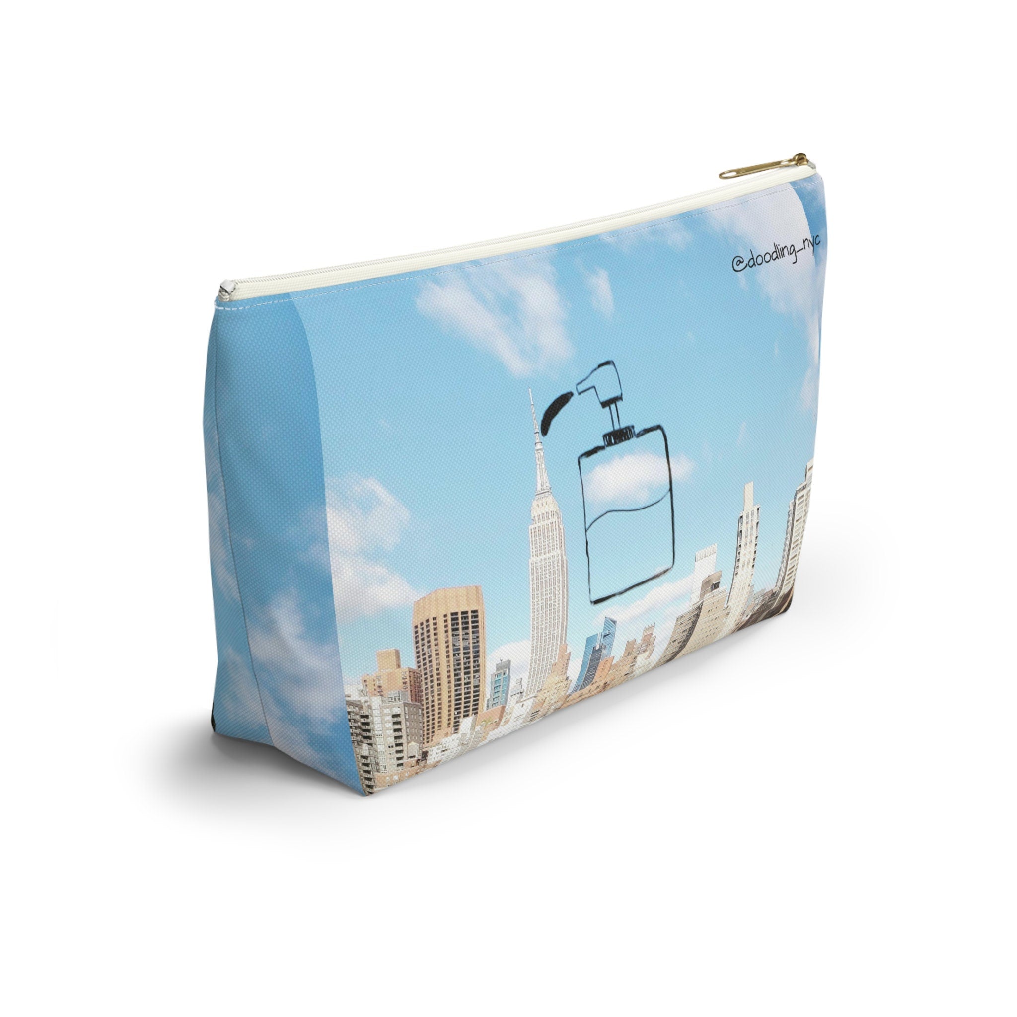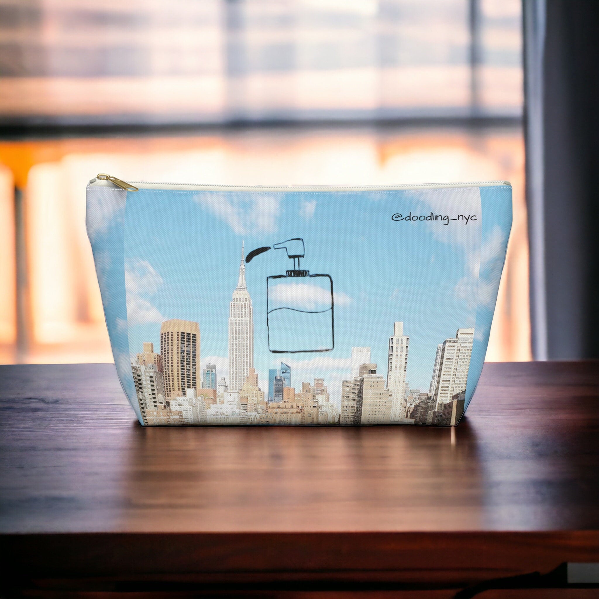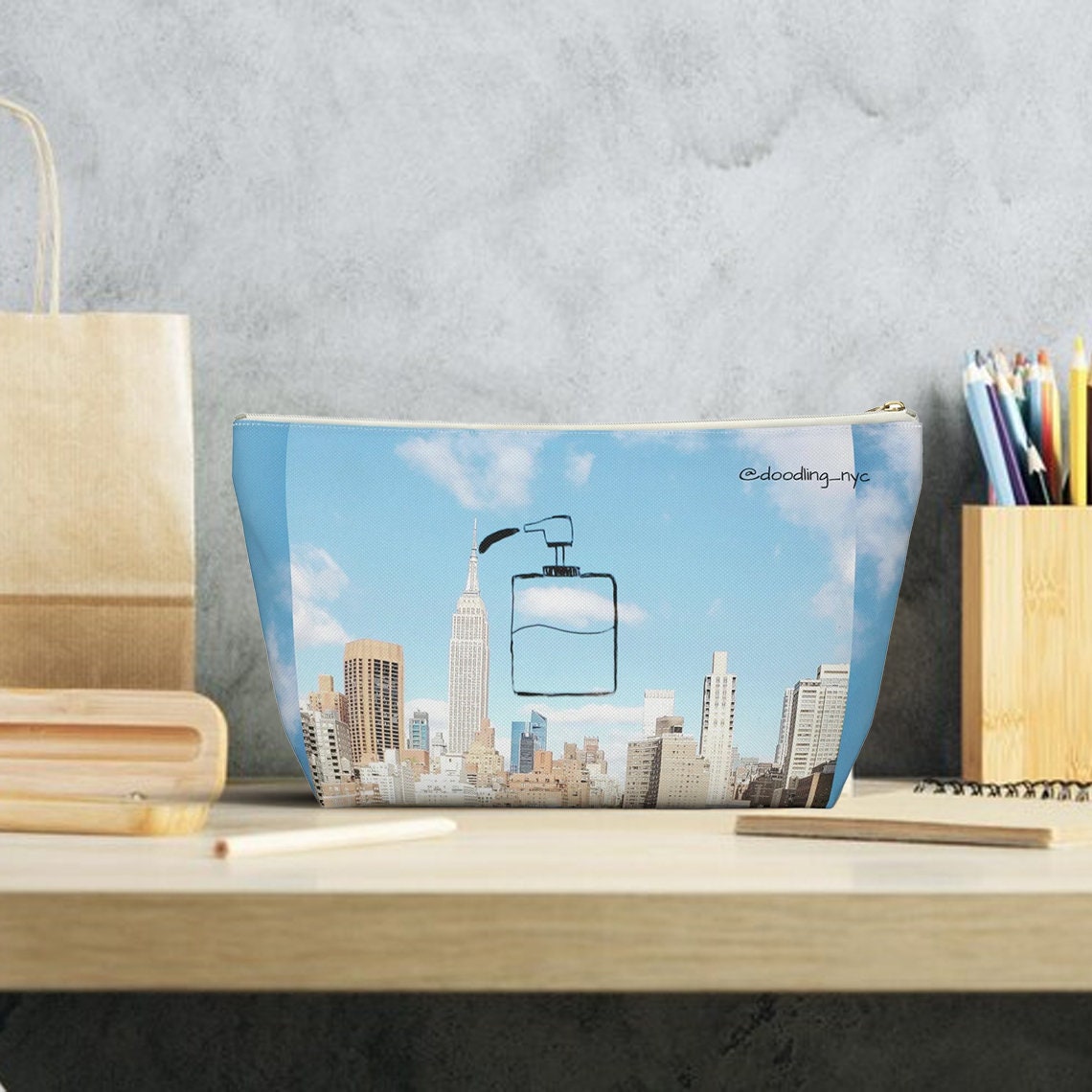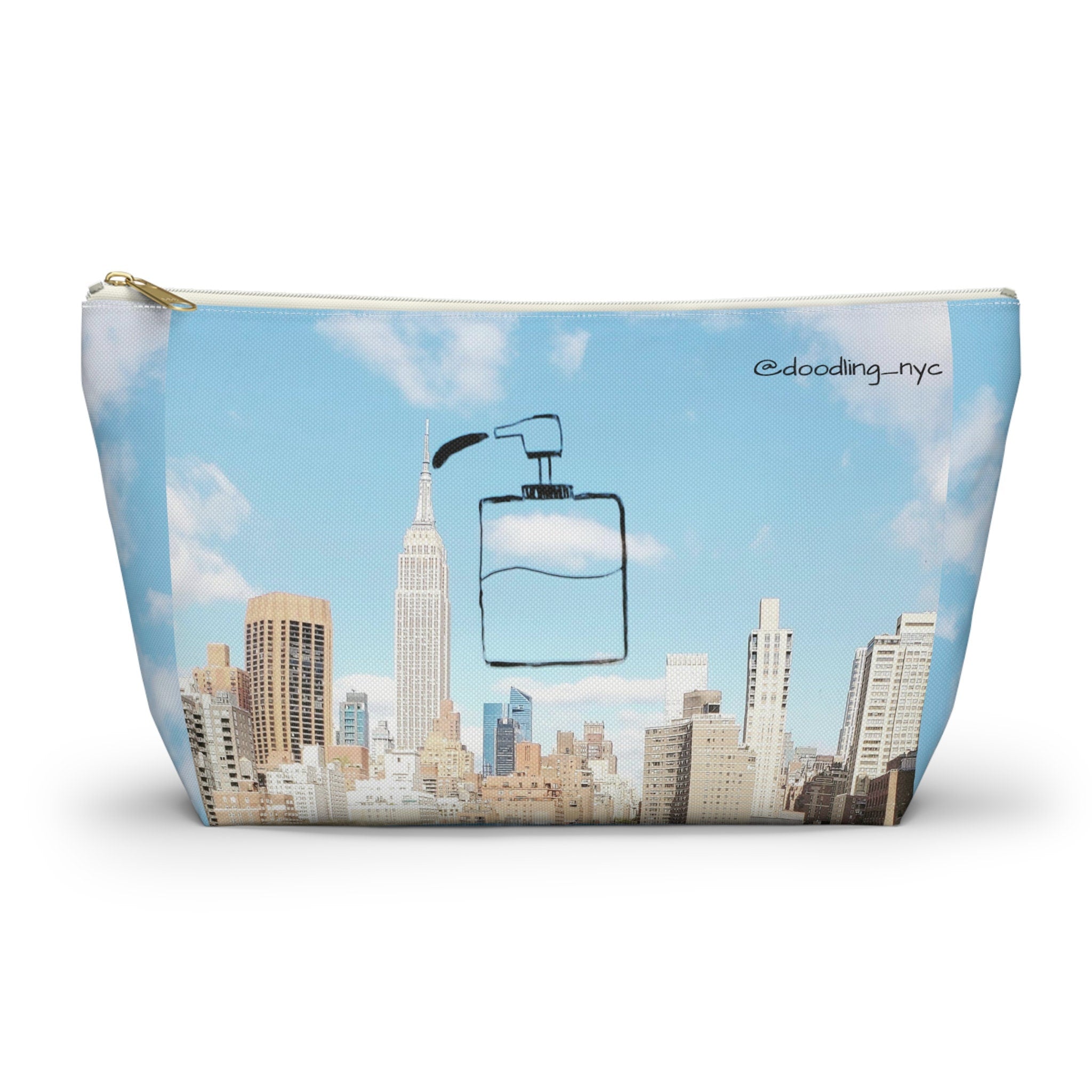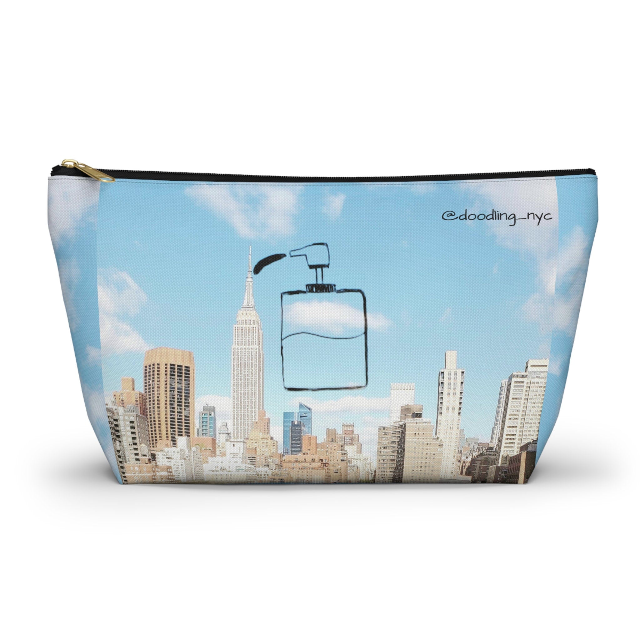 NYC Skyline Doodle Pouch Bag, Artsy Zipper Travel Makeup Pouch, Cosmetic Organizer, Pencil Makeup Case, Small Toiletry Bag, Accessory Pouch