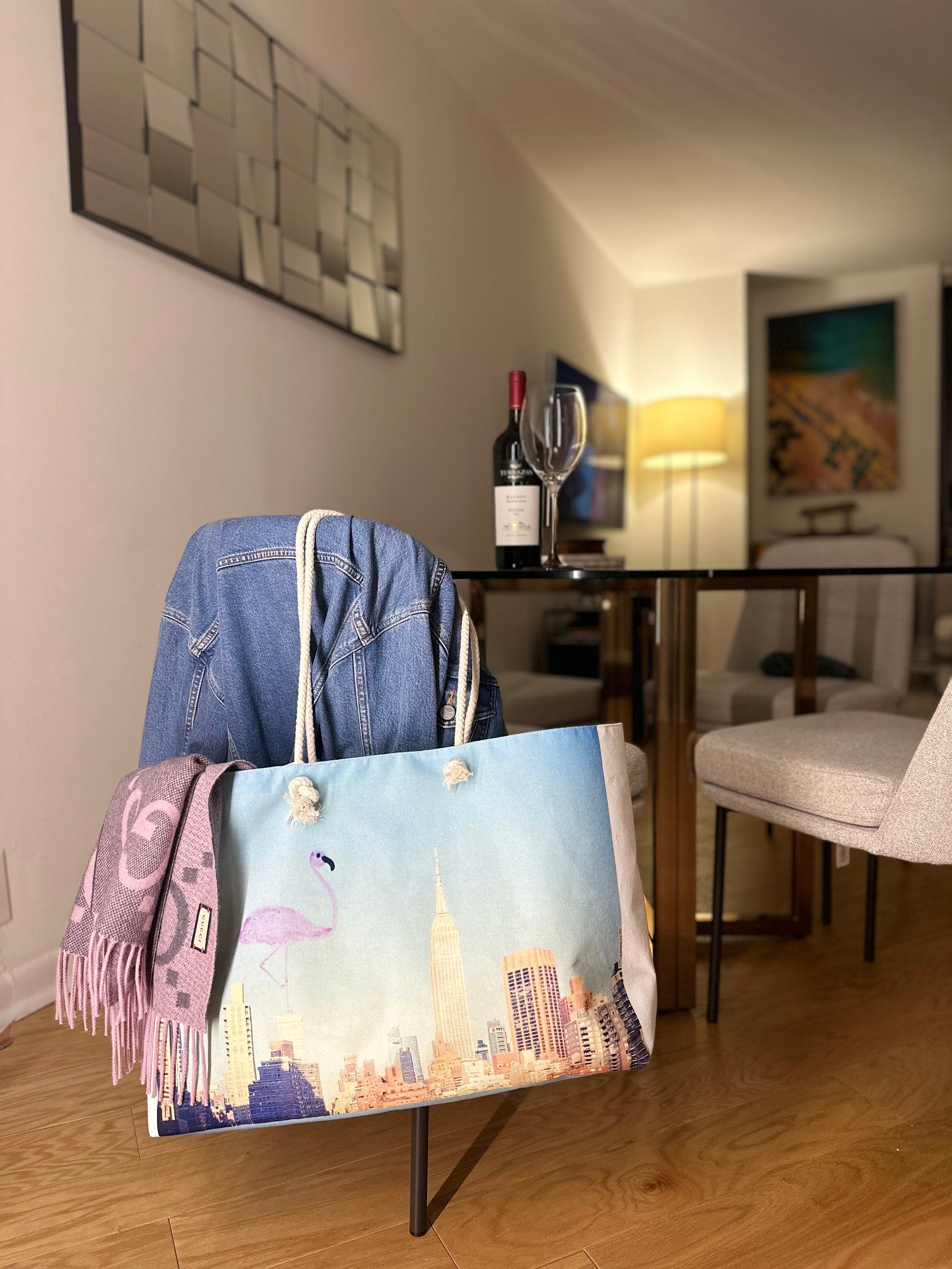 Pink Flamingo NYC Skyline Weekender Tote Bag, All Purpose Weekend Tote Bag, Stylish Beach Travel Bag, Diaper Market Bag, New Mama Gift