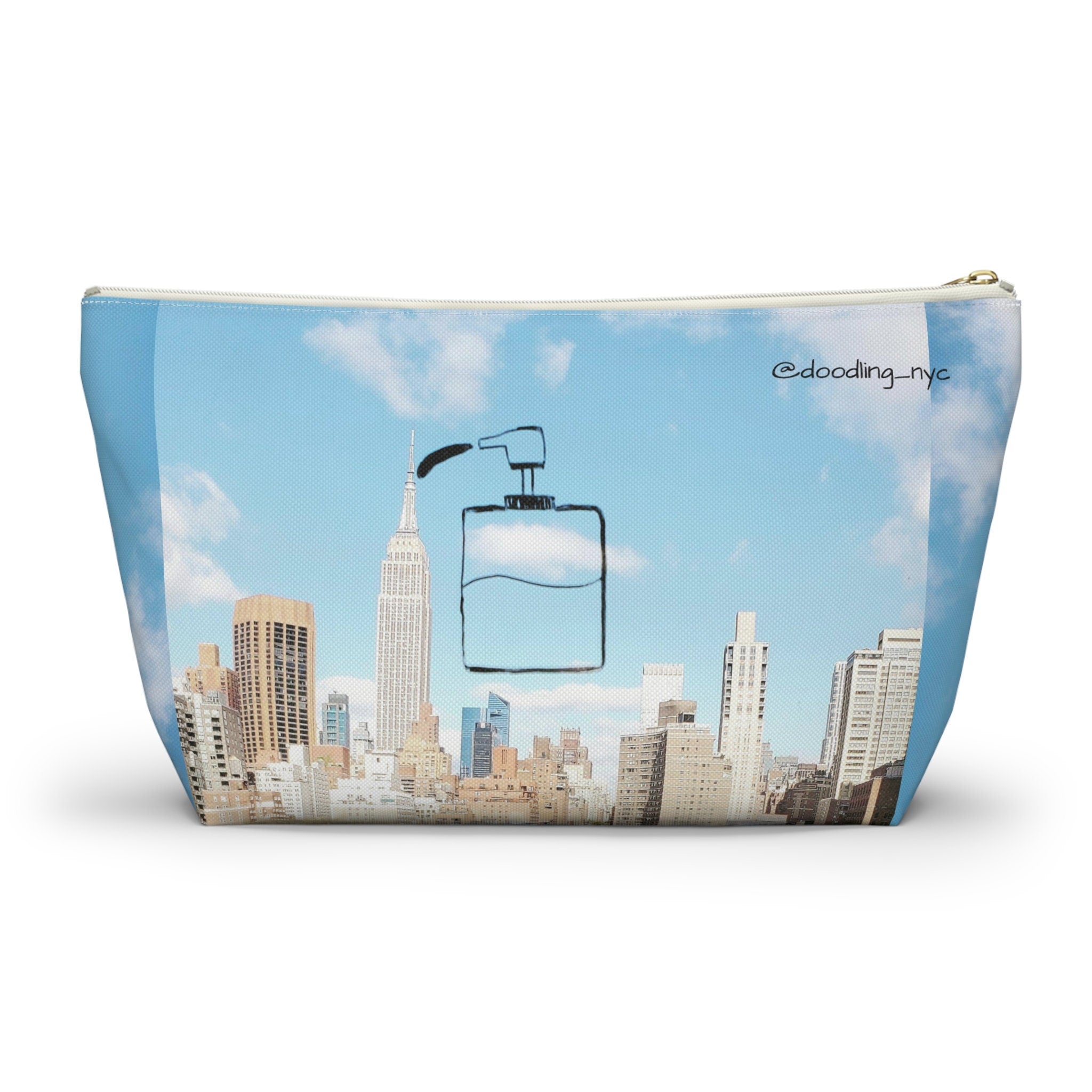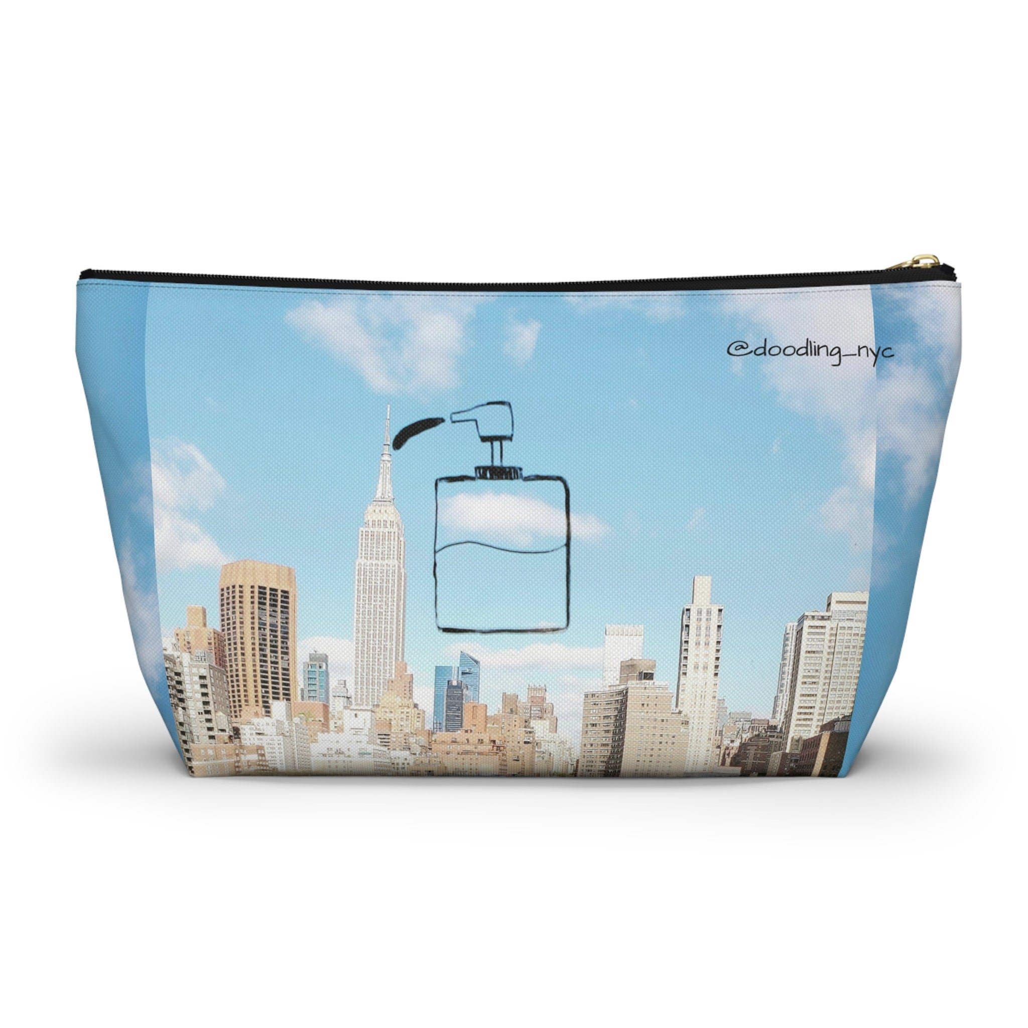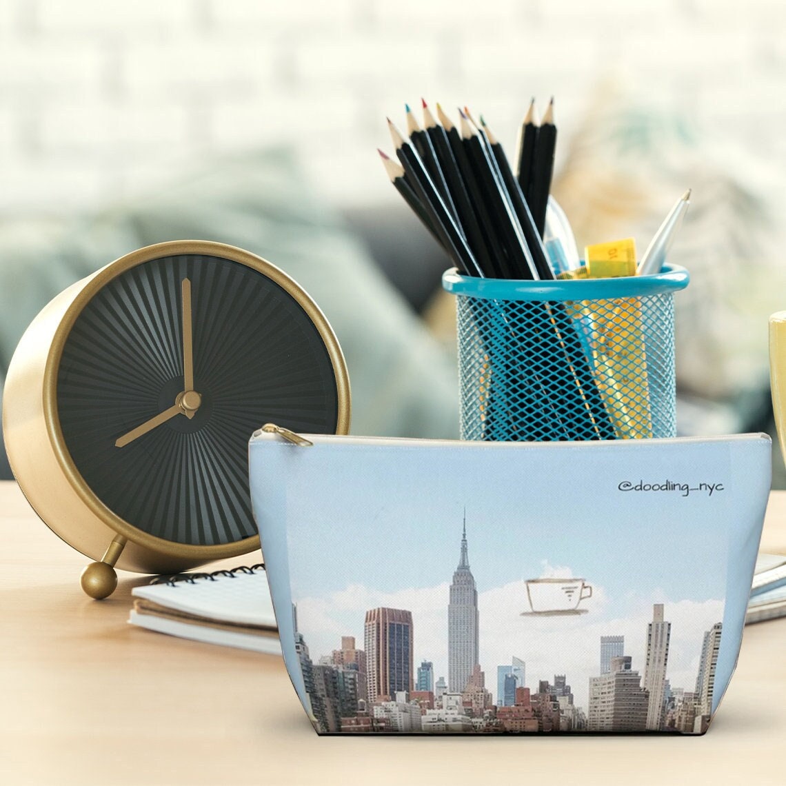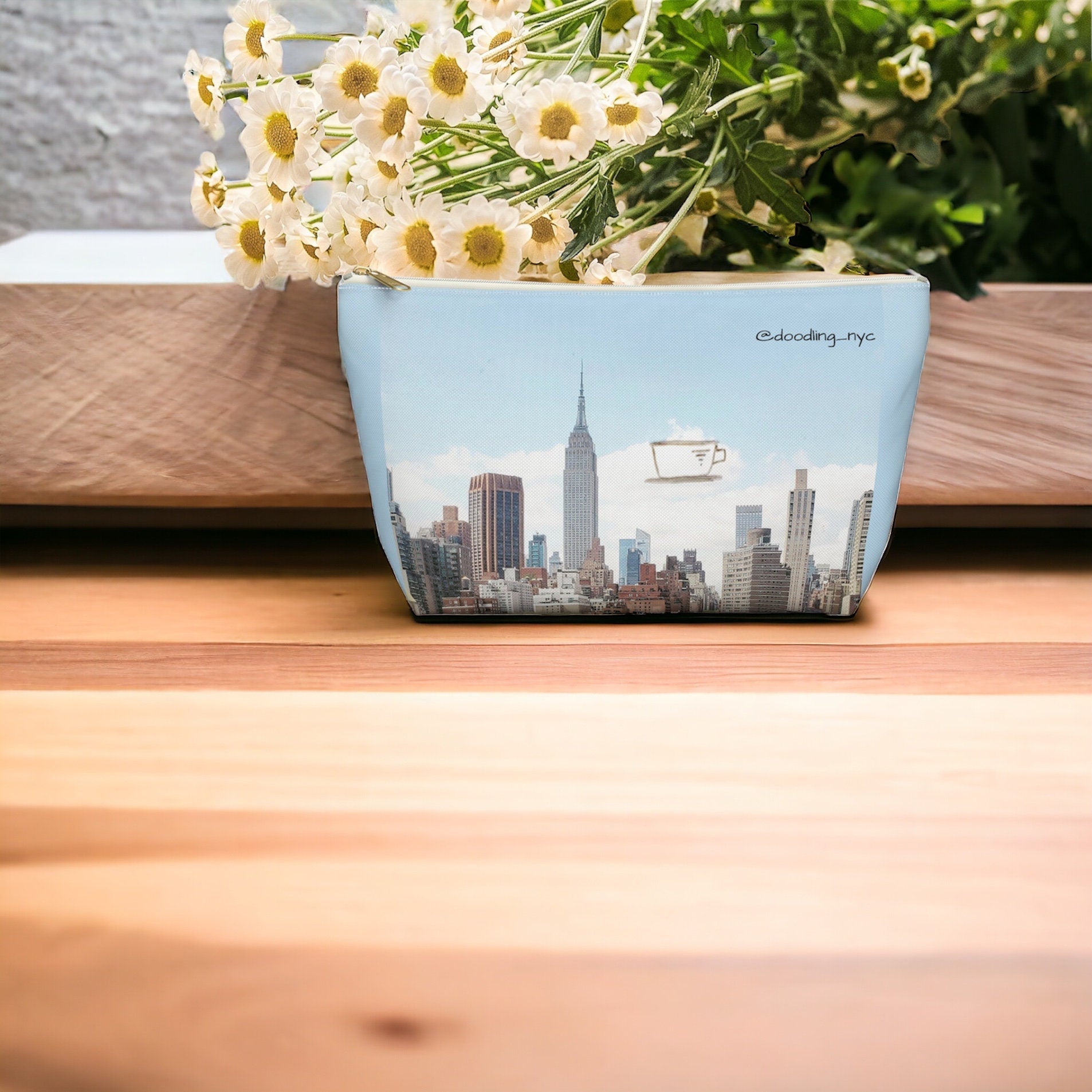 USA NYC State Skyline Coffee Cup Doodle Makeup Pouch Women, Travel Cosmetic Pouch Bag, Weekend Travel Organizer, Zipper Storage Bag