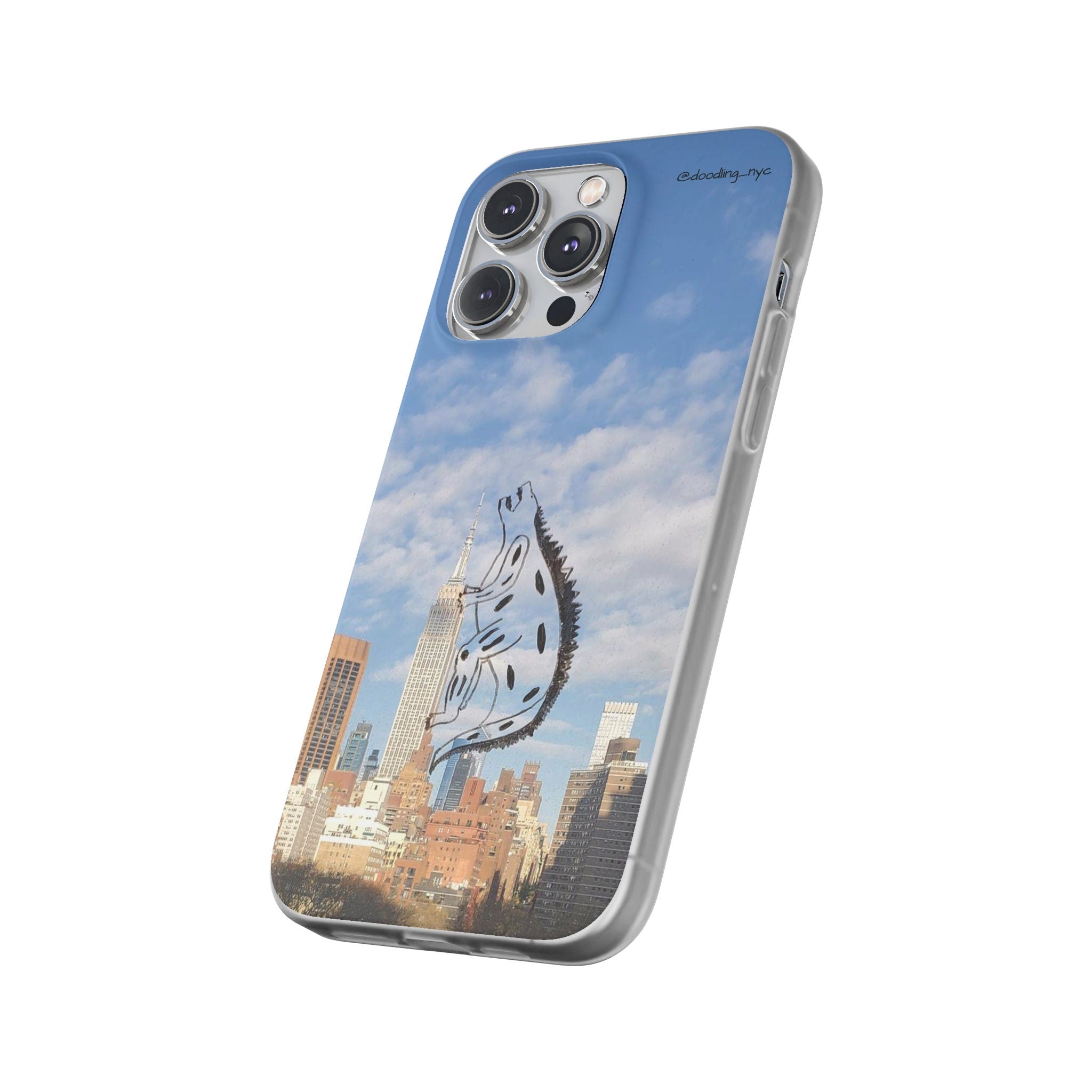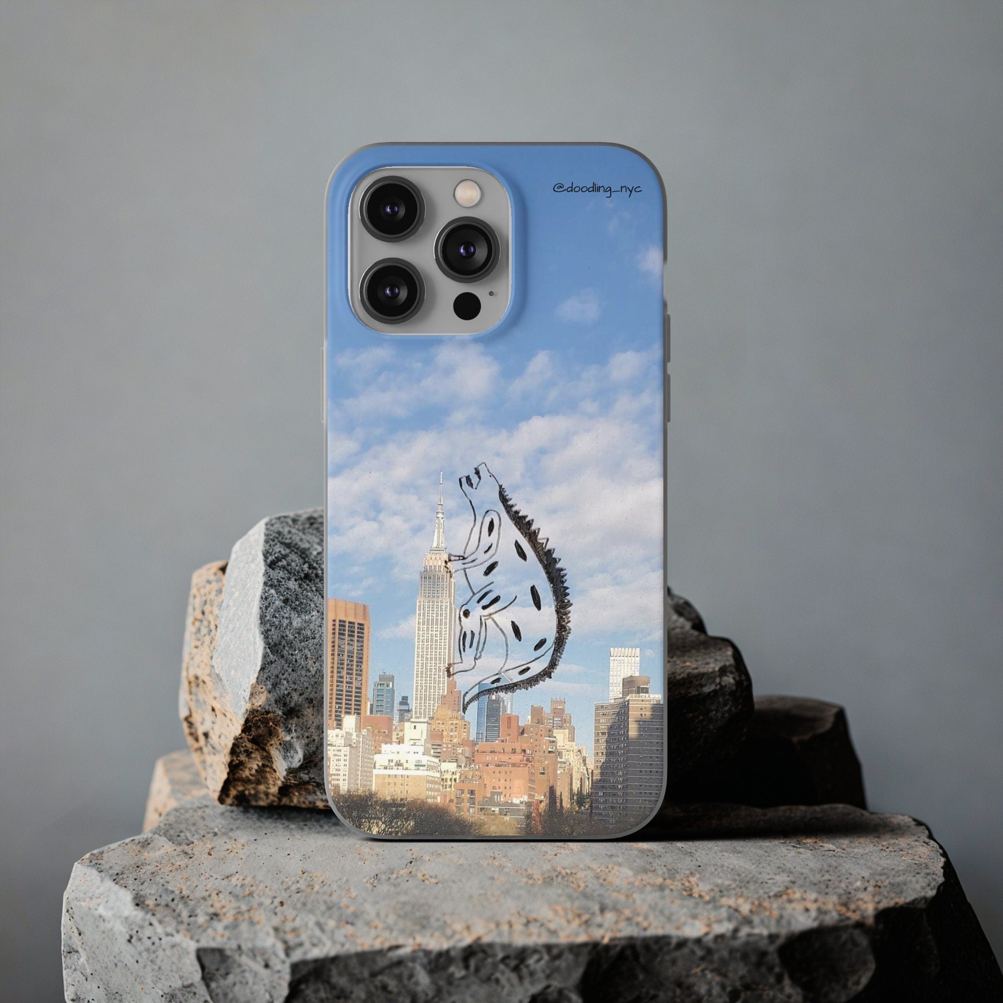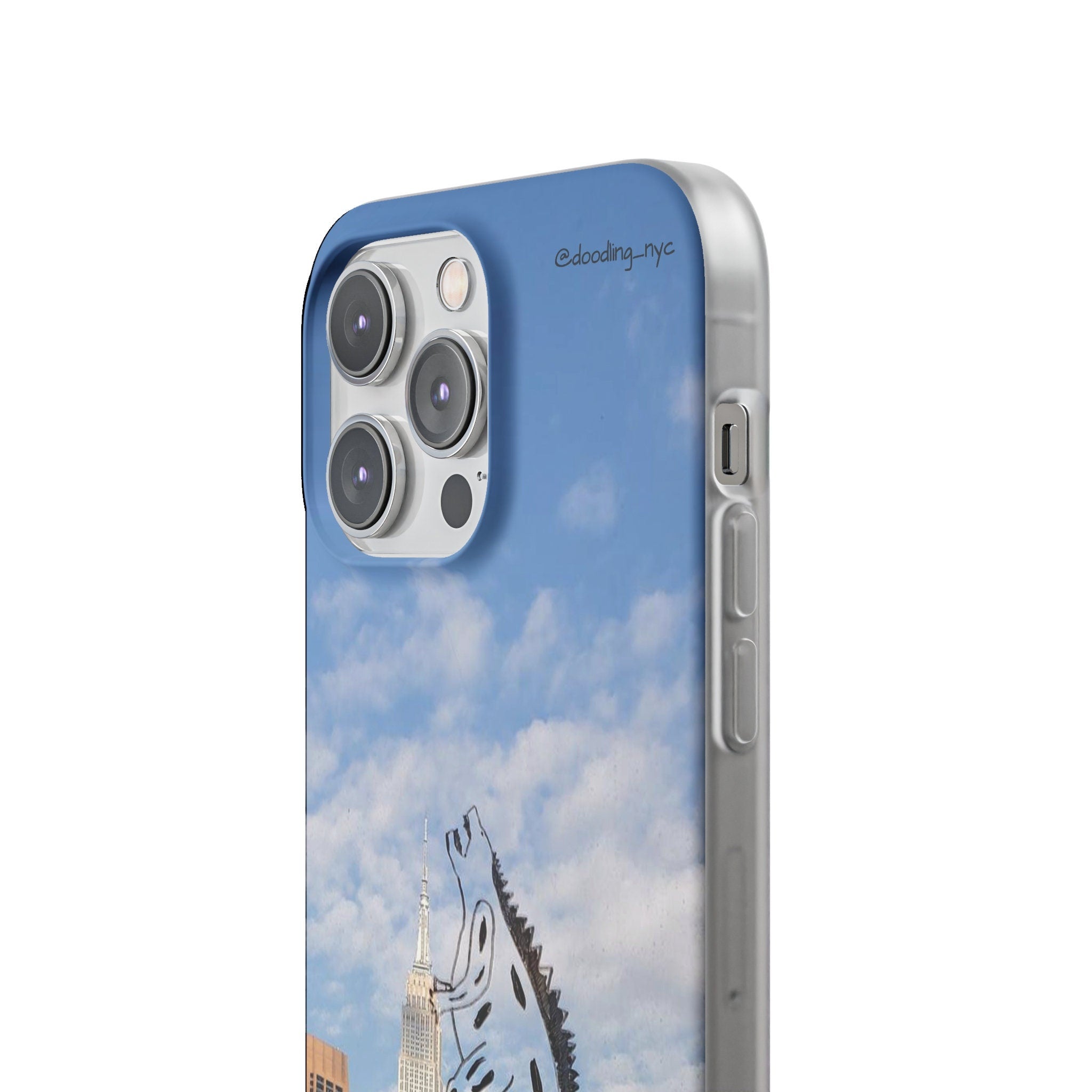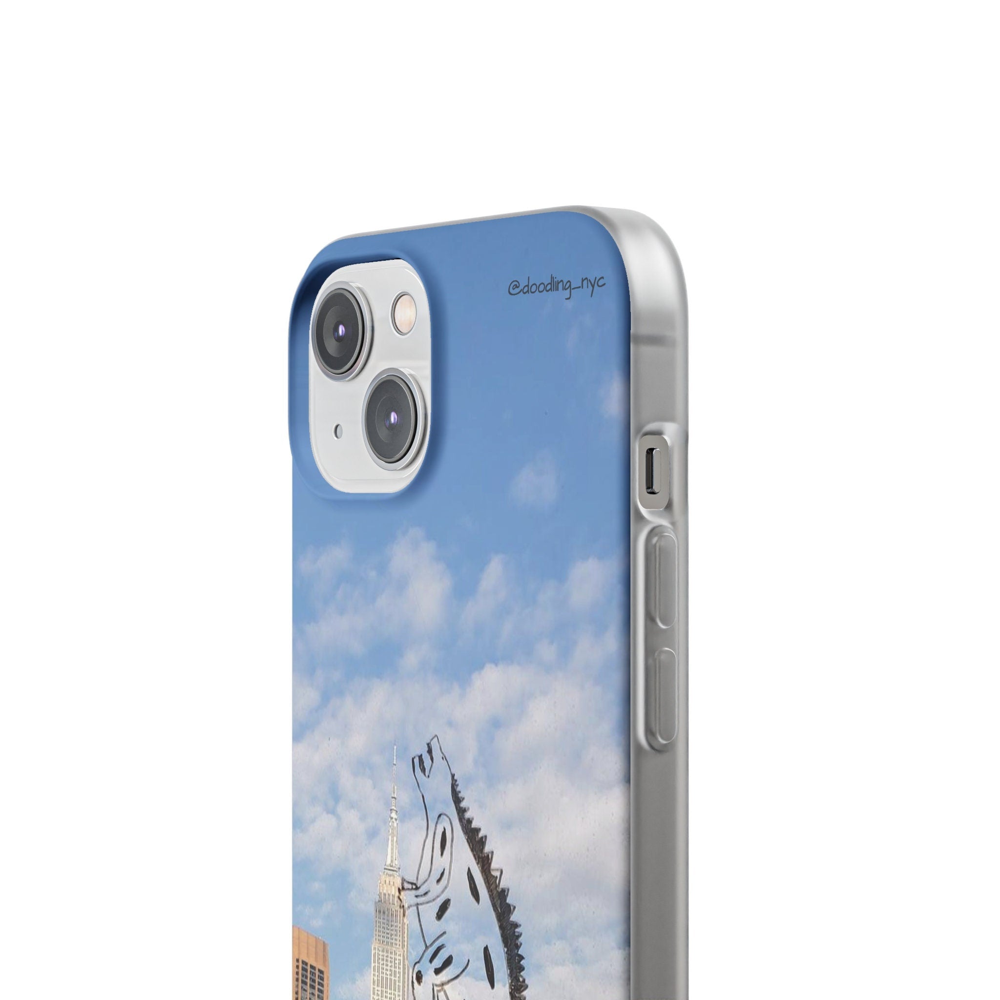 Godzilla Doodle Flexi iPhone Case, Trendy NYC Skyline Phone Case for iPhone 13 14 Mini Pro Max Plus, Cool Phone Case, Popular Right Now