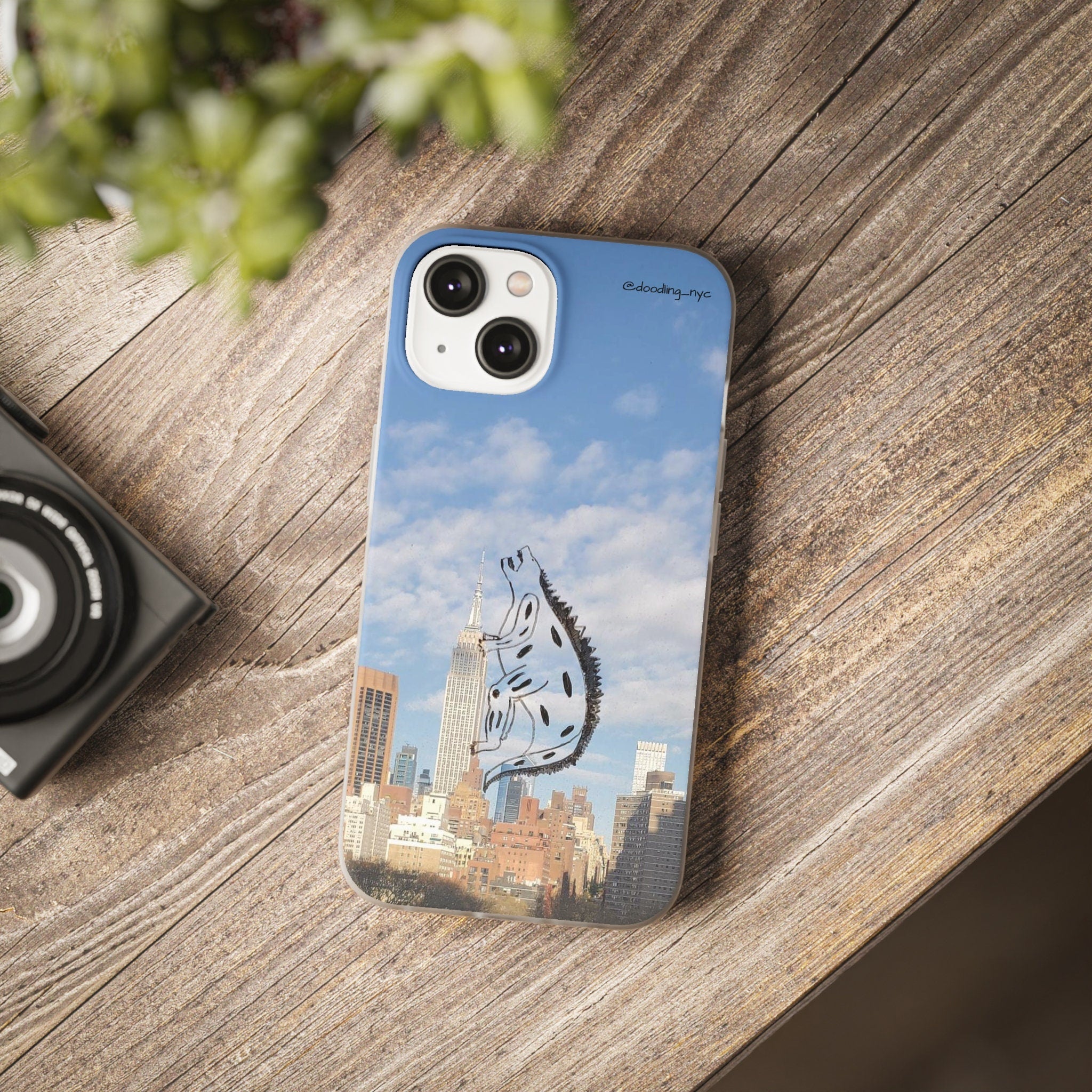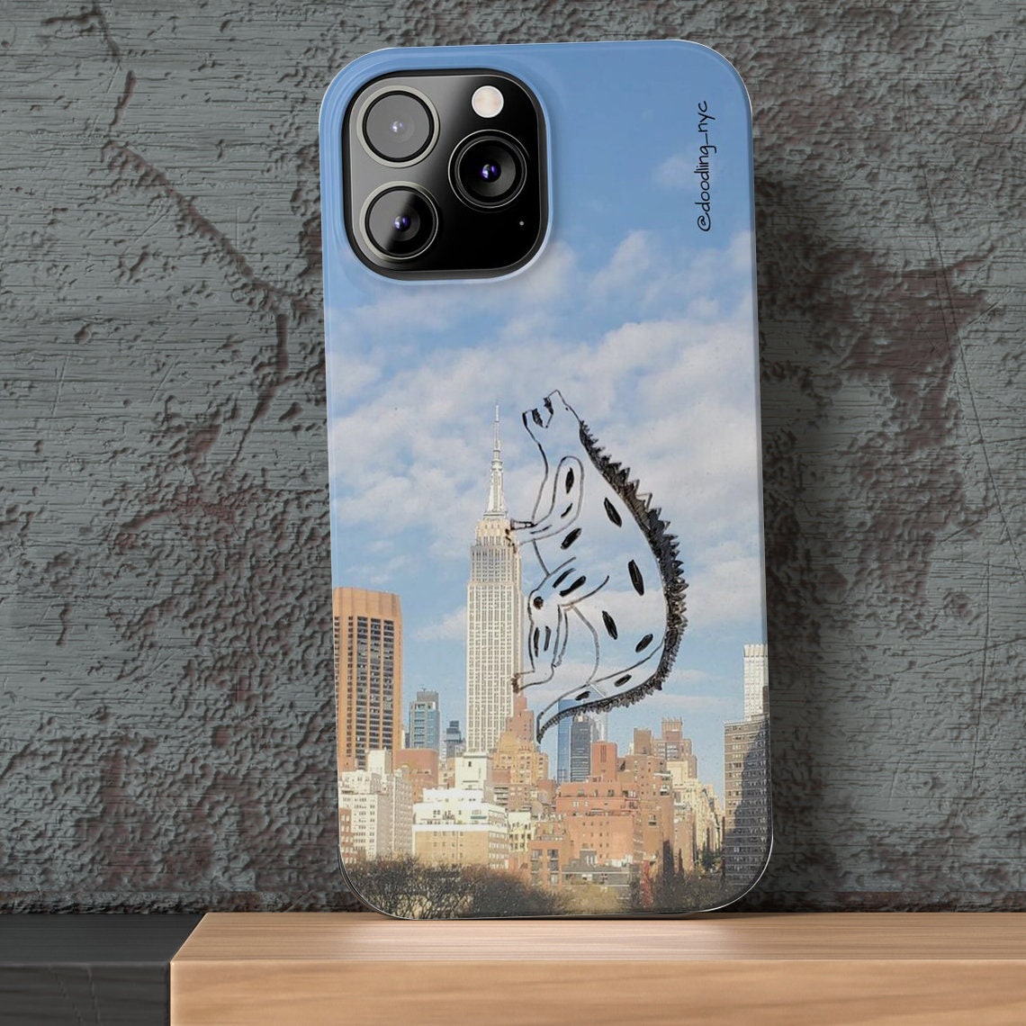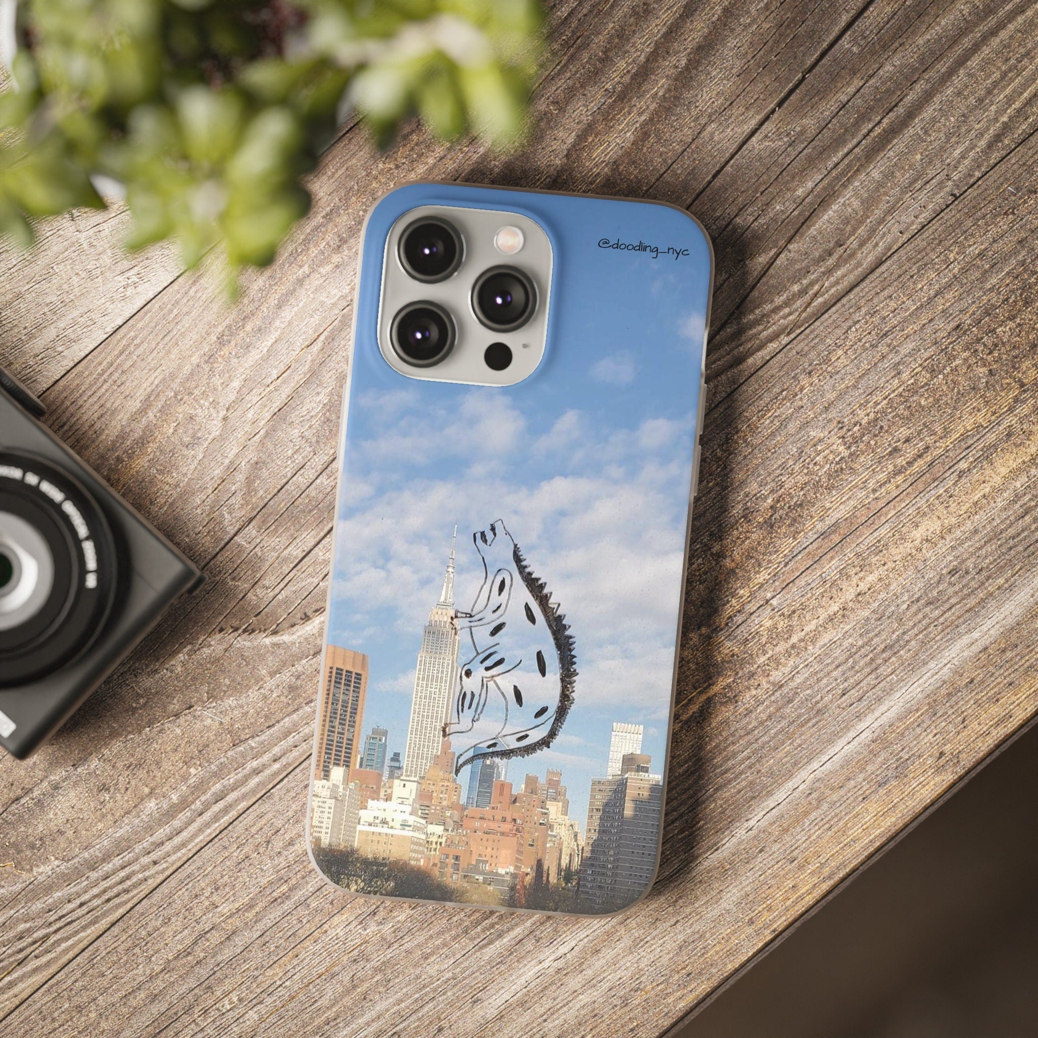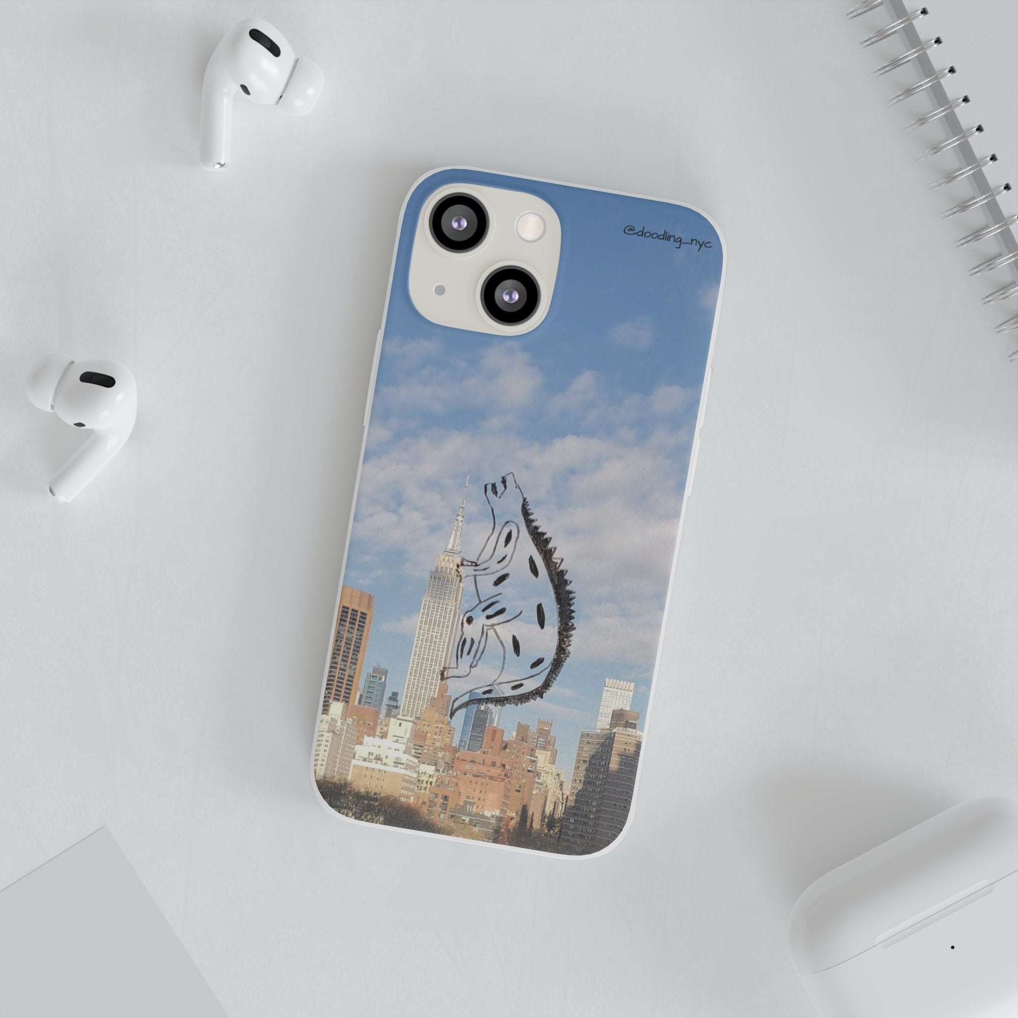 Godzilla Doodle Flexi iPhone Case, Trendy NYC Skyline Phone Case for iPhone 13 14 Mini Pro Max Plus, Cool Phone Case, Popular Right Now