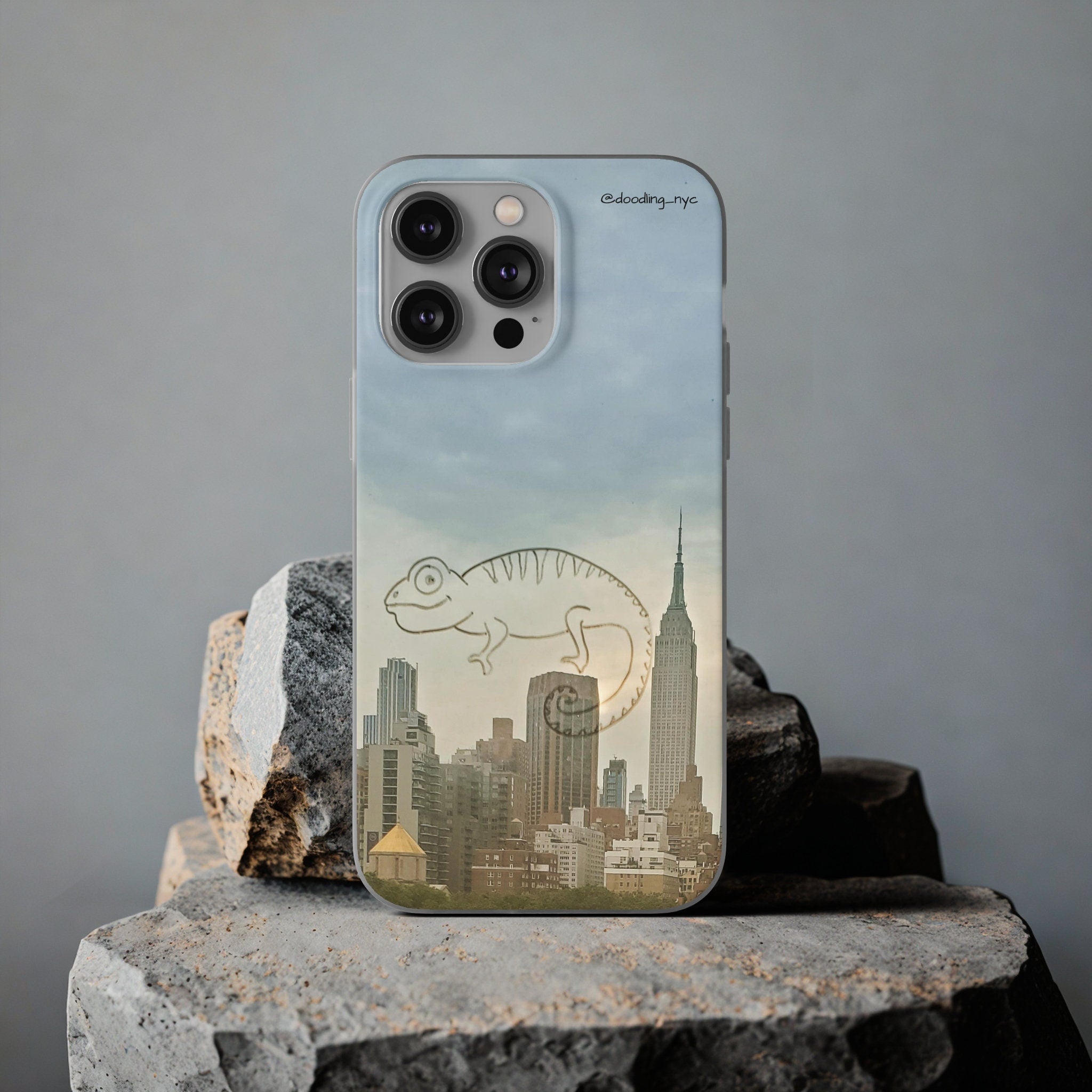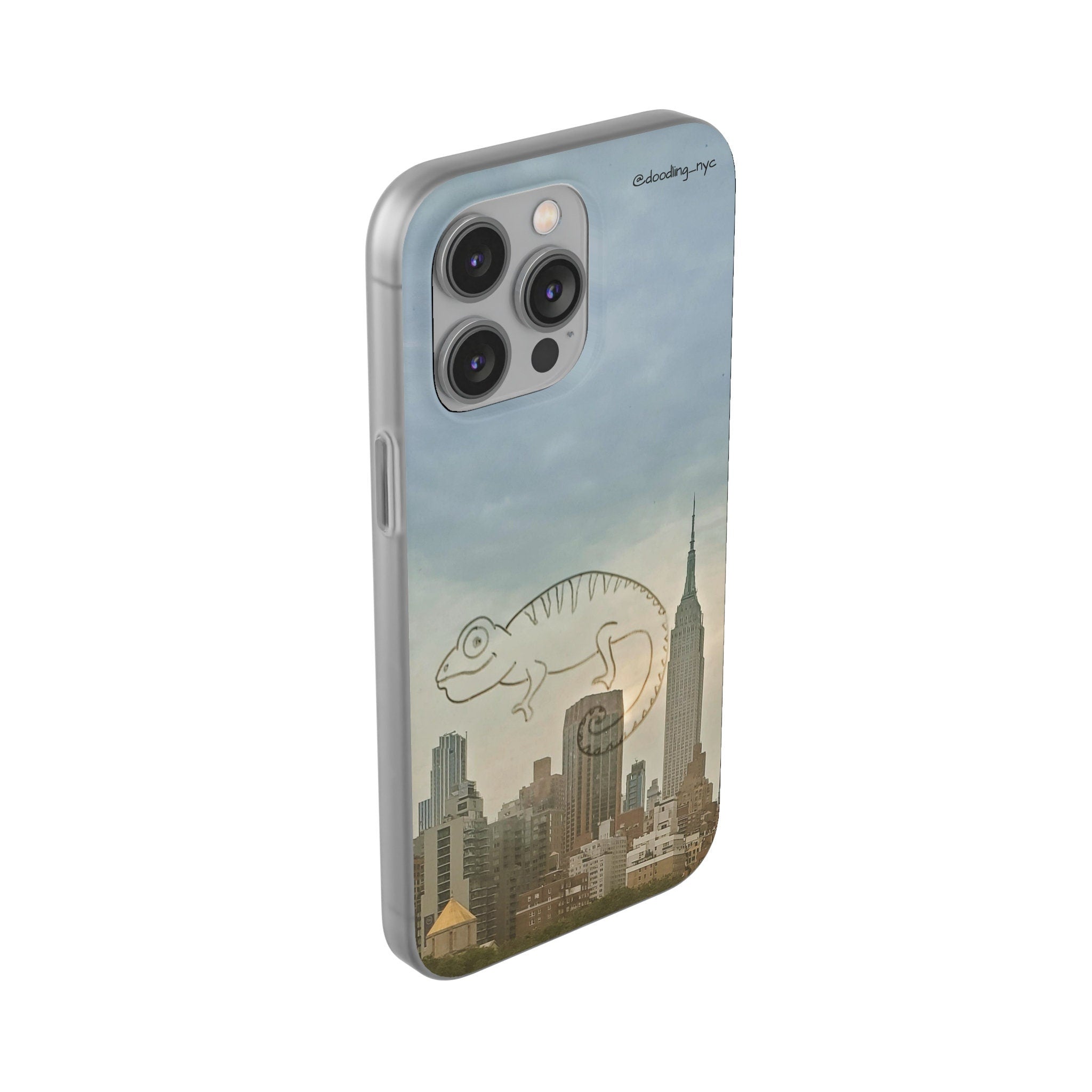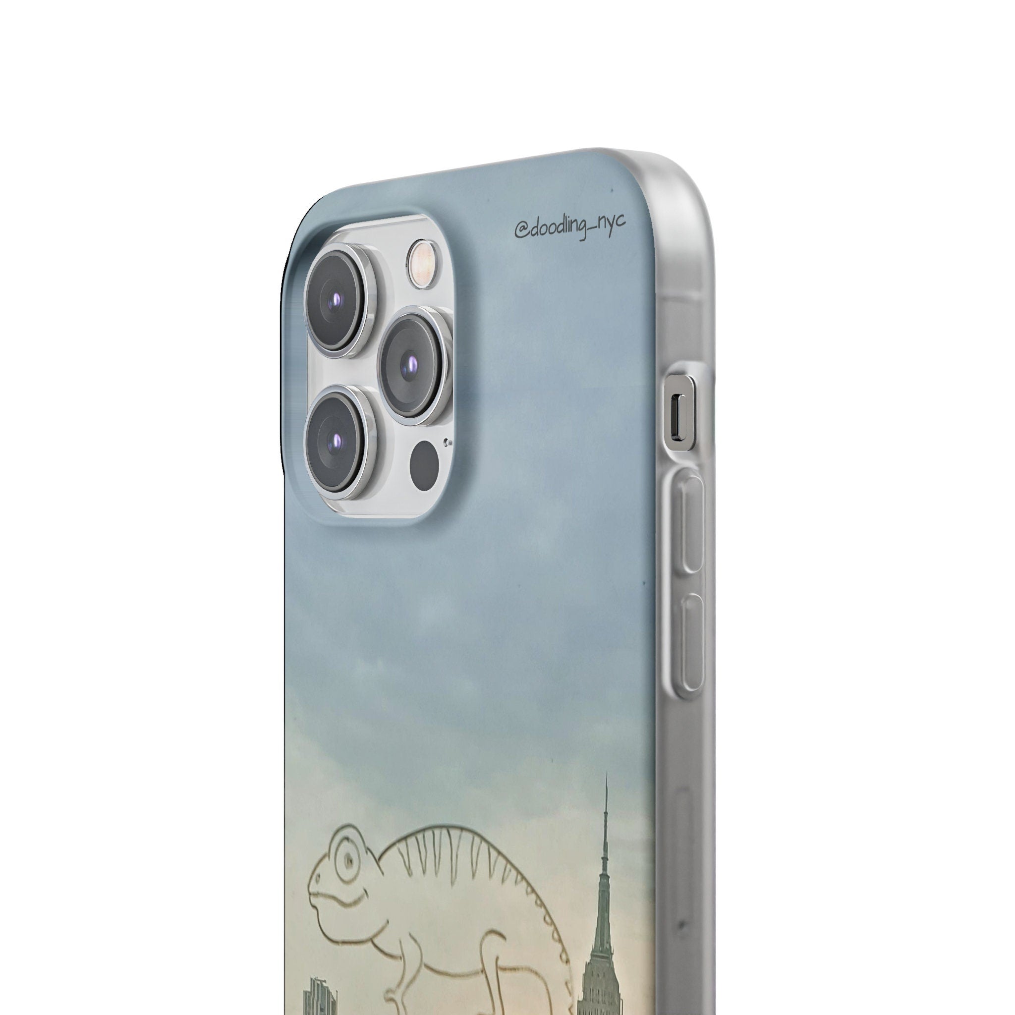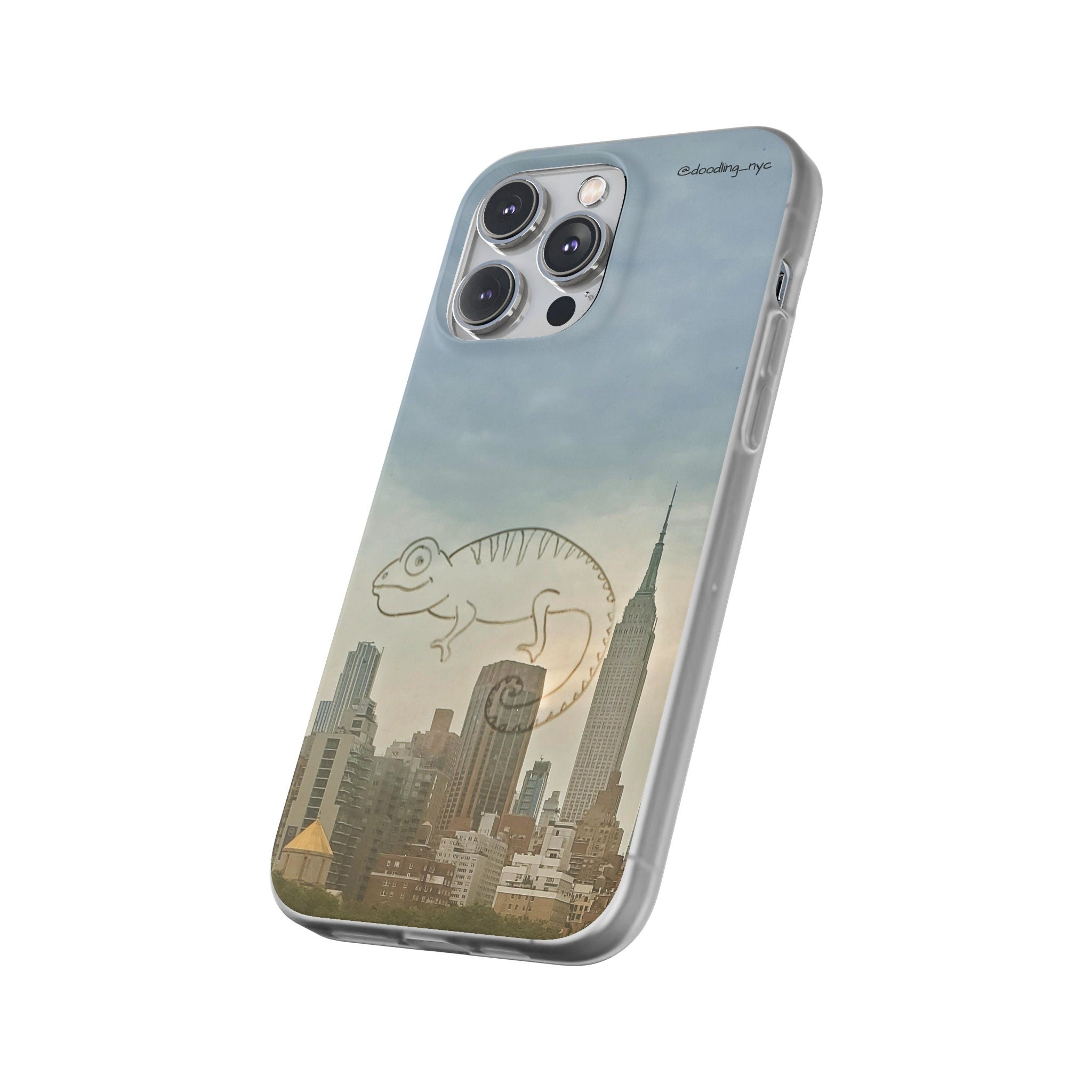 Hand Drawn Gecko Doodle Flexi iPhone Case, Stylish Trendy NYC Skyline iPhone Case Cover, Aesthetic Phone Case for iPhone 13 14 Mini Pro Max