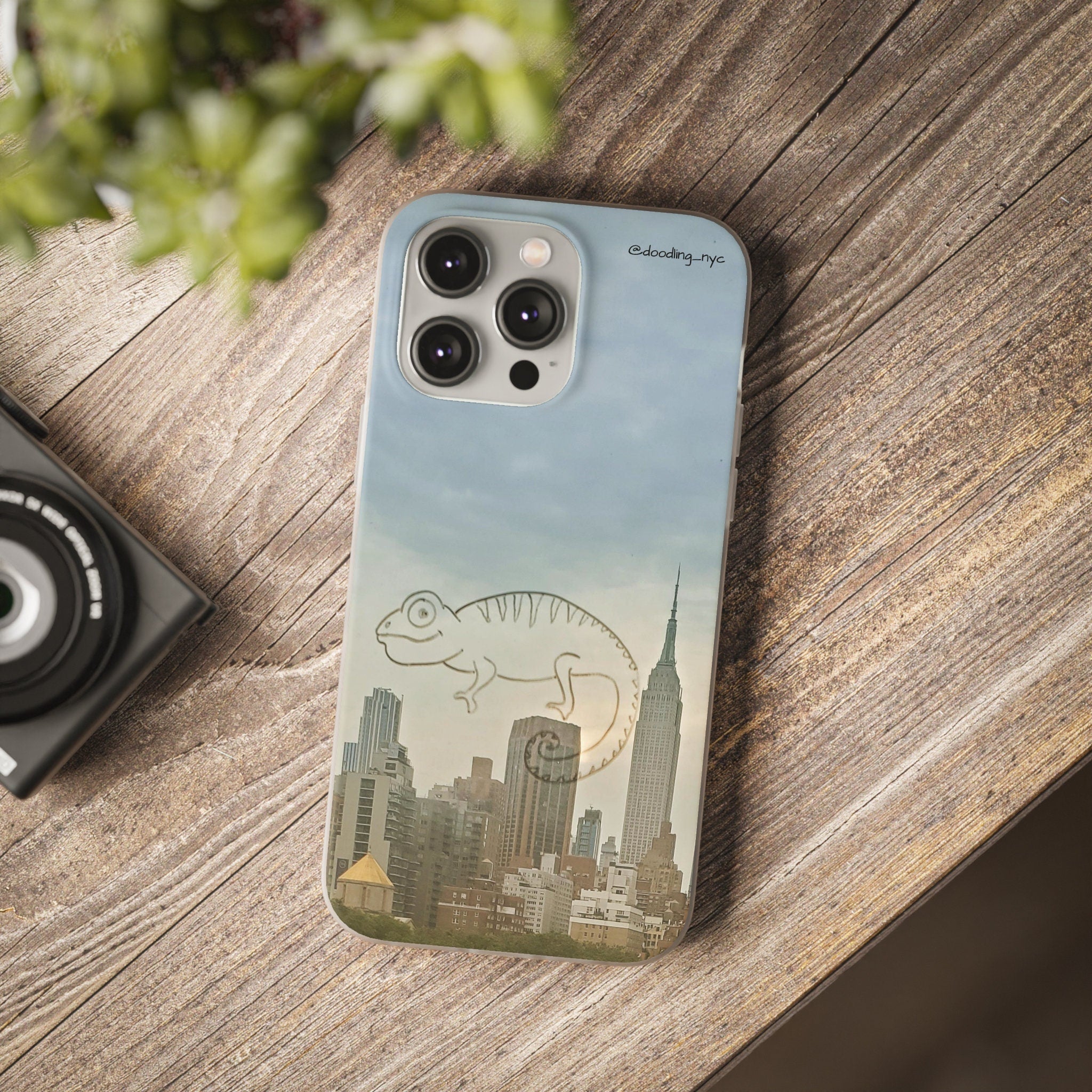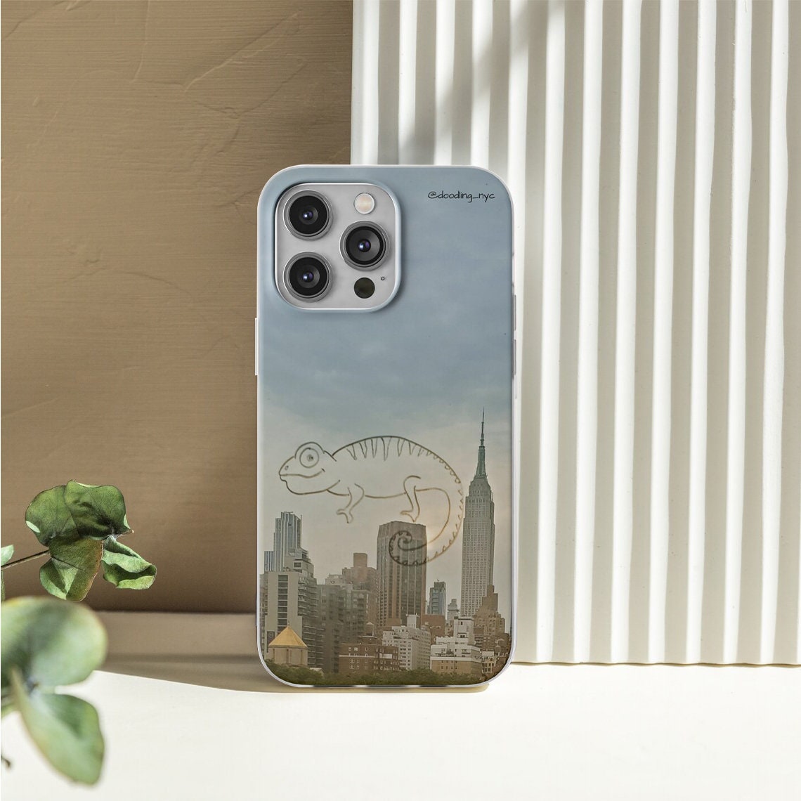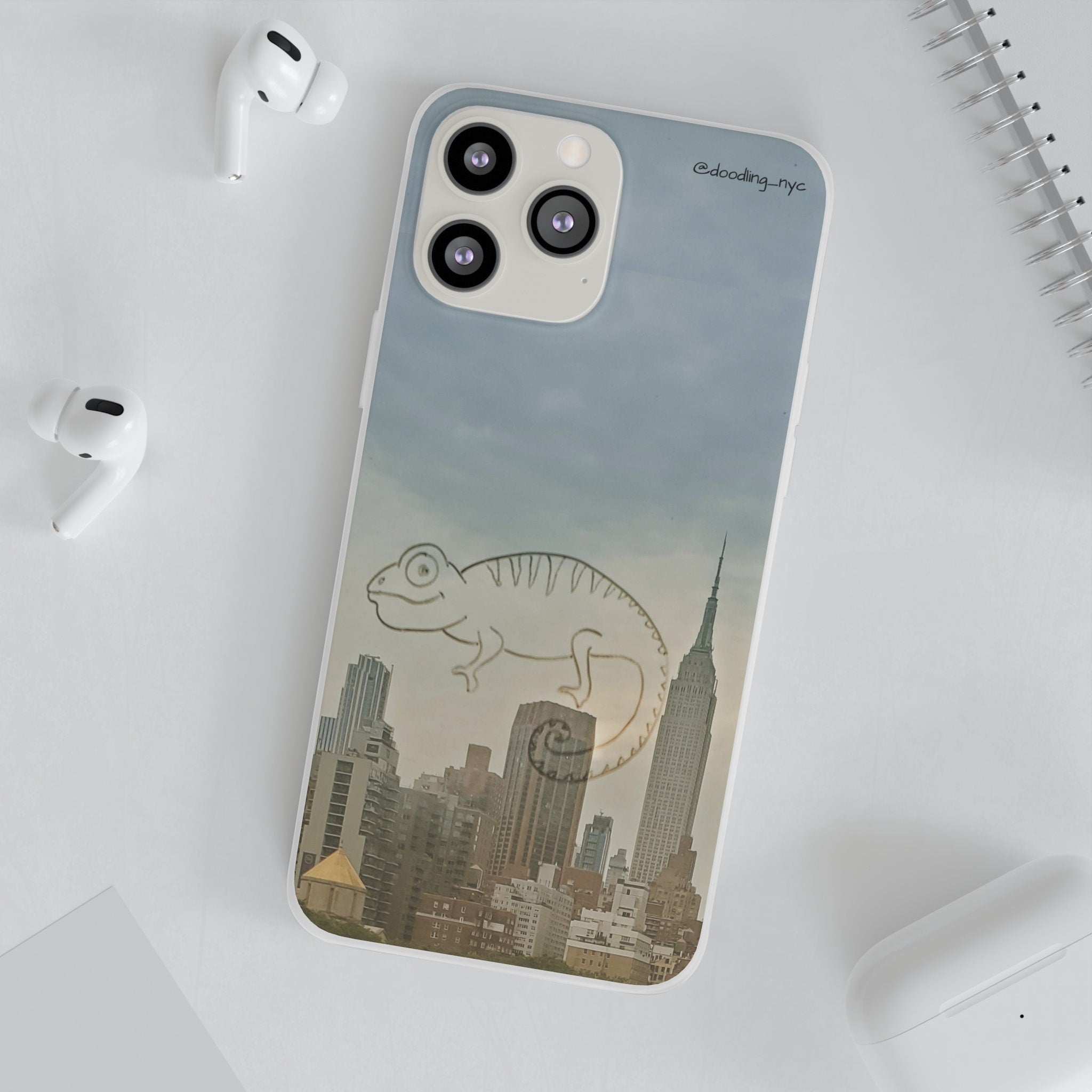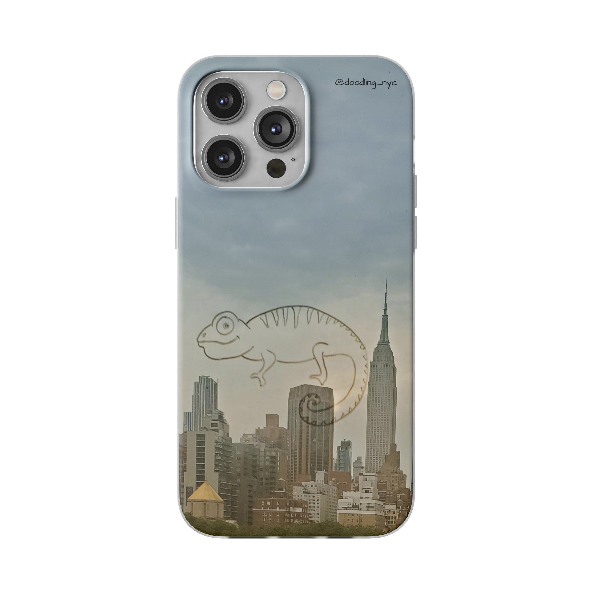 Hand Drawn Gecko Doodle Flexi iPhone Case, Stylish Trendy NYC Skyline iPhone Case Cover, Aesthetic Phone Case for iPhone 13 14 Mini Pro Max