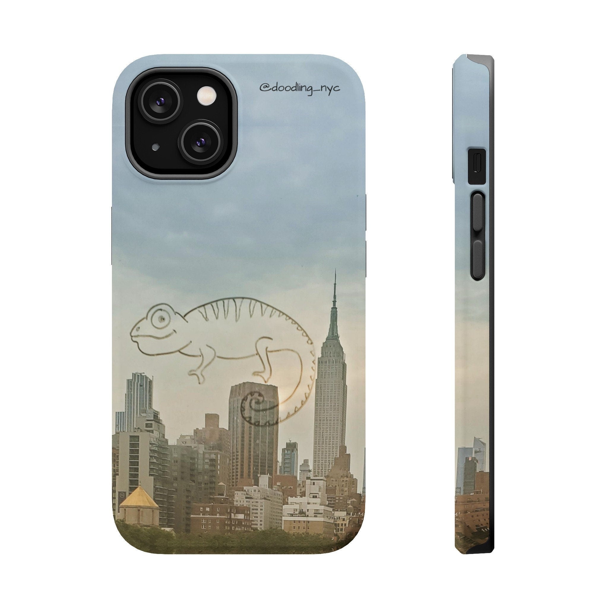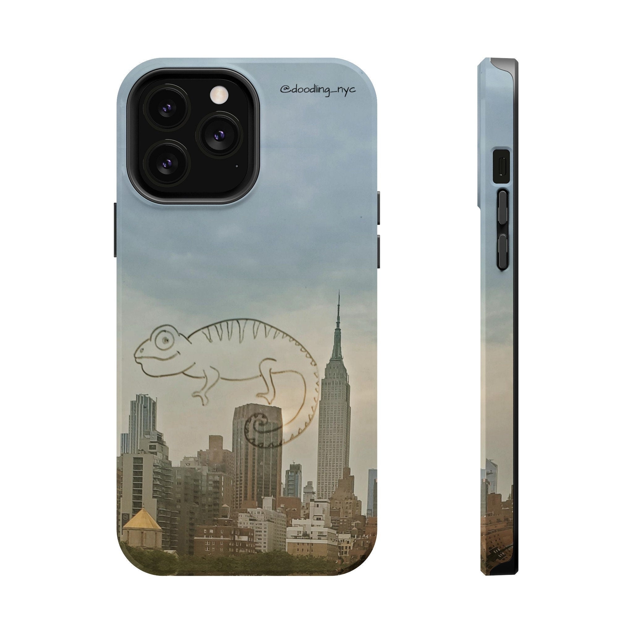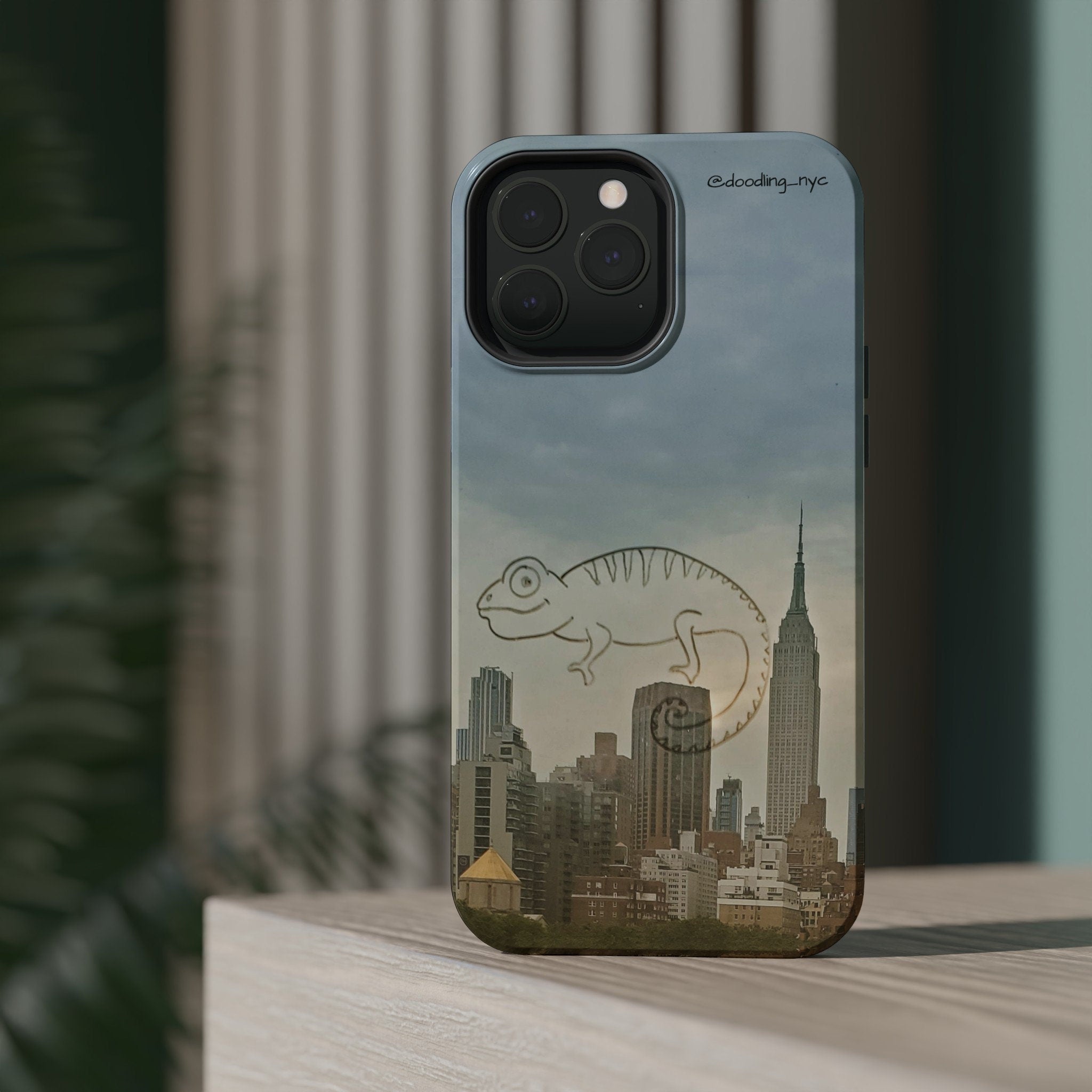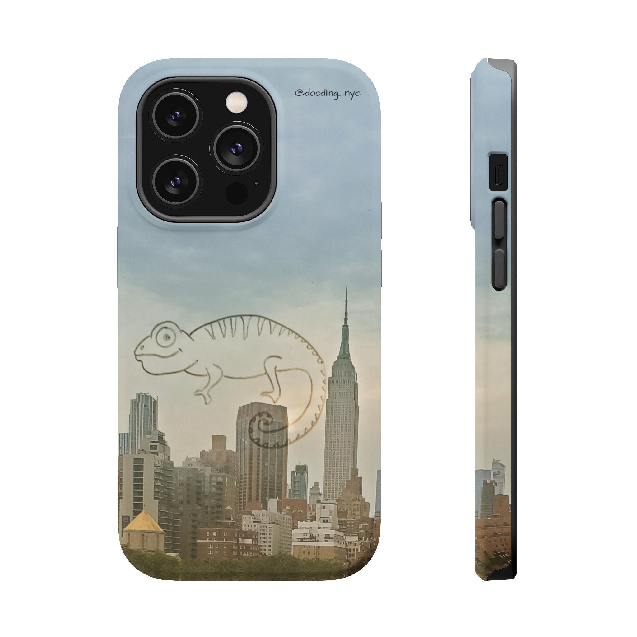 Hand Drawn Gecko Doodle Magsafe iPhone Case, Stylish Trendy NYC Skyline iPhone Cover, Aesthetic Phone Case for iPhone 13 14 Mini Pro Max