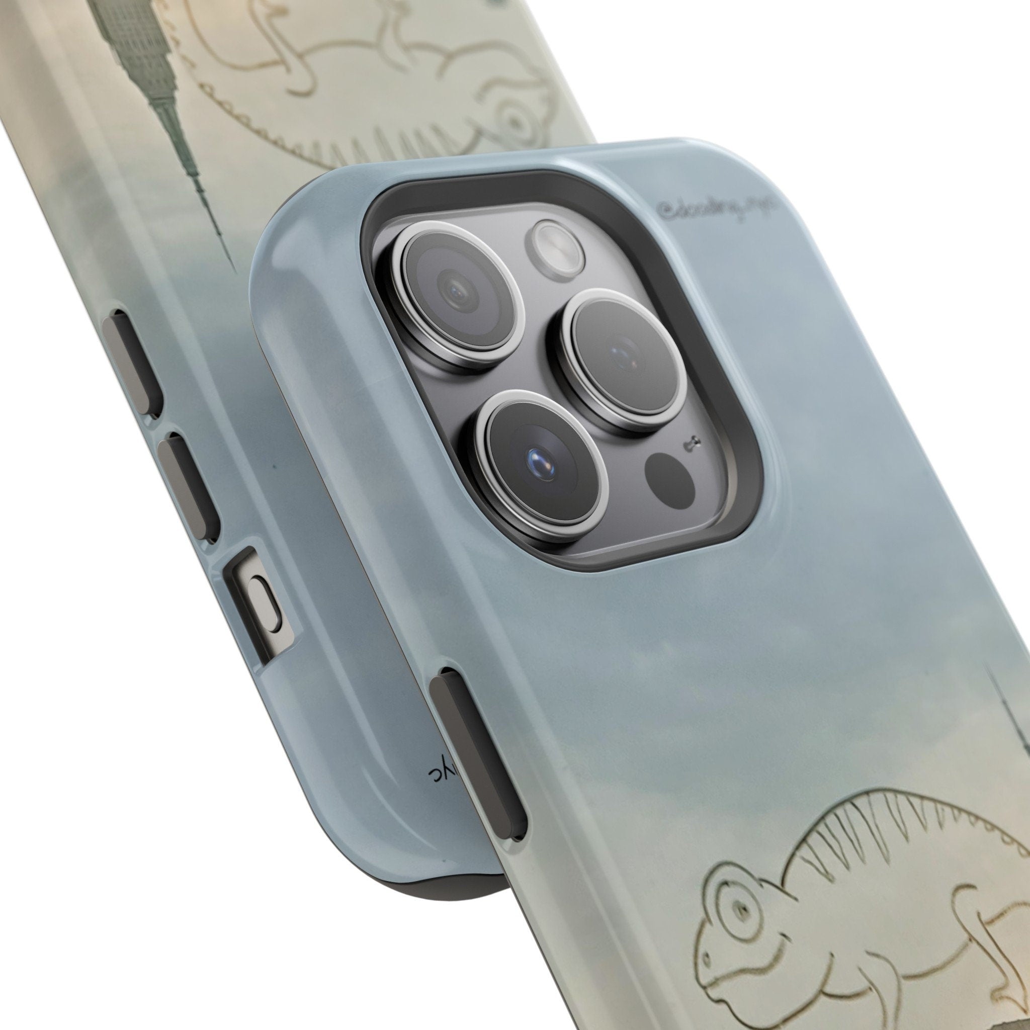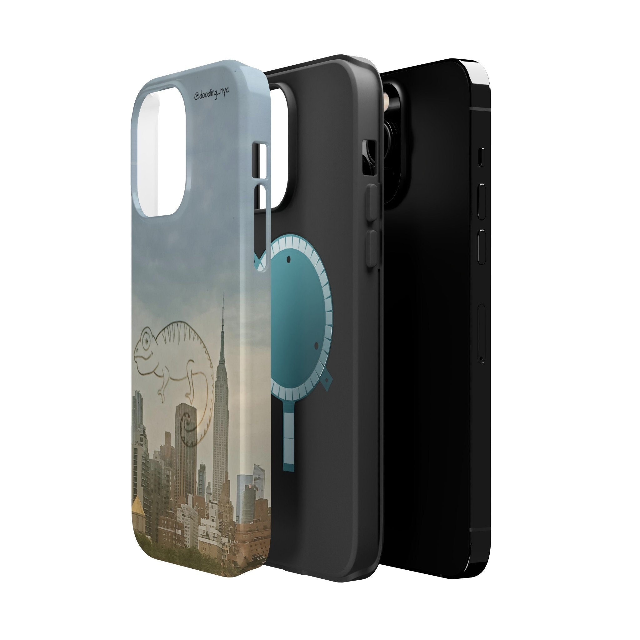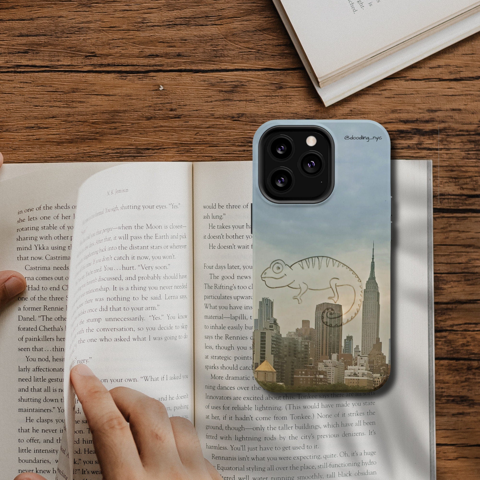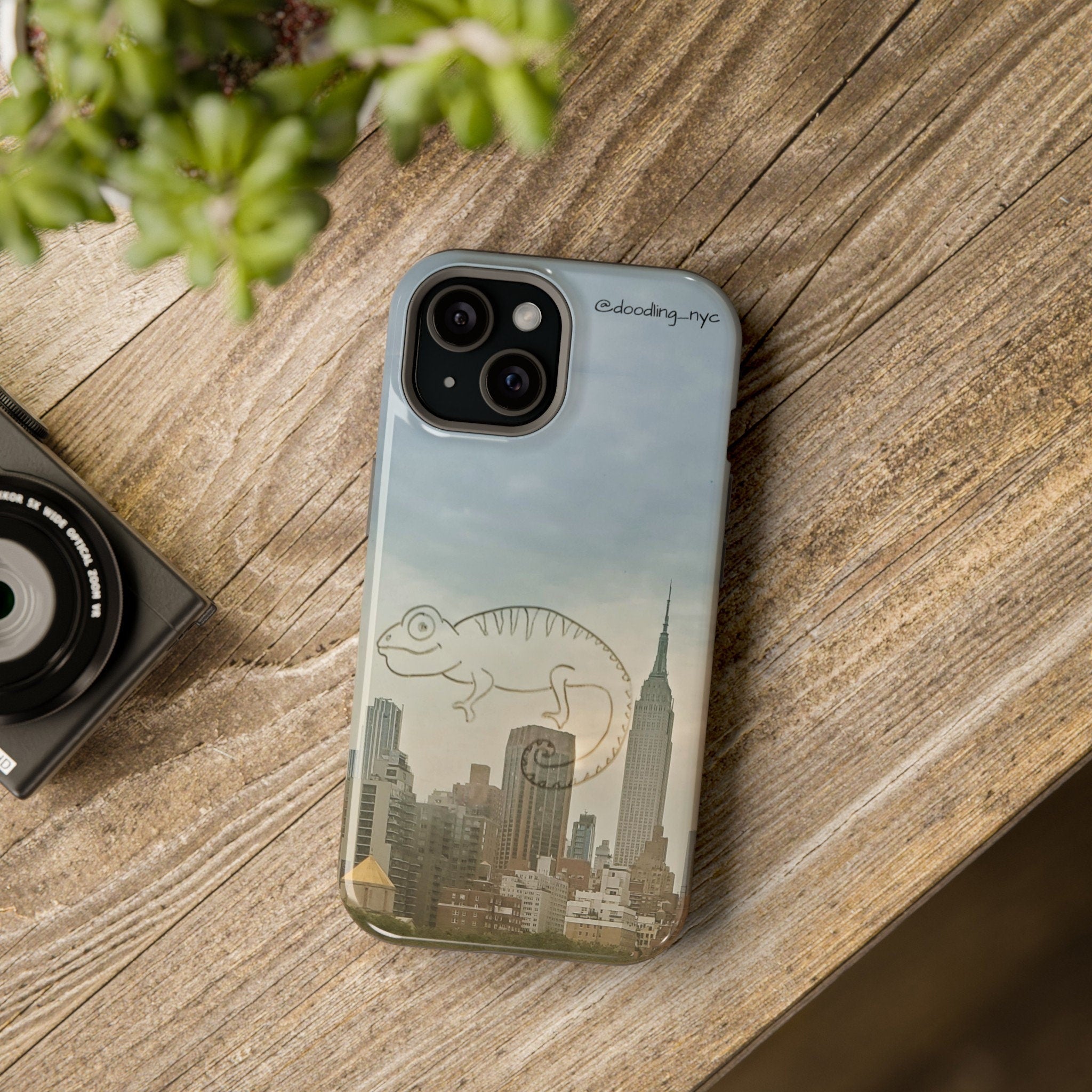 Hand Drawn Gecko Doodle Magsafe iPhone Case, Stylish Trendy NYC Skyline iPhone Cover, Aesthetic Phone Case for iPhone 13 14 Mini Pro Max