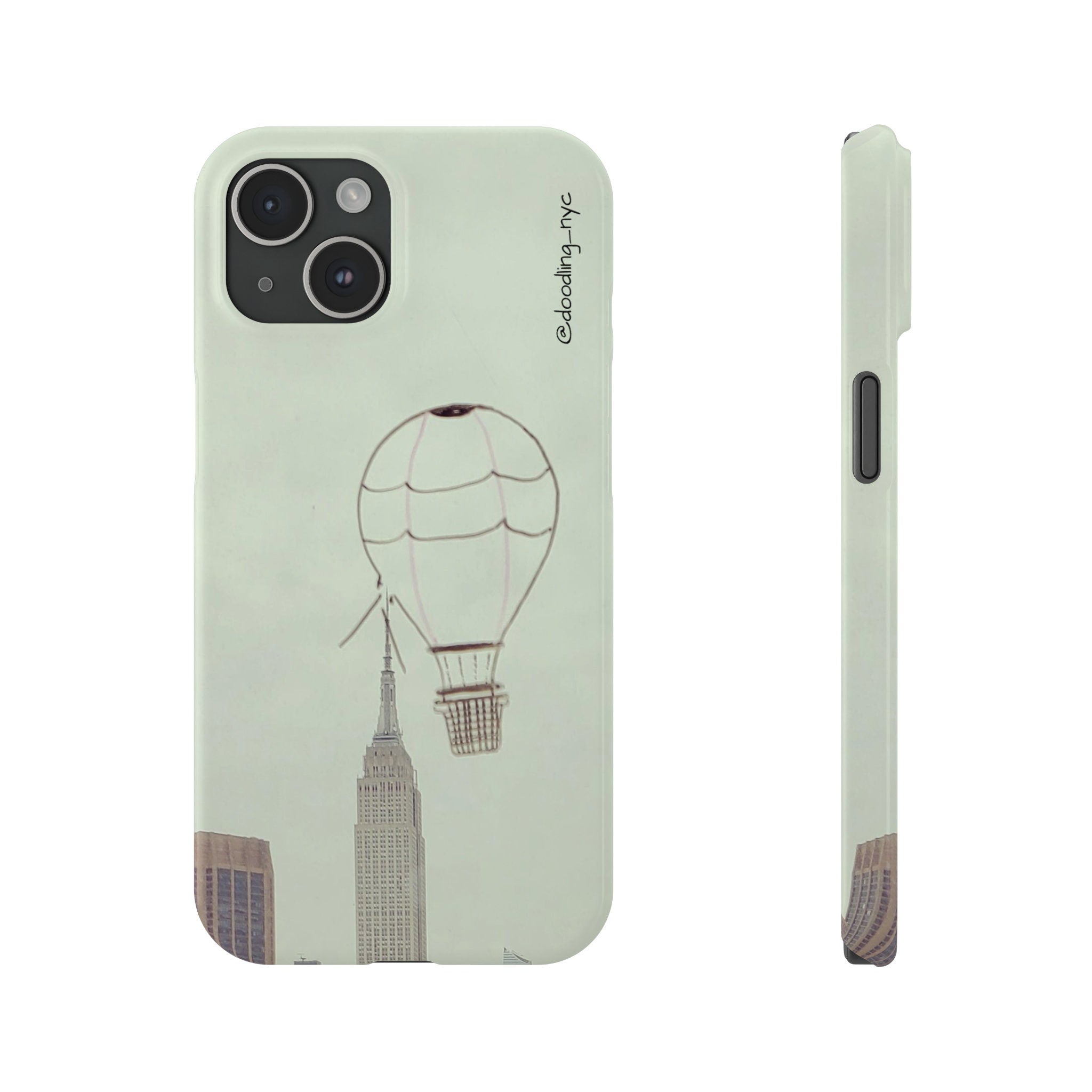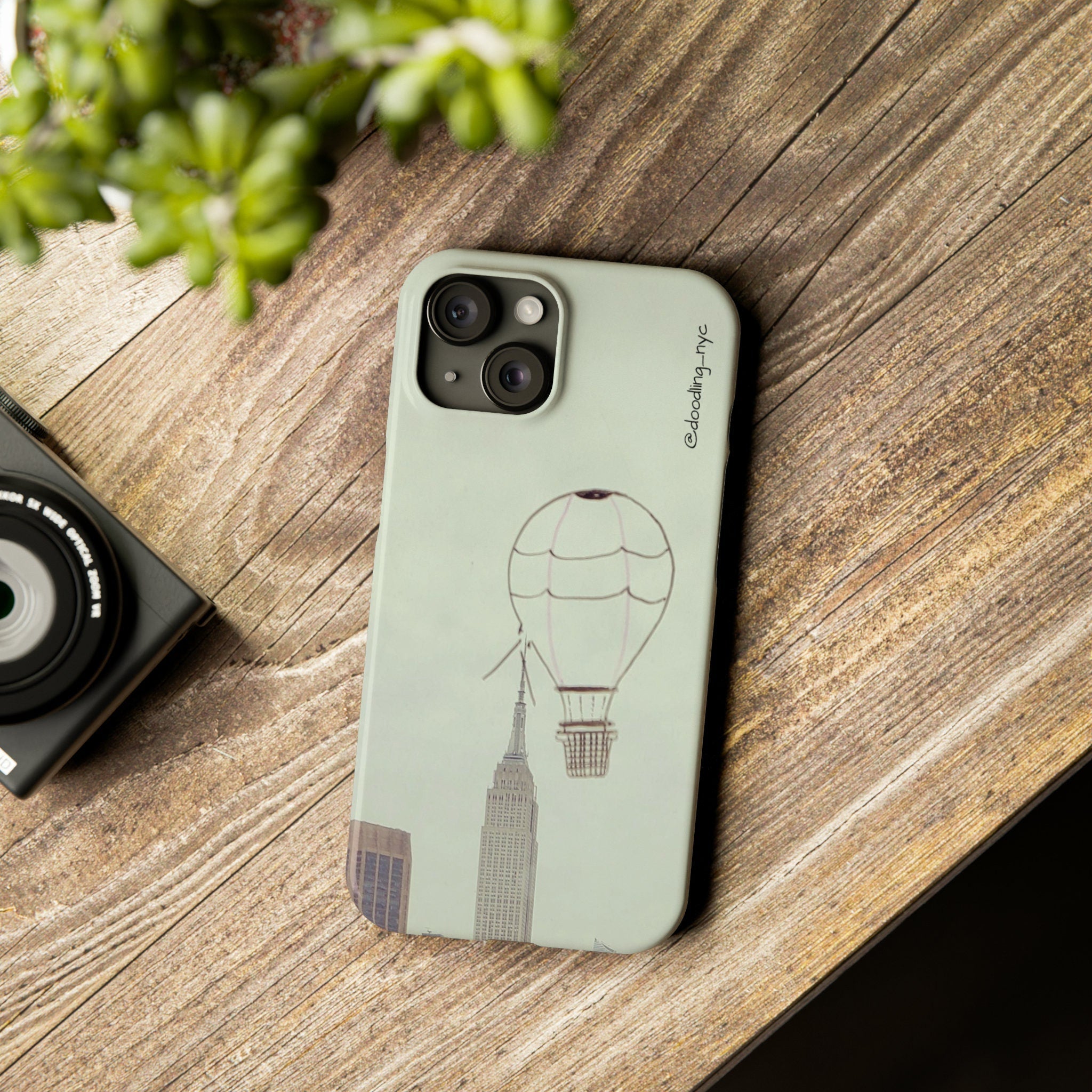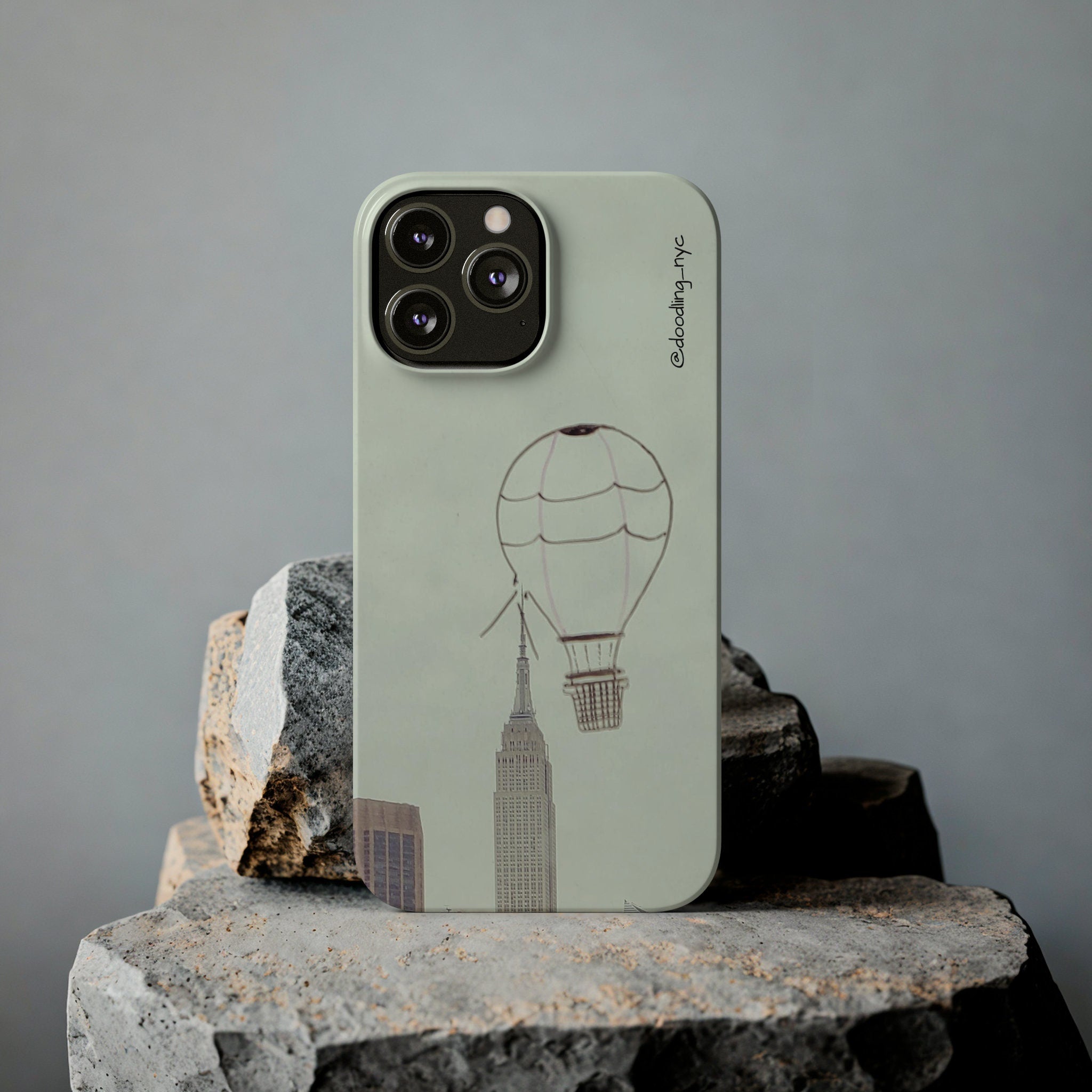 Hot Air Balloon Doodle Slim Phone Case, Super Slim Trendy USA Nyc Skyline iPhone Case Cover, Nyc Travel Gift, Cool Phone Case, USA Gifts