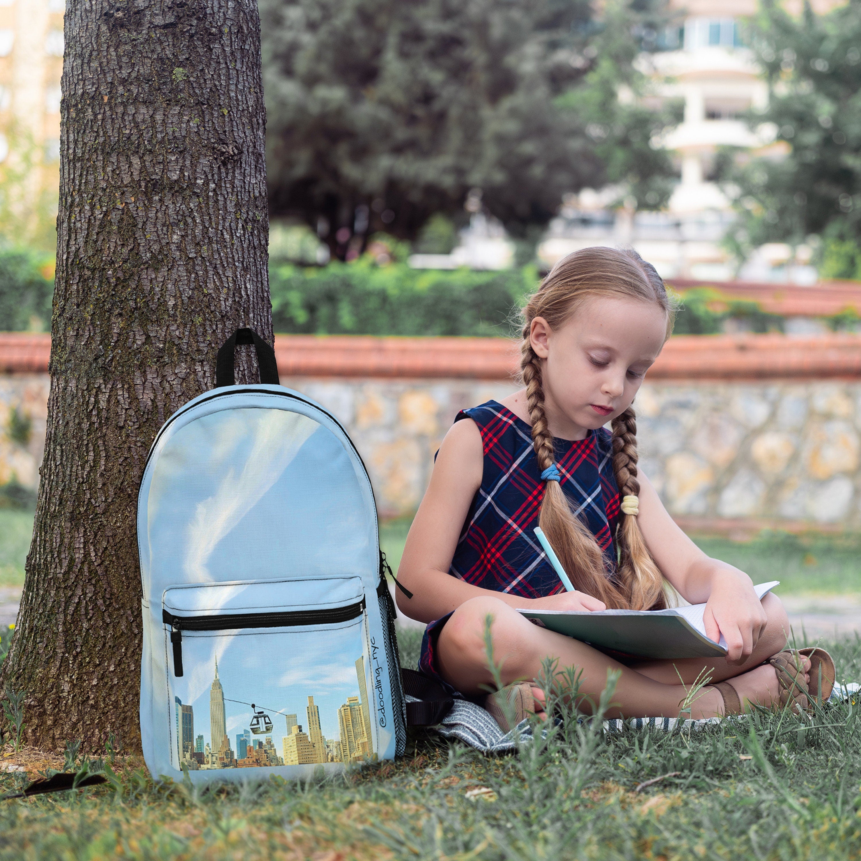 NYC Skyline Back pack with gondola doodle, back to school in style, trendy backpack for kids, children's bag, fun bag for children