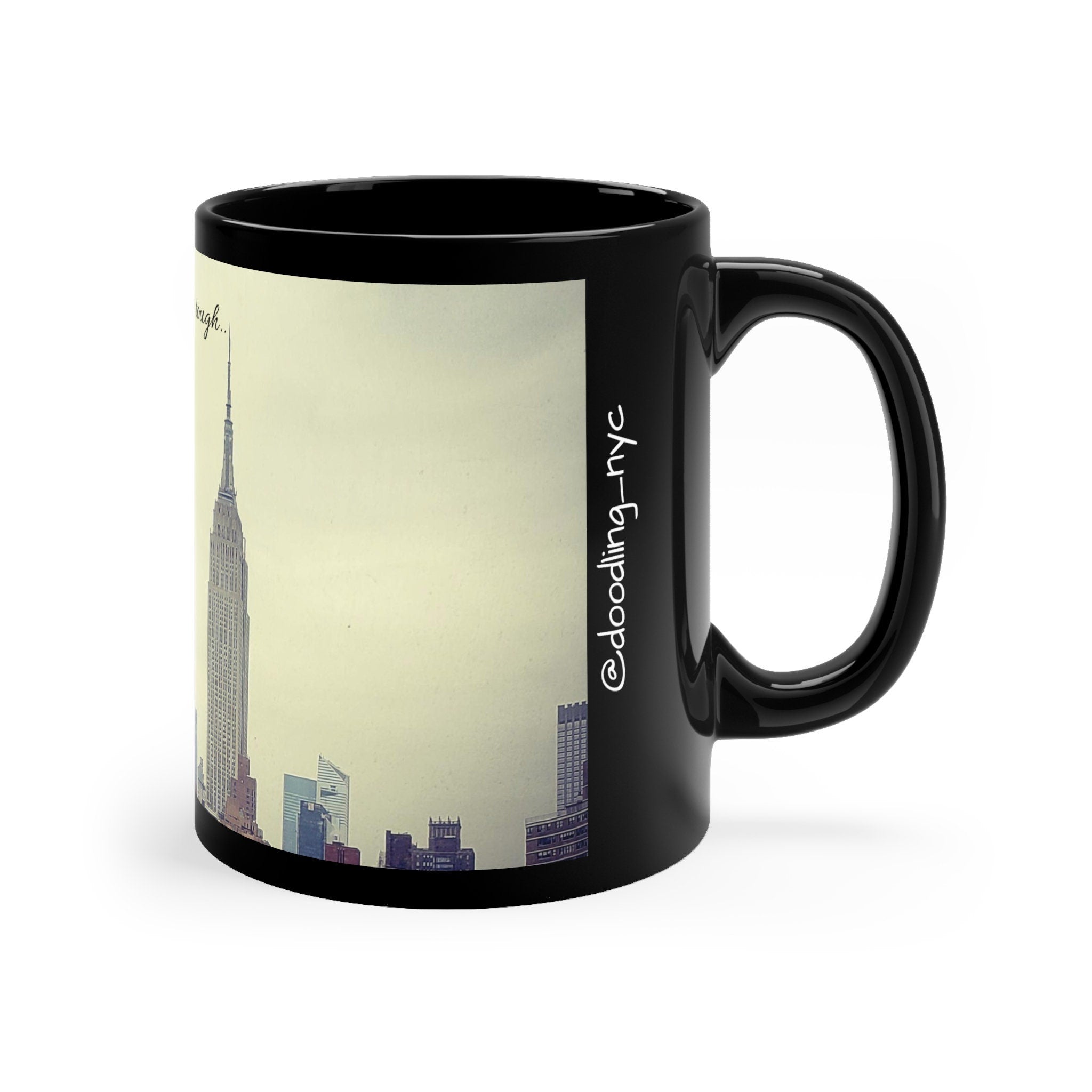 NYC Skyline Big Ben Doodle Mug, Artsy USA State London Coffee Mug, Hot Cocoa Latte Mug, New York City Travel Mug, Black Glossy Mug, NYC Gift