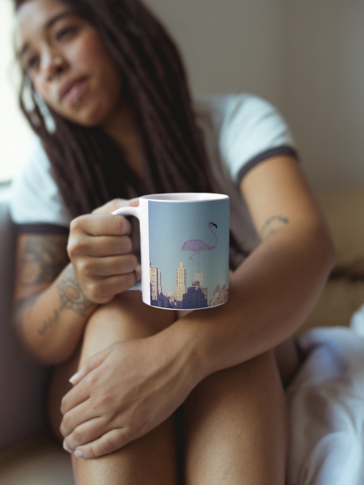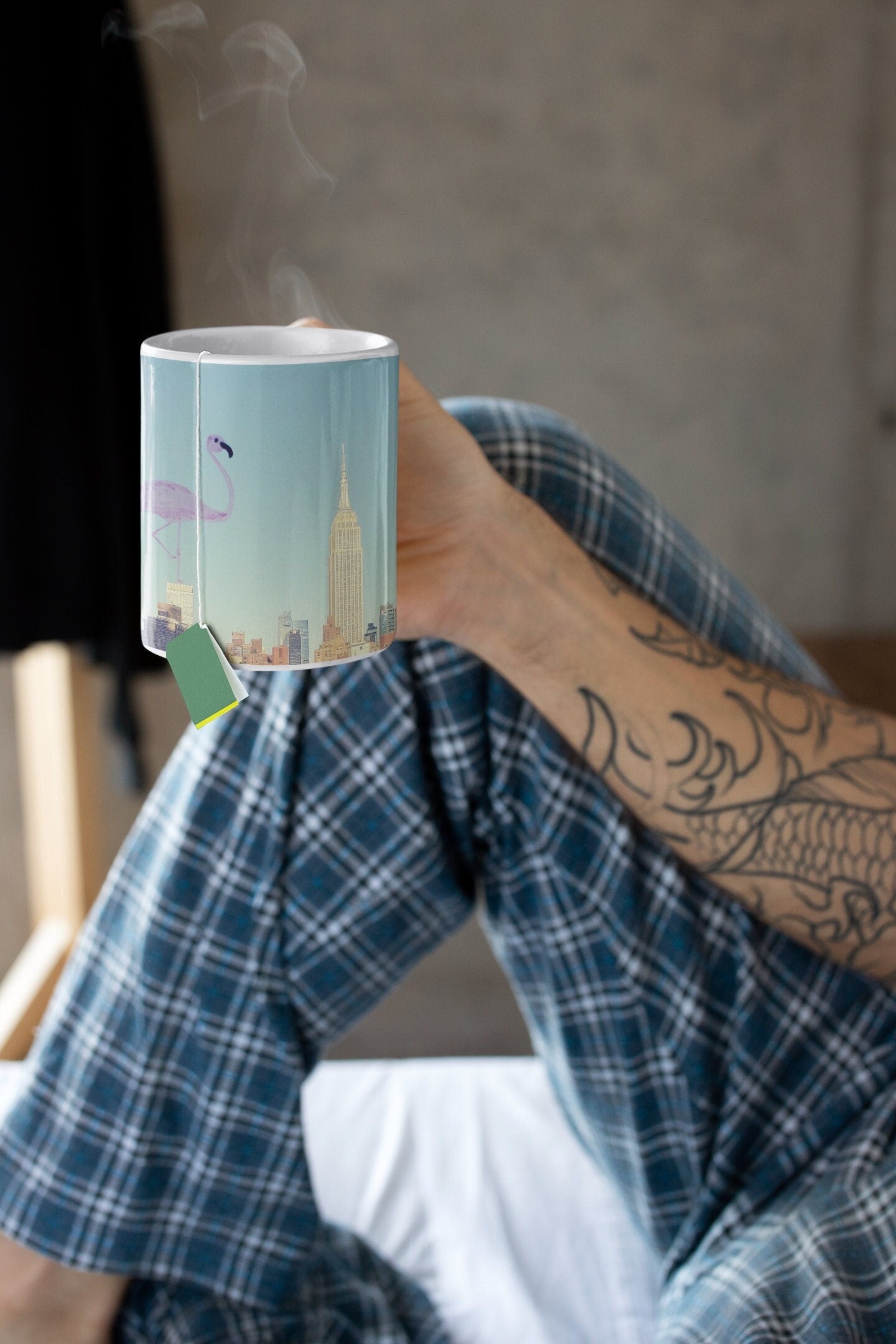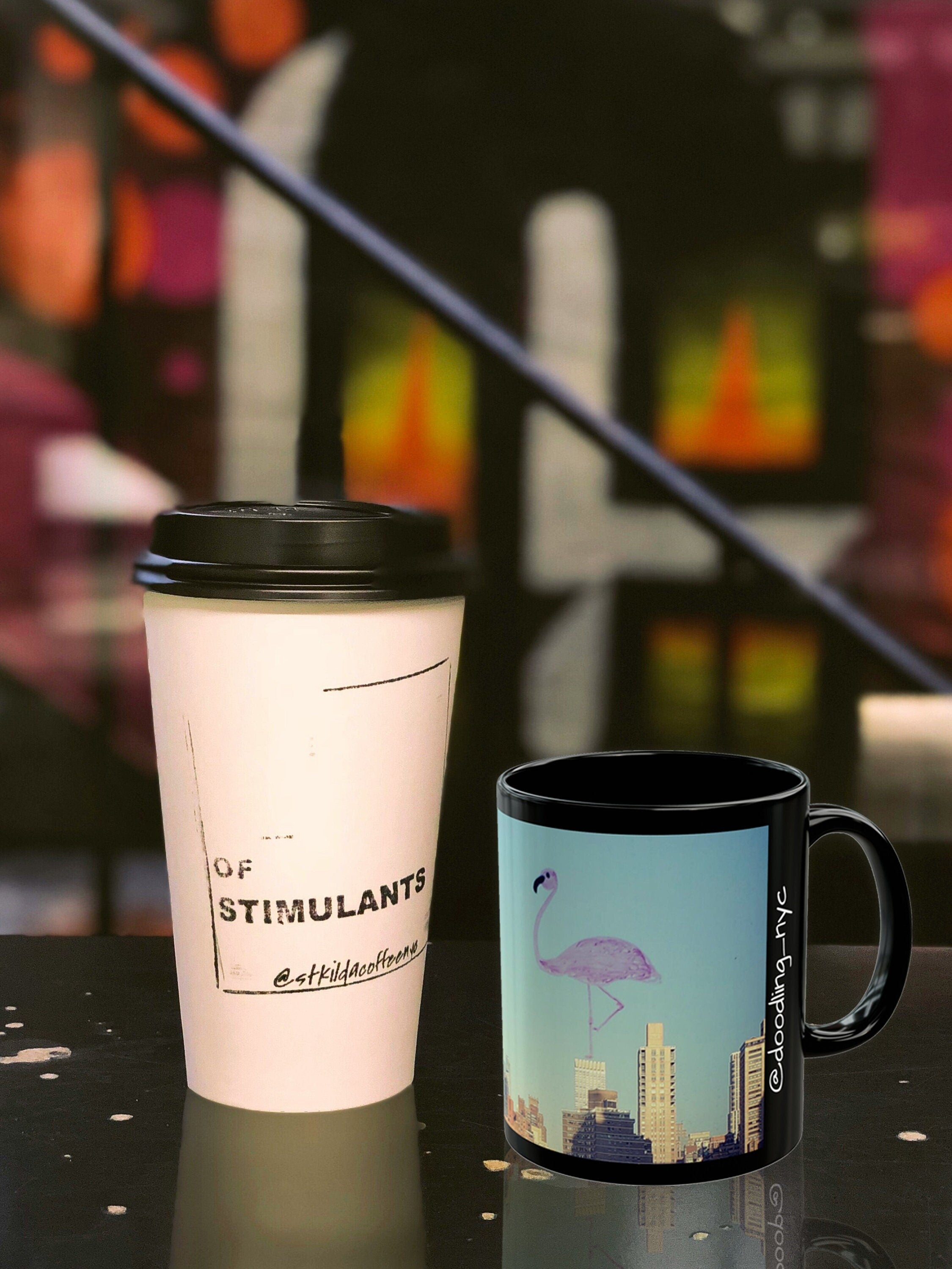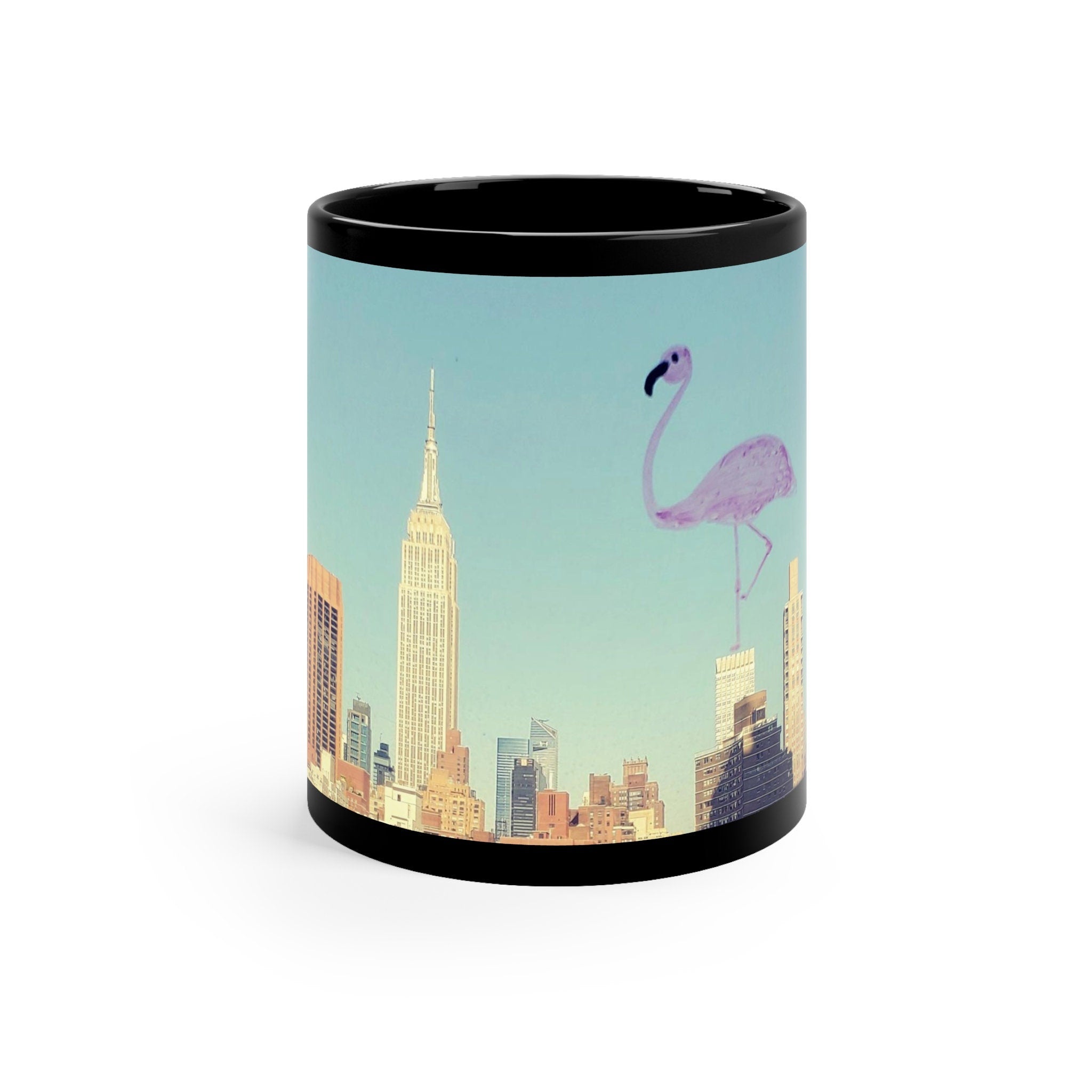 NYC Skyline Flamingo Doodle Mug, USA State Travel Coffee Mug, nyc Flamingo Lover Mug, Aesthetic Artsy Glossy Ceramic Mug, USA Gifts