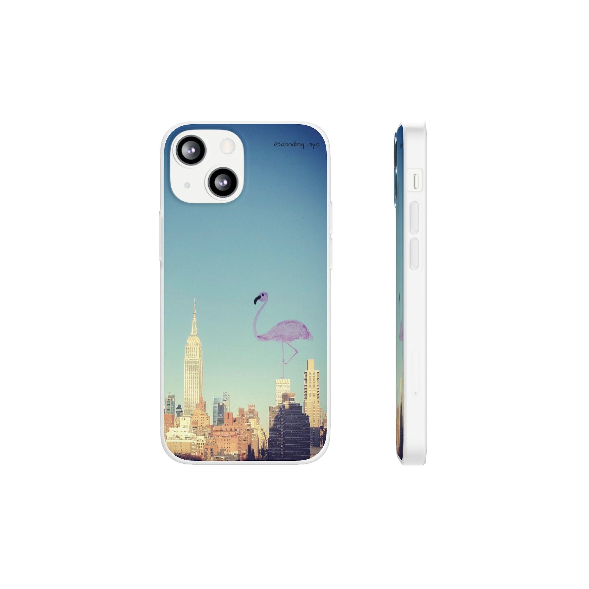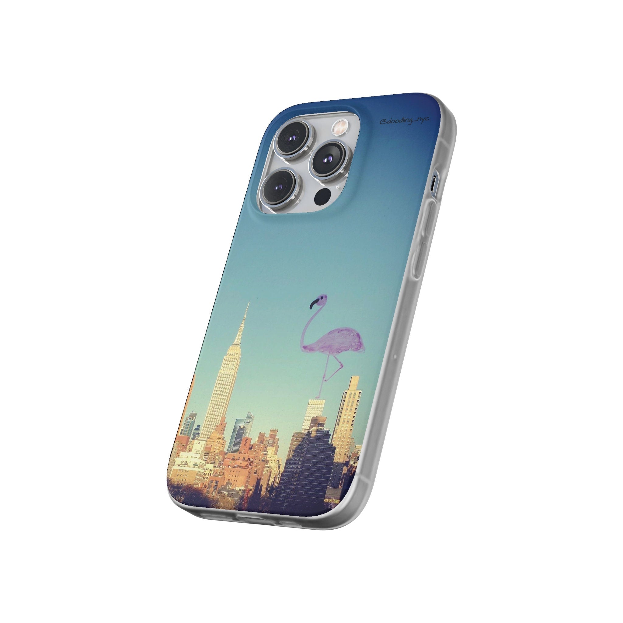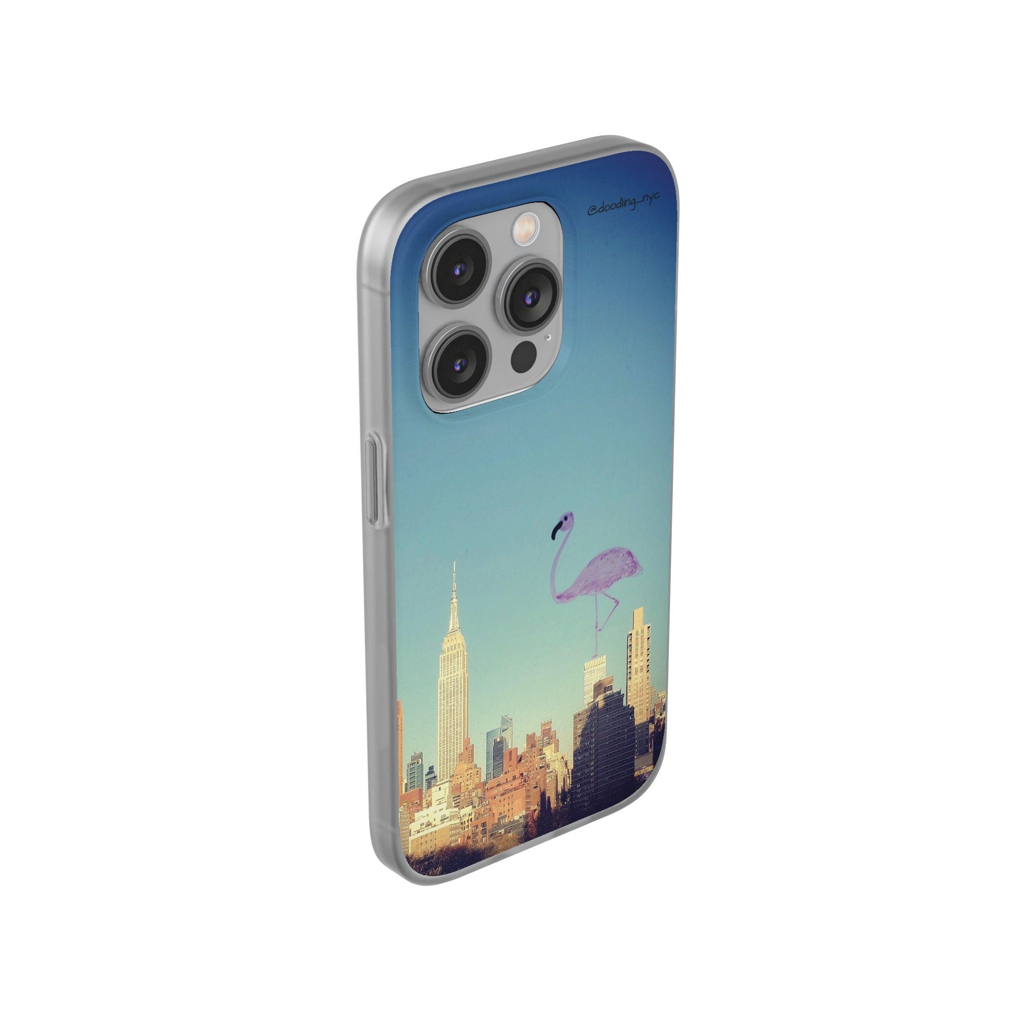 Pink Flamingo Flexi iPhone Case, Artsy Aesthetic NYC Skyline Cityscape Phone Case Cover for iPhone 13 14 Mini Pro Max Plus, NYC Gifts