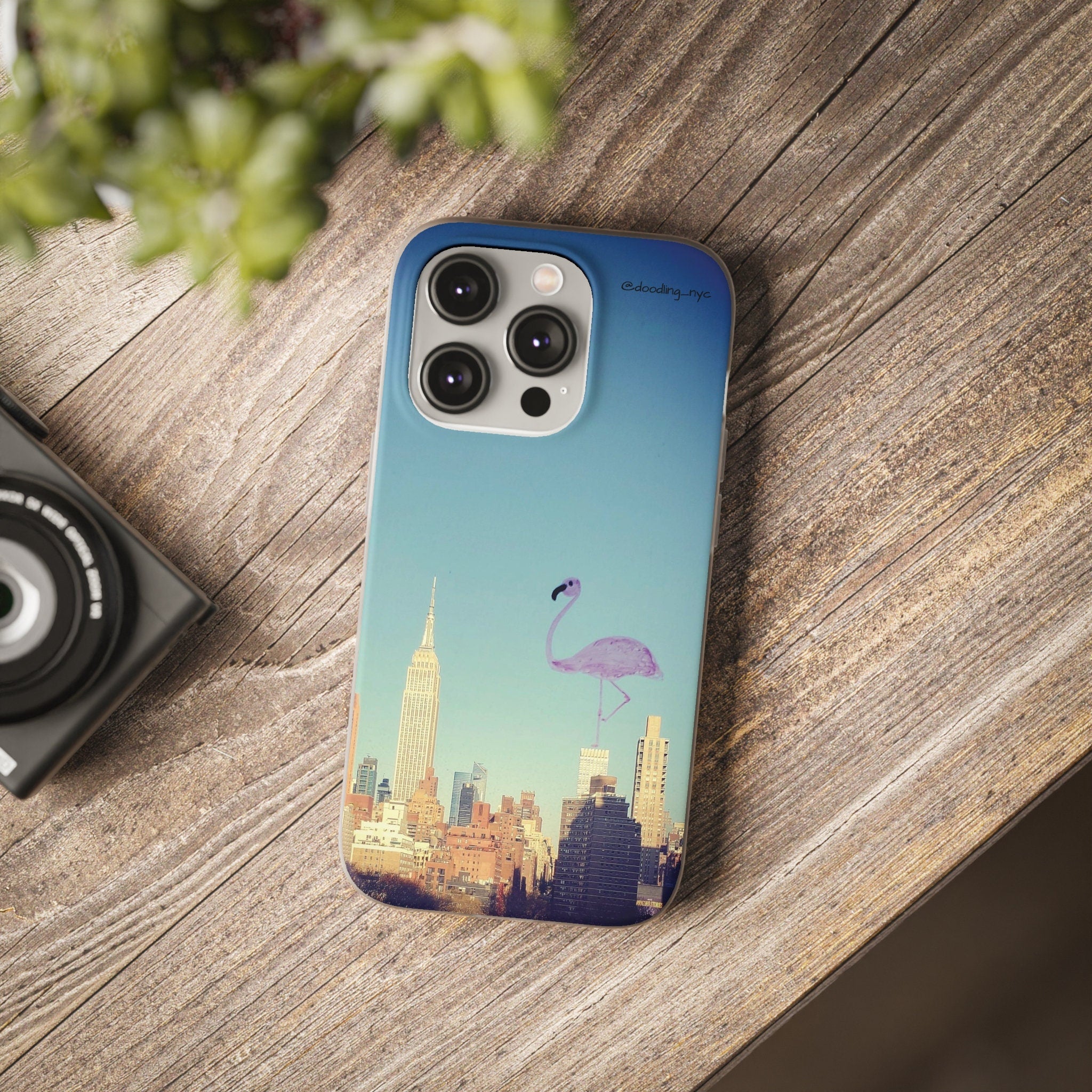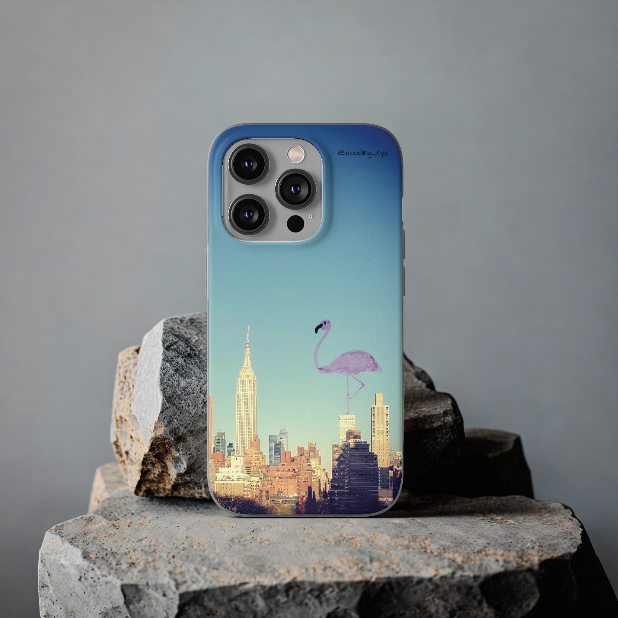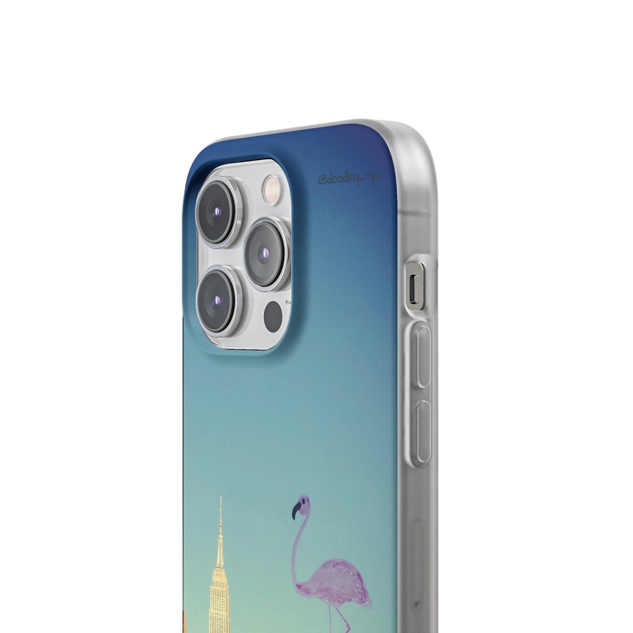 Pink Flamingo Flexi iPhone Case, Artsy Aesthetic NYC Skyline Cityscape Phone Case Cover for iPhone 13 14 Mini Pro Max Plus, NYC Gifts