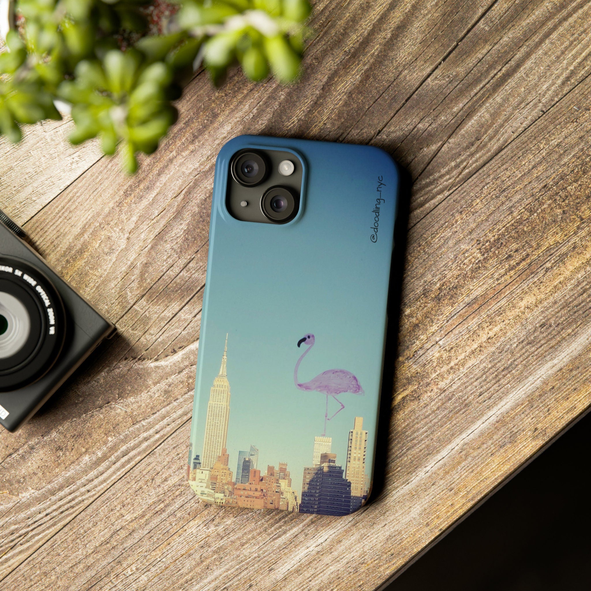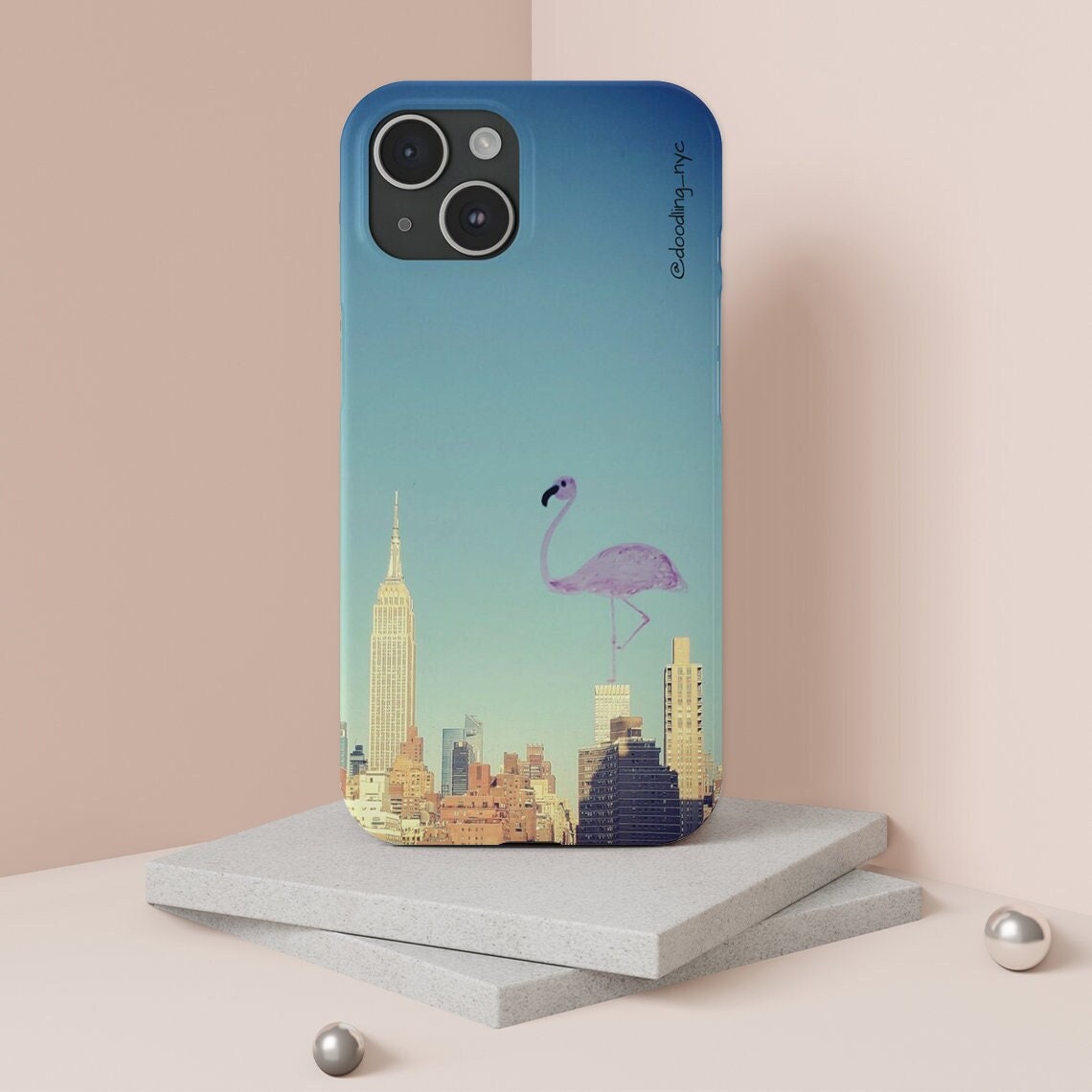 Pink Flamingo Hard Phone Case, Trendy Artsy NYC Skyline Phone Case Cover for iPhone 13 14 Mini Pro Max Plus, Unique Super Slim Phone Case
