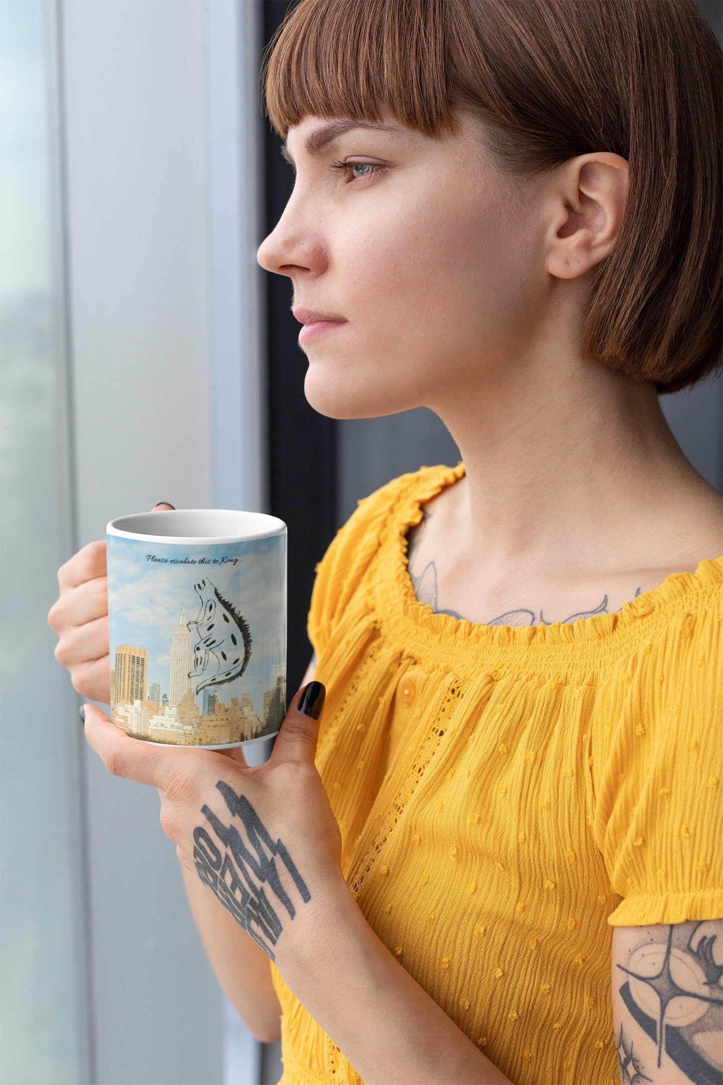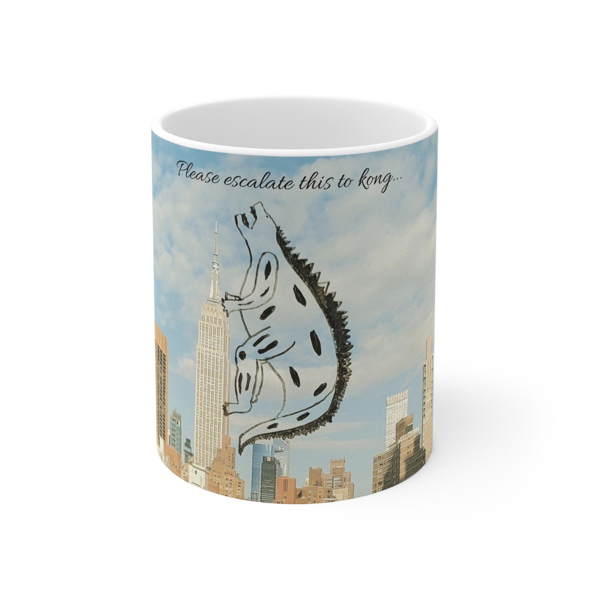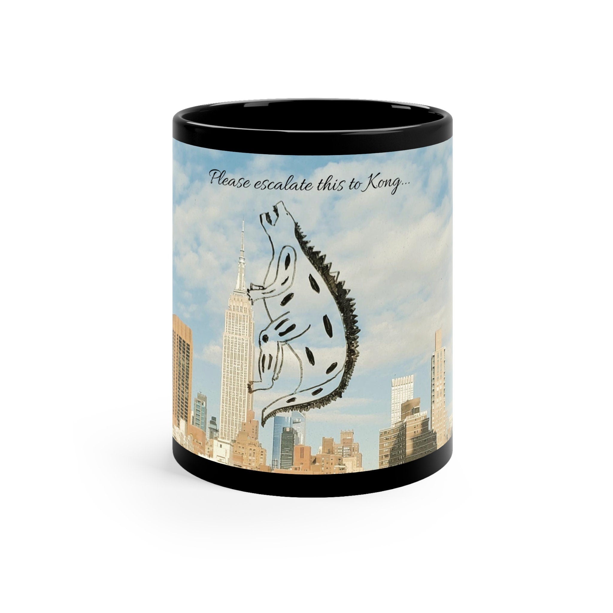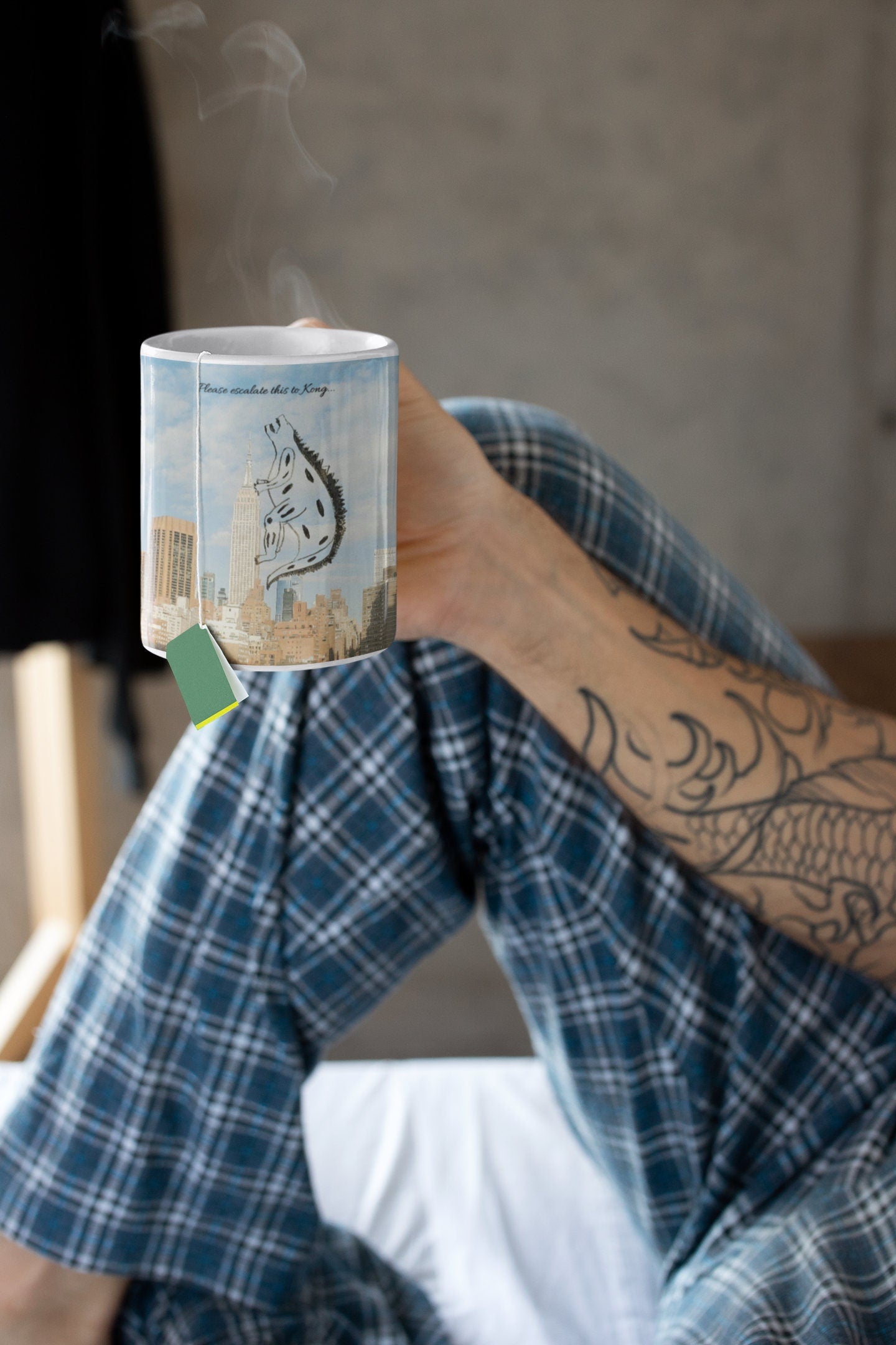 Quirky Godzilla Doodle Coffee Mug, USA NYC State Skyline Artsy Kong Mug, Unique Usa Travel Mug, Nyc Lover Gift, Office Coworker Gift