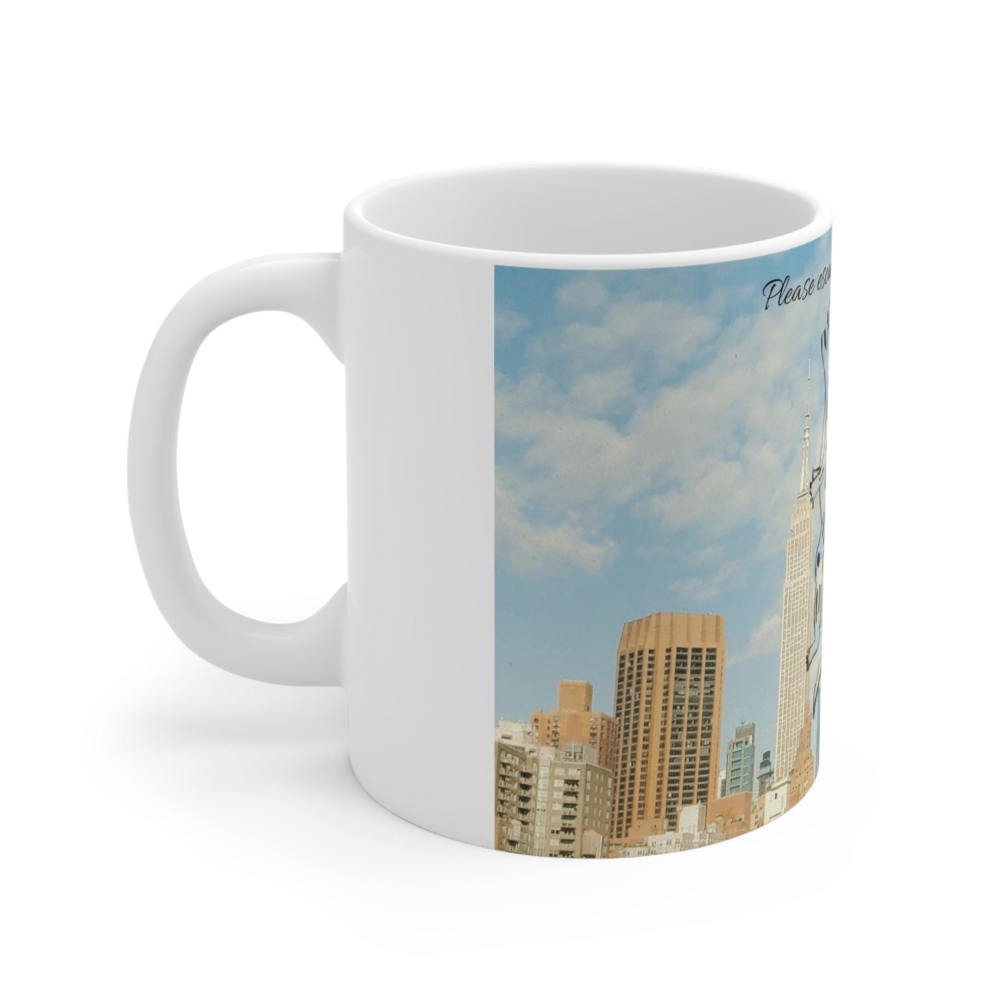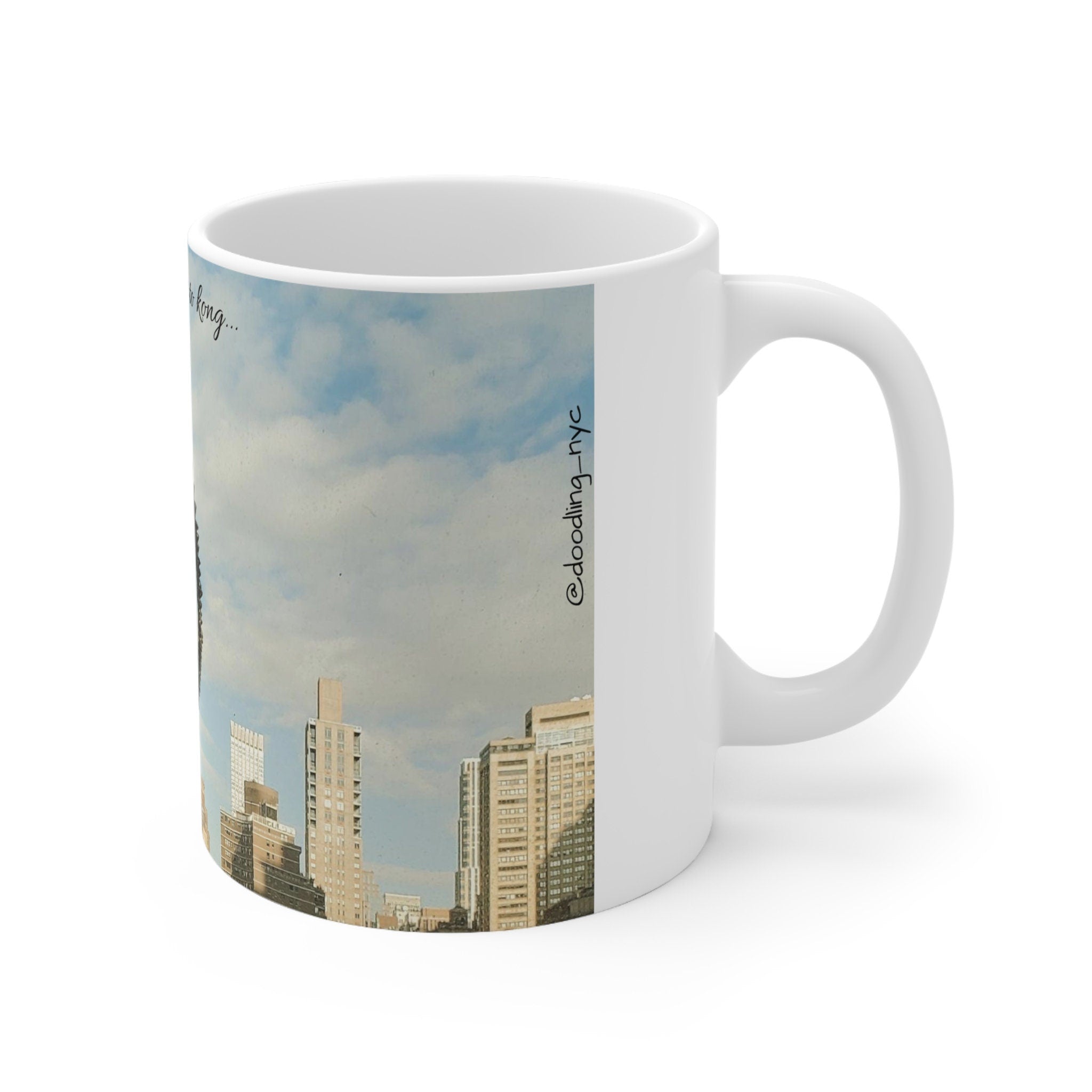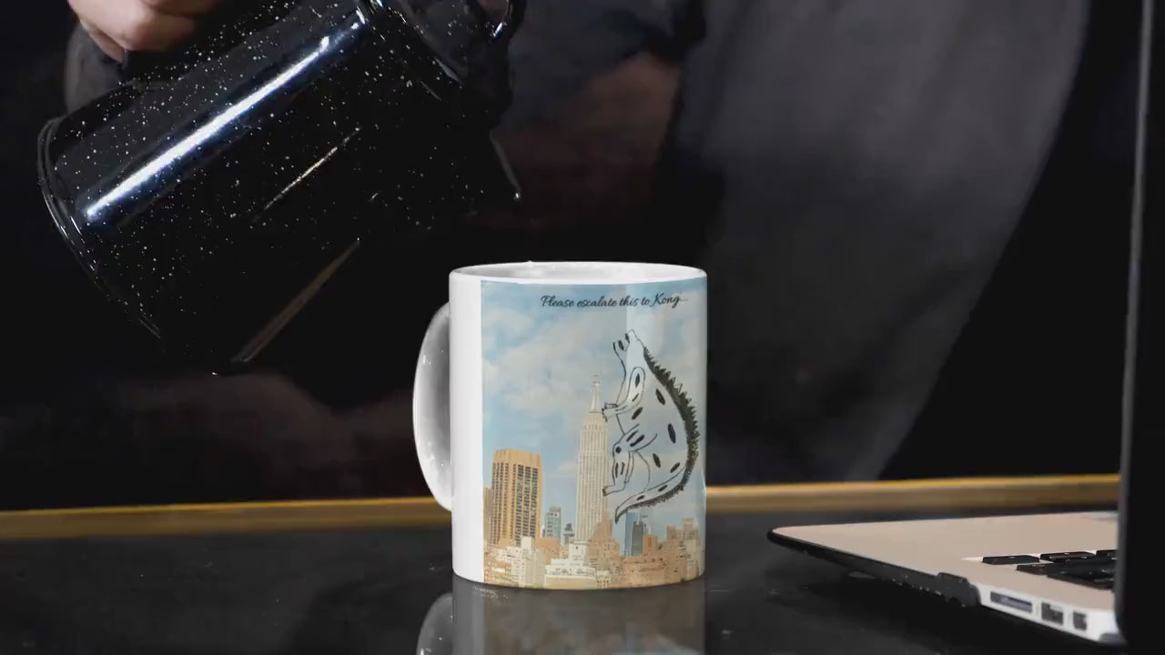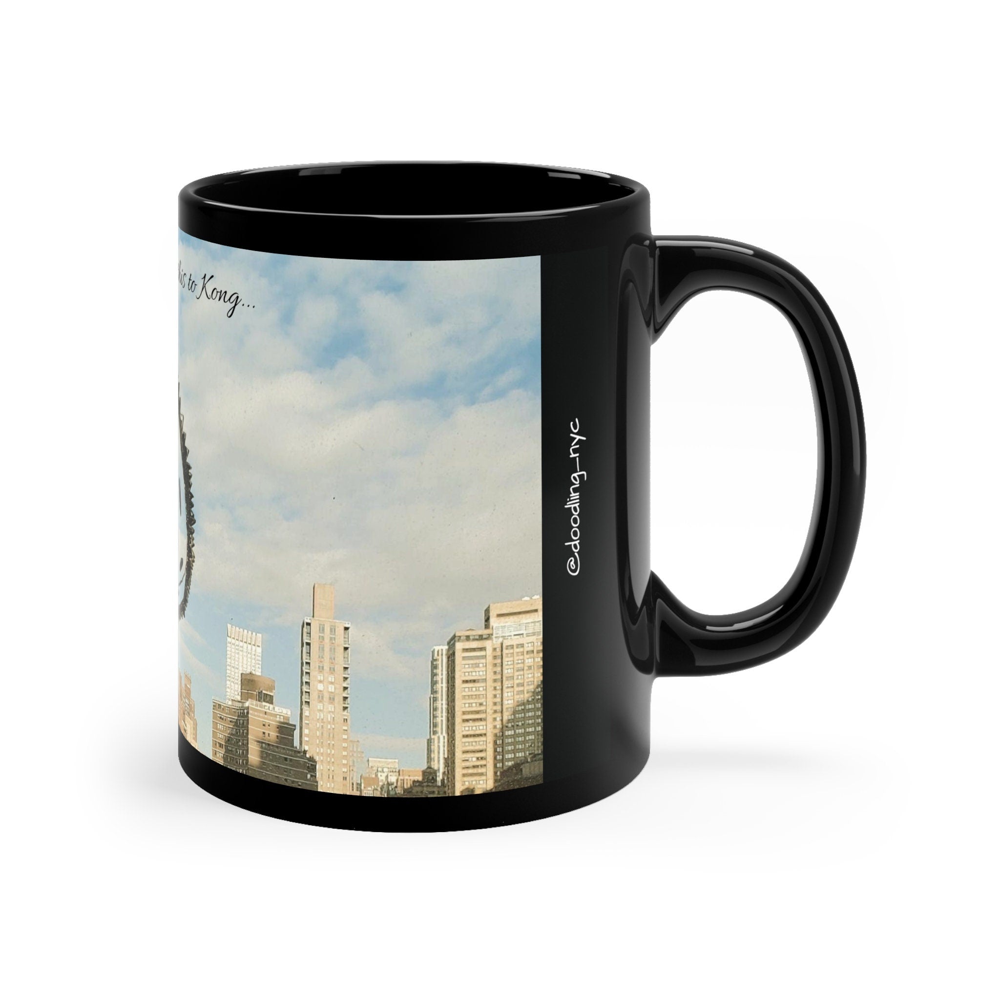 Quirky Godzilla Doodle Coffee Mug, USA NYC State Skyline Artsy Kong Mug, Unique Usa Travel Mug, Nyc Lover Gift, Office Coworker Gift