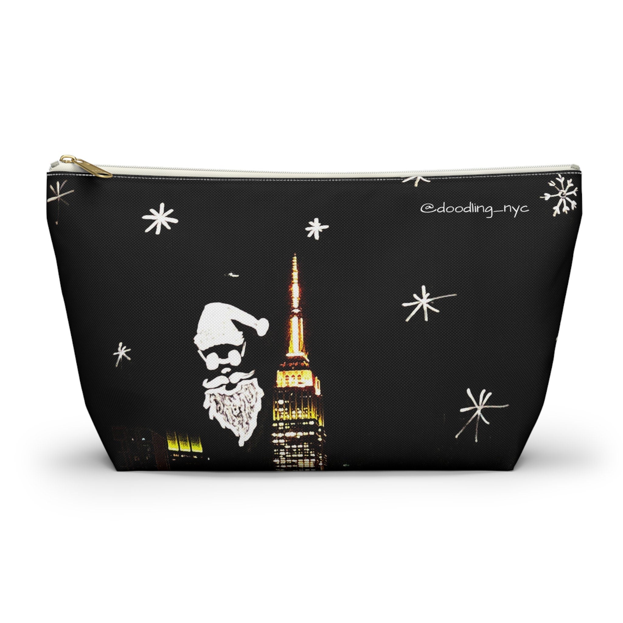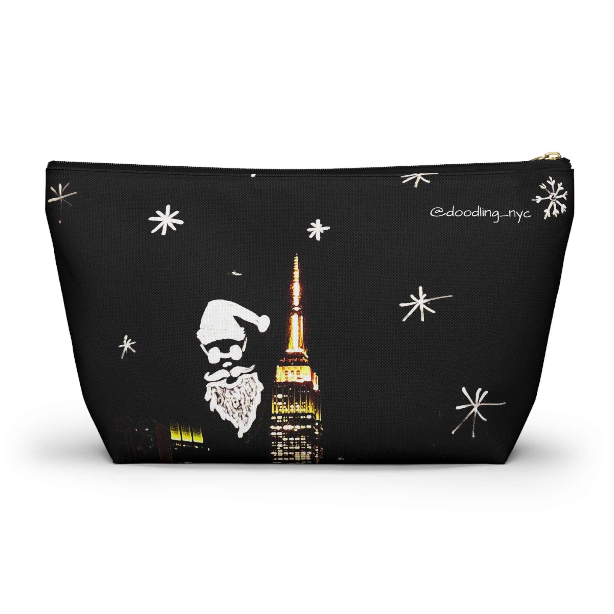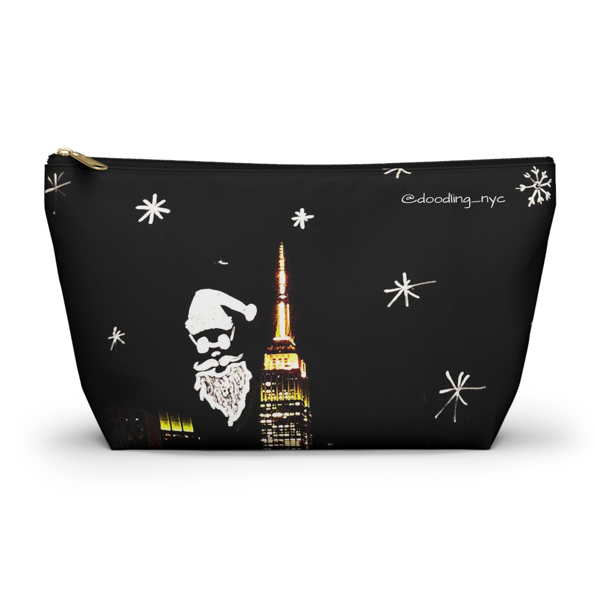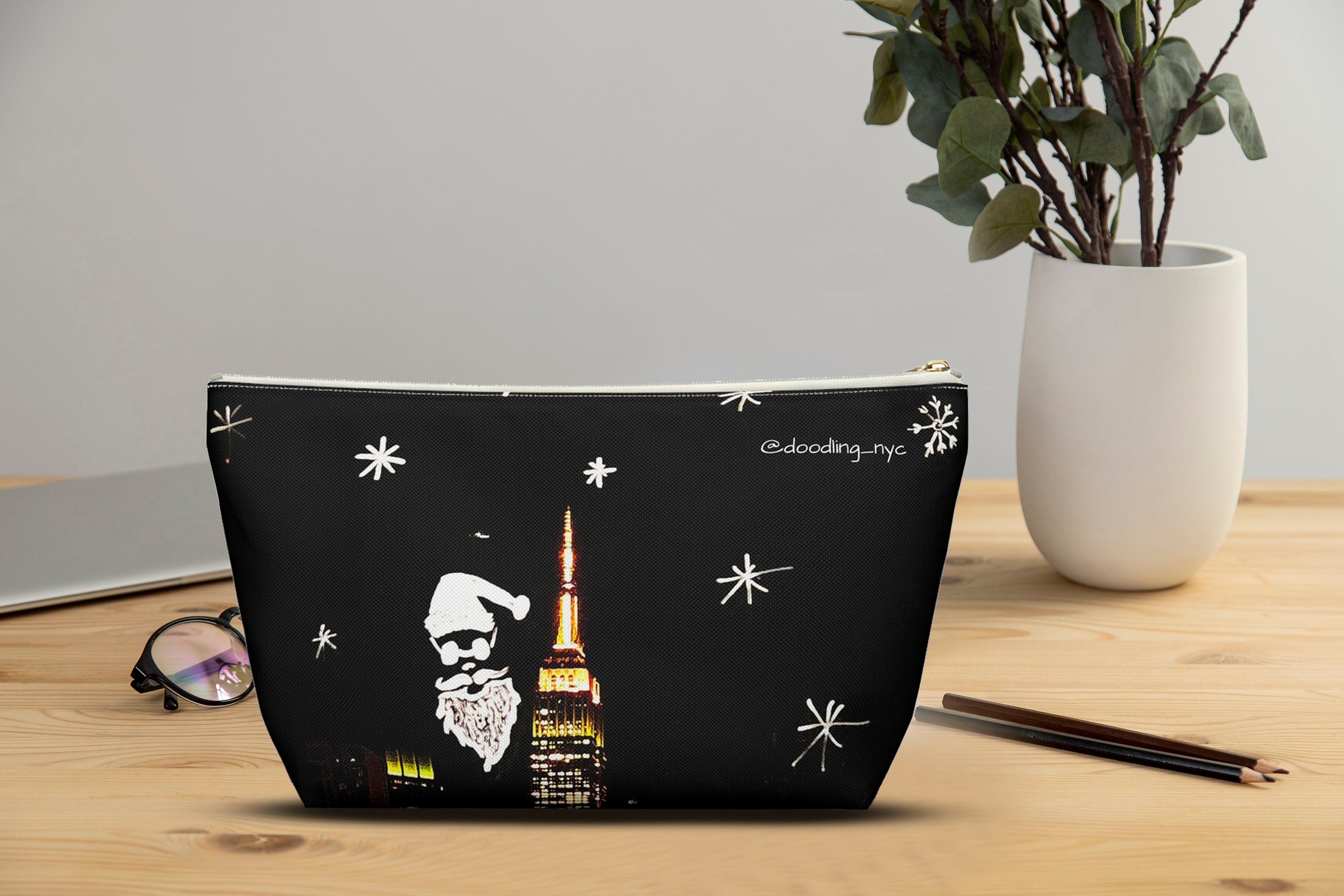 USA NYC State Santa Doodle Cosmetic Pouch, Trendy Cute Makeup Zippered Bag Pouch, Artsy Toiletry Bag, Pencil Case, Travel Organizer Bag Gift