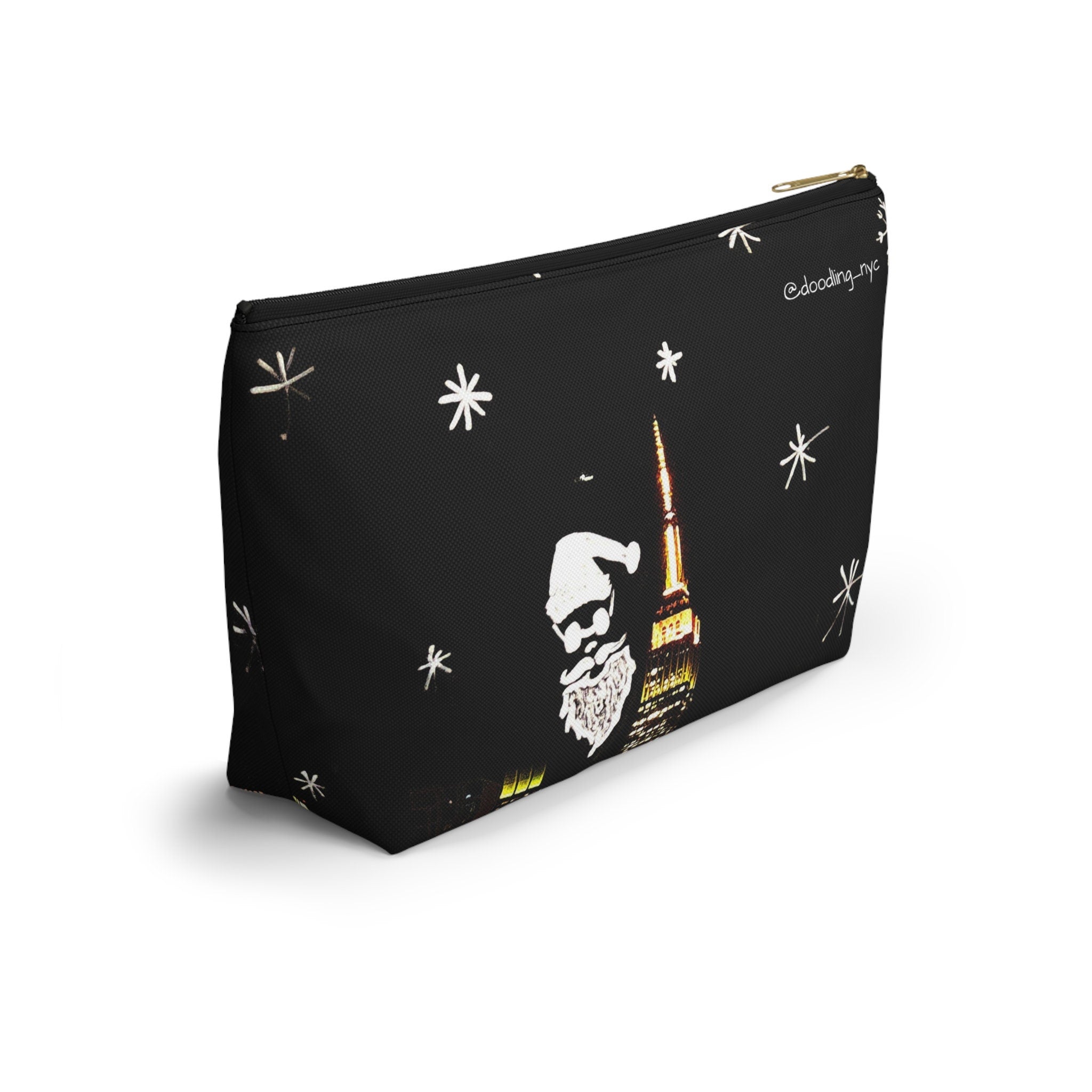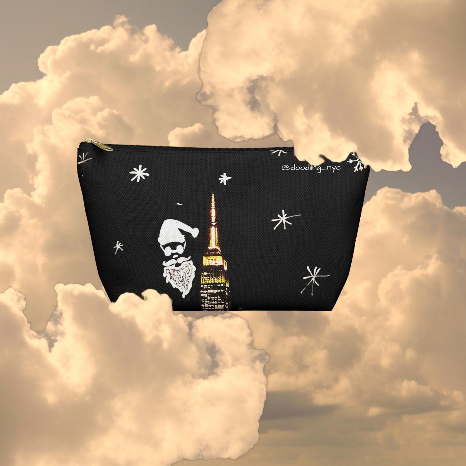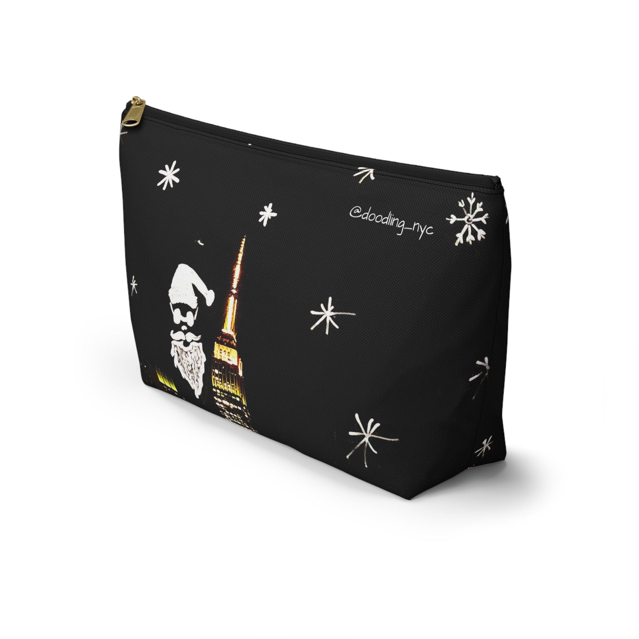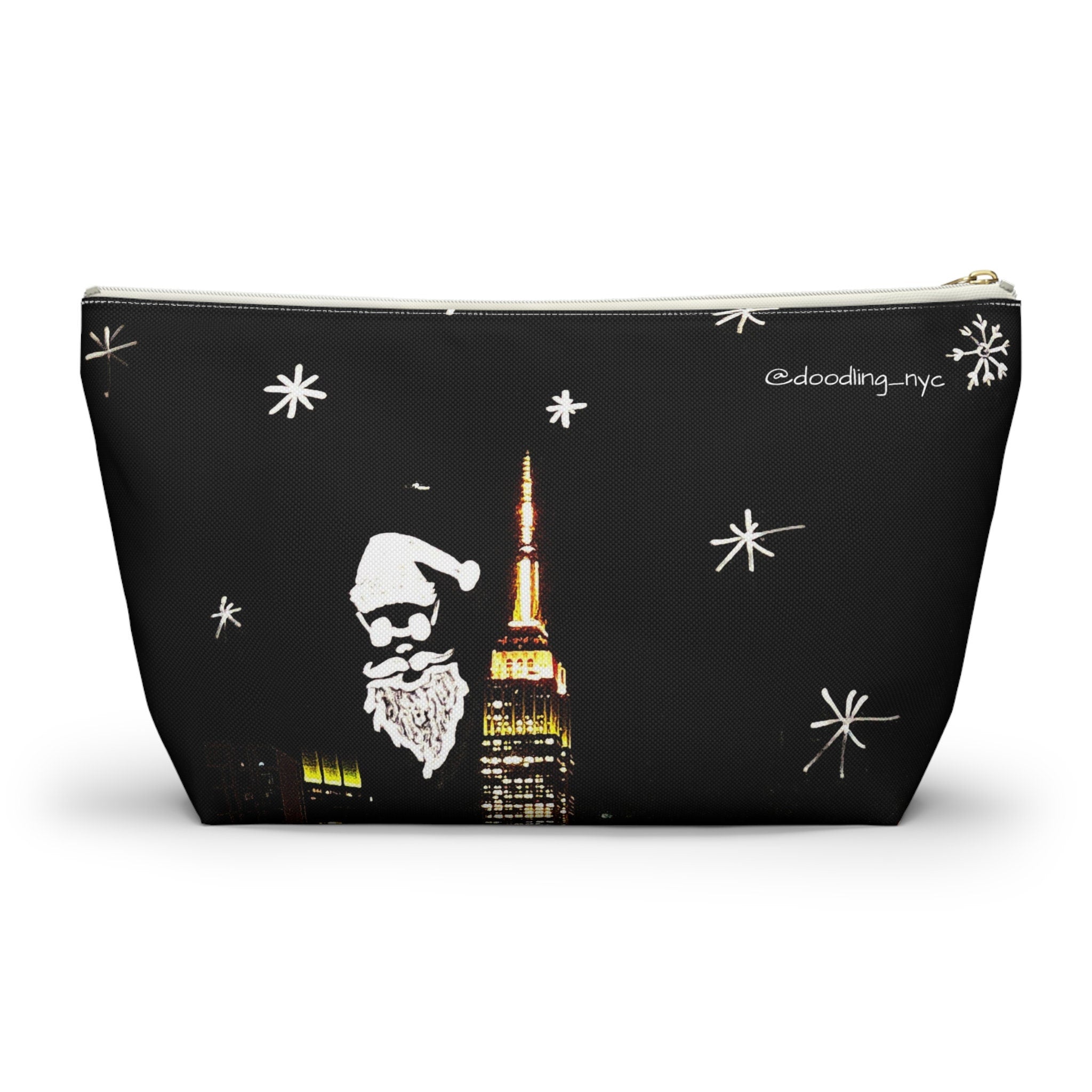USA NYC State Santa Doodle Cosmetic Pouch, Trendy Cute Makeup Zippered Bag Pouch, Artsy Toiletry Bag, Pencil Case, Travel Organizer Bag Gift