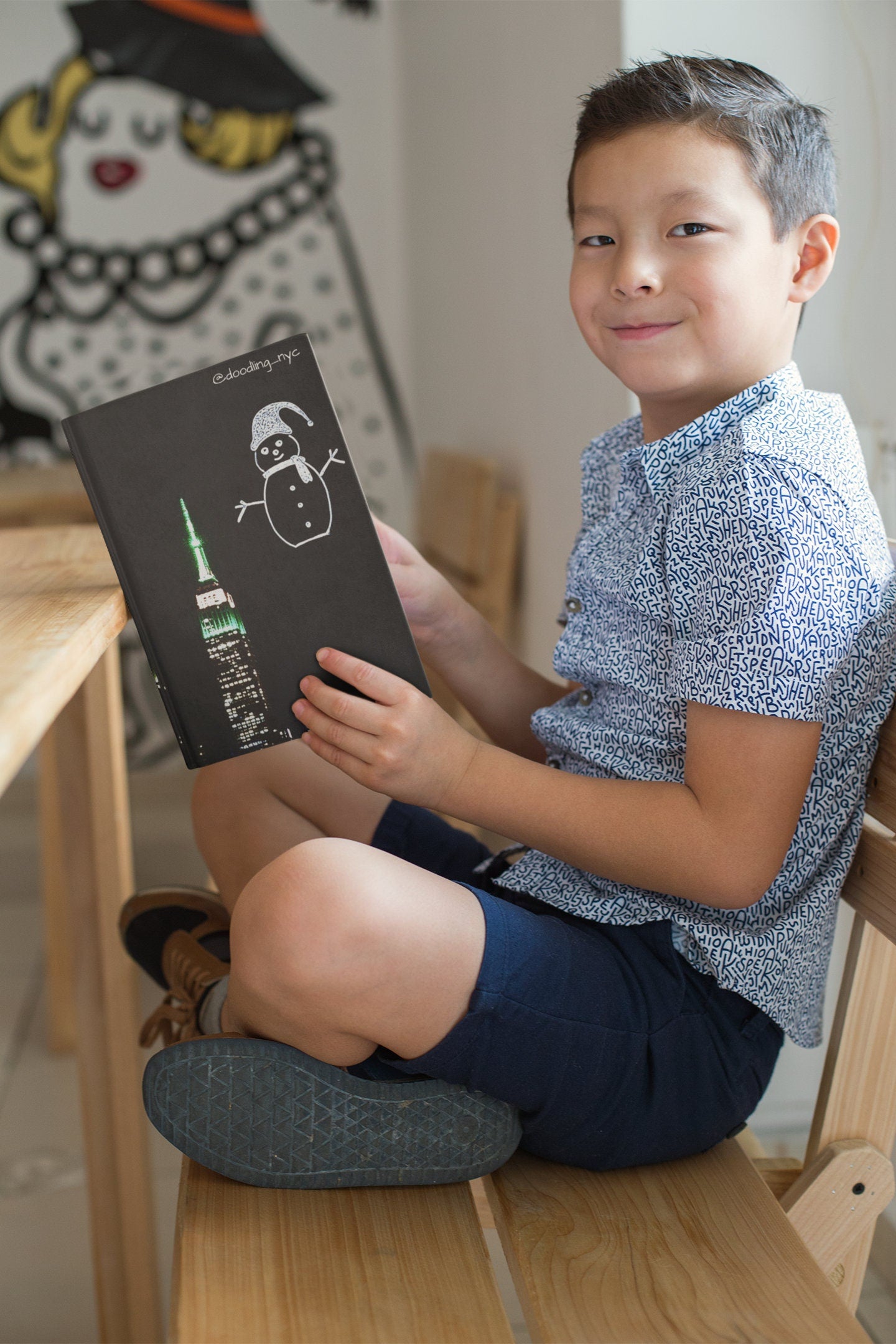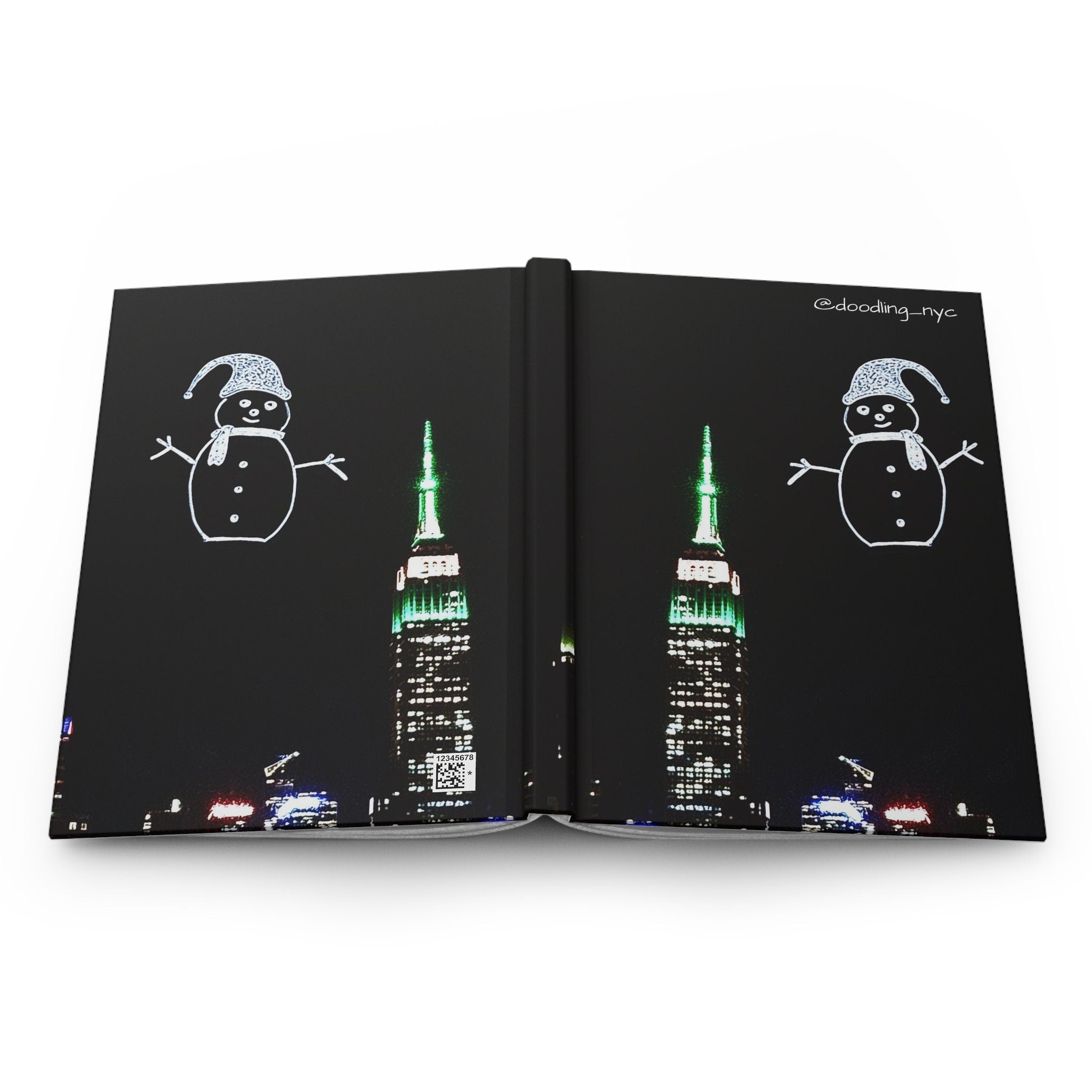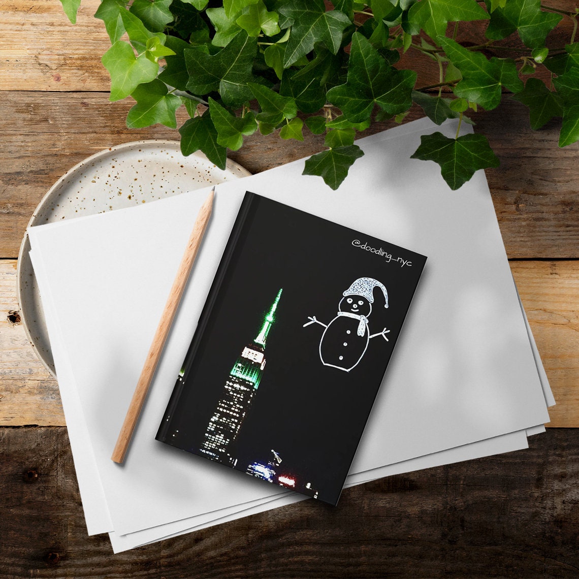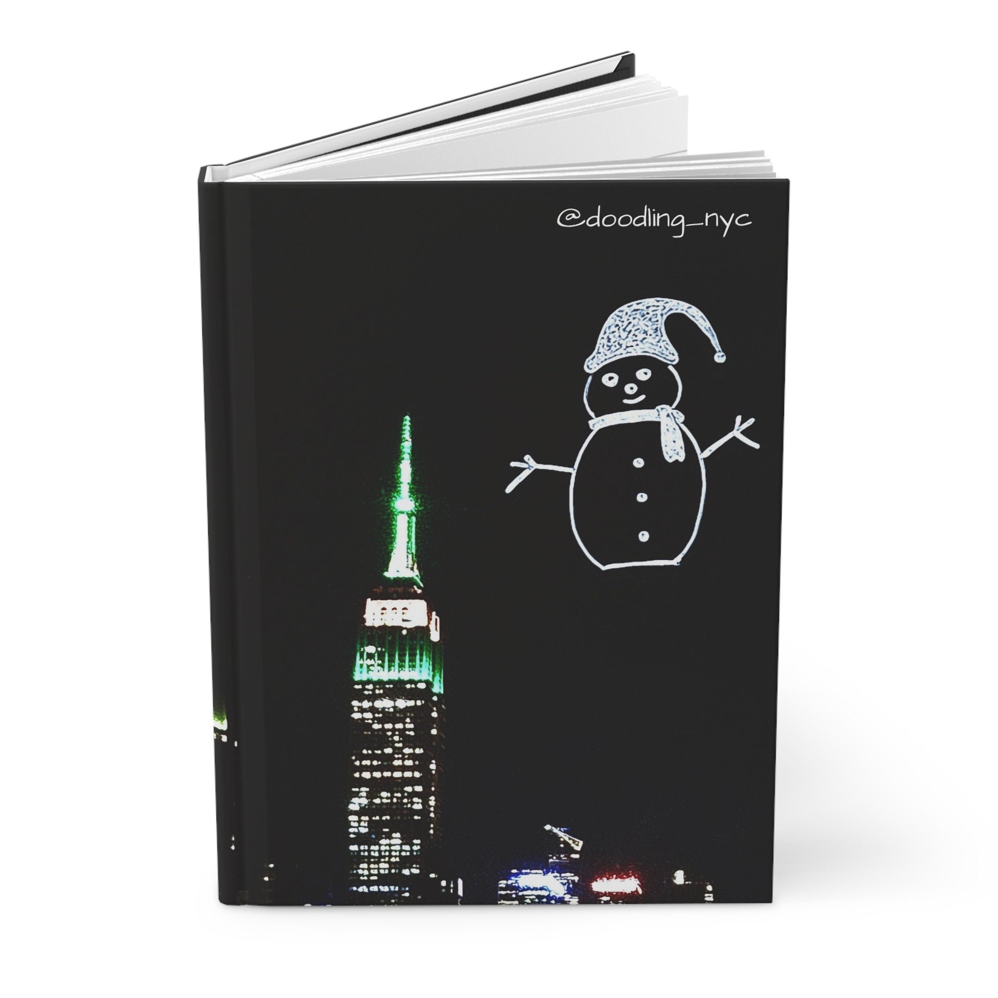 USA State Hand Drawn Snowman Doodle Journal, Artsy NYC Writing Lined Hardcover Journal Notebook, Back to School, Aesthetic Journals